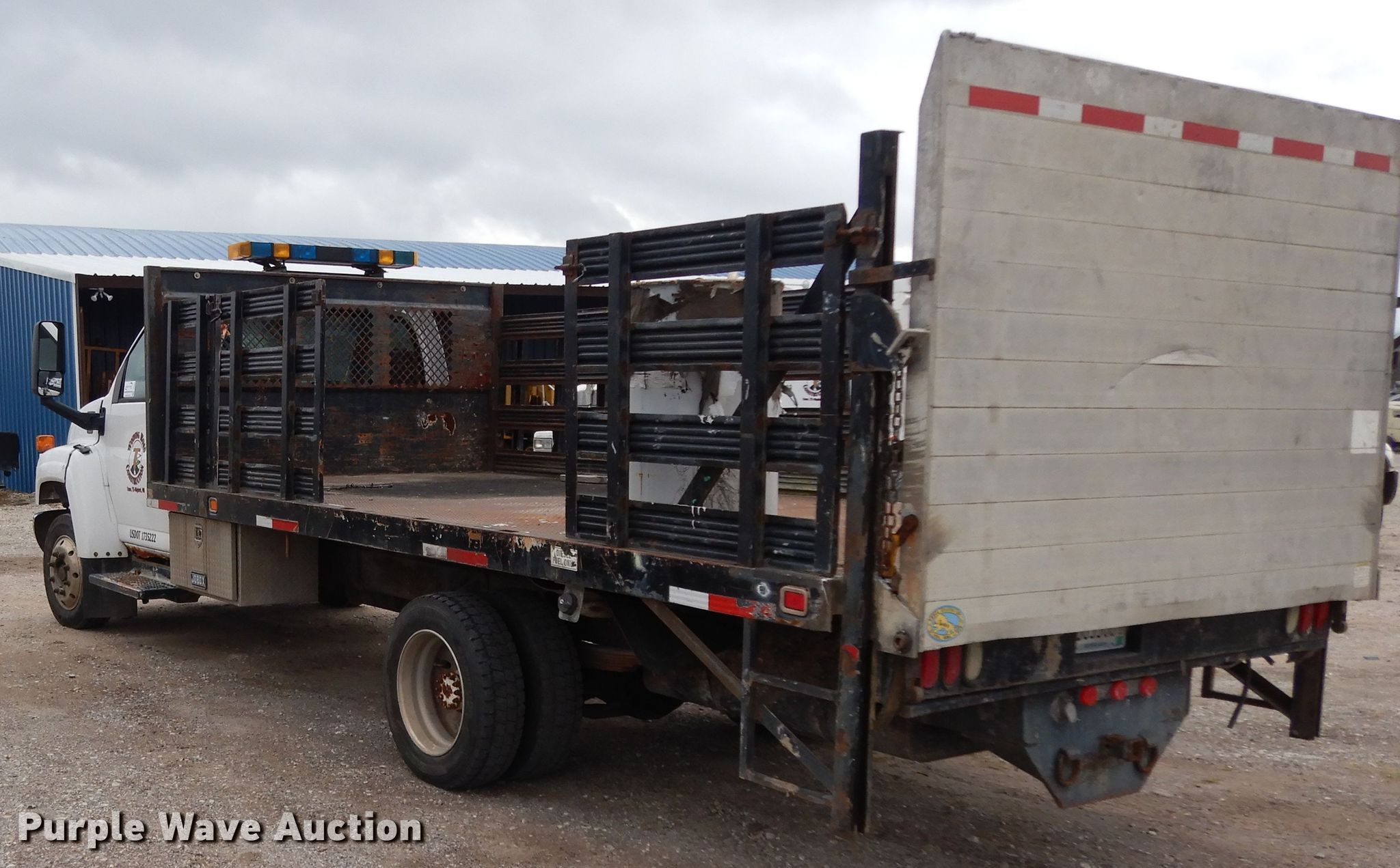 2005 GMC C4500 flatbed truck. Miles: 258,231 on odometer, VIN: 1GDE4C1295F514828. Engine Displacement: 6.6L, Cylinders: 8, Fuel type: Diesel. Transmission Automatic. Chassis Axles: Single, Suspension: Spring, Brakes: Hydraulic. Interior AC, Heat, Power windows, Power locks, Brake controller. Operational Flatbed Knapheide PVMXT-1430, Serial: 932751-20045, 17' L x 8' W, Removeable sides: 40" H, End gate lift, Tommy Gate 89AAB, Capacity: 2,000 lbs. Tires Size: 225/70R19.5. Notes Dash warning indicator: ABS, Windshield chipped or cracked. Minnesota title. Winding Road Construction. 3257 Farm To Market Rd 1629. Bonham, TX 75418