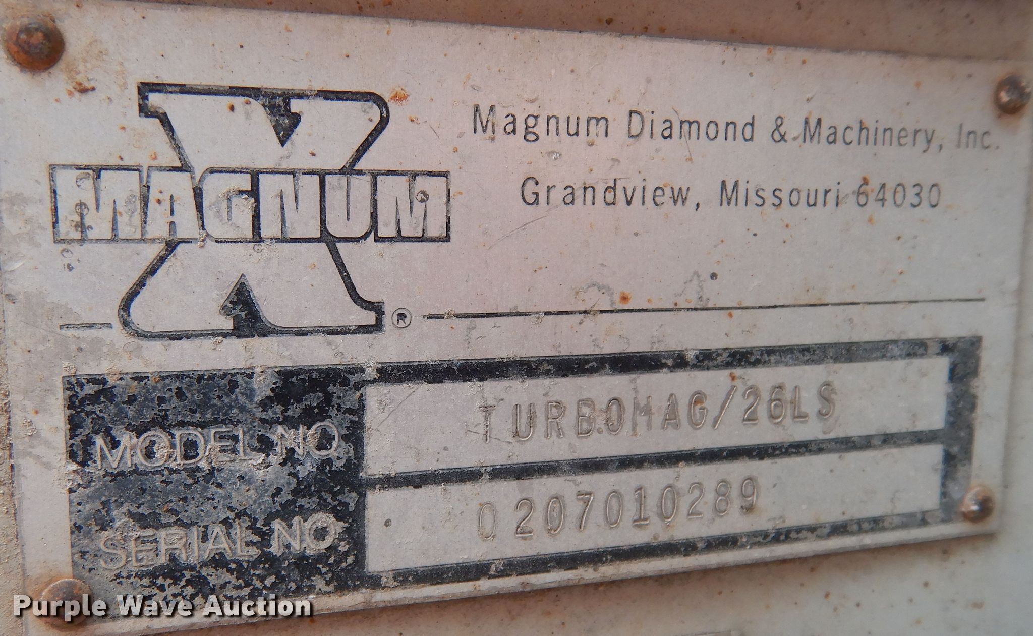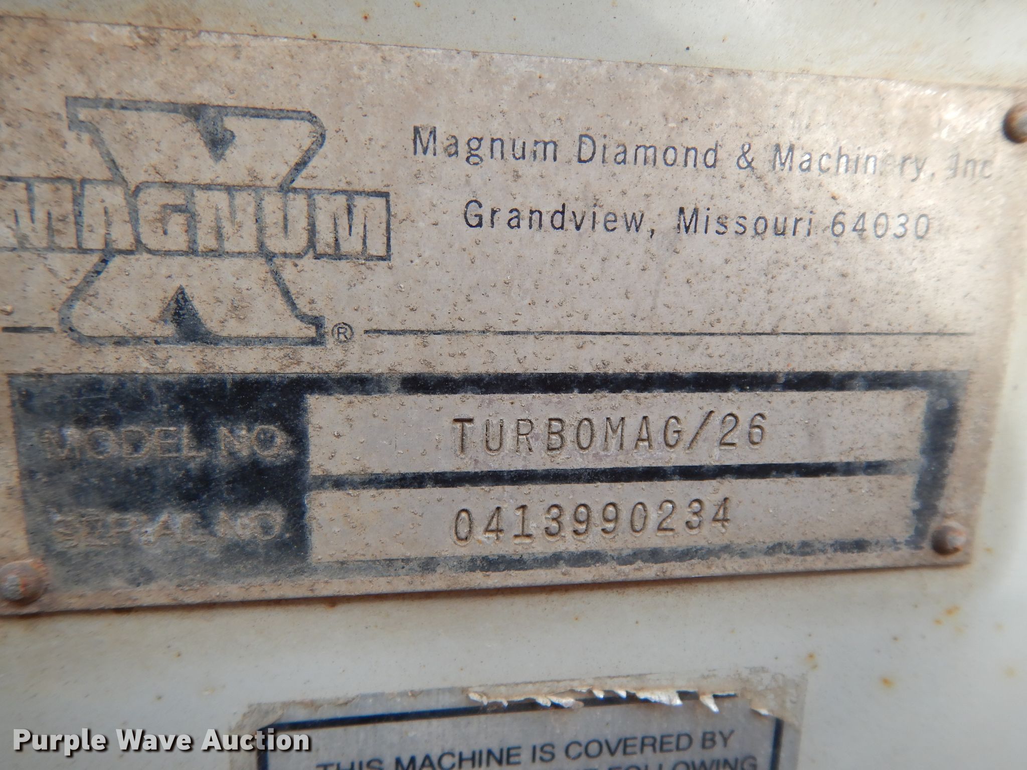 Purple Wave is selling a used Concrete Equip. or Acces. in Texas. This item is a (2) Magnum X TurboMag/26 concrete saw with the following: Serials: 0207010289, Second Serial: 0413990234