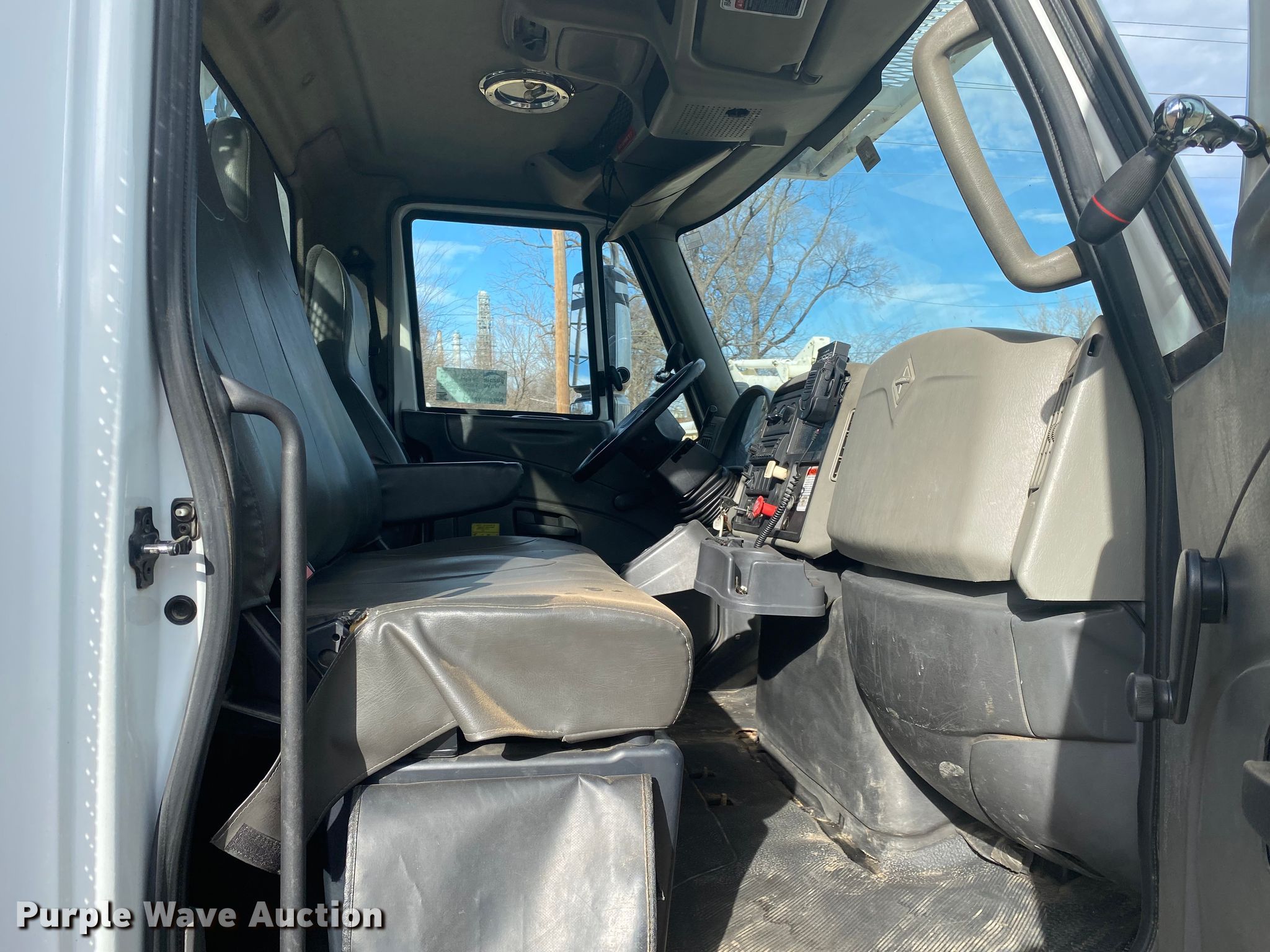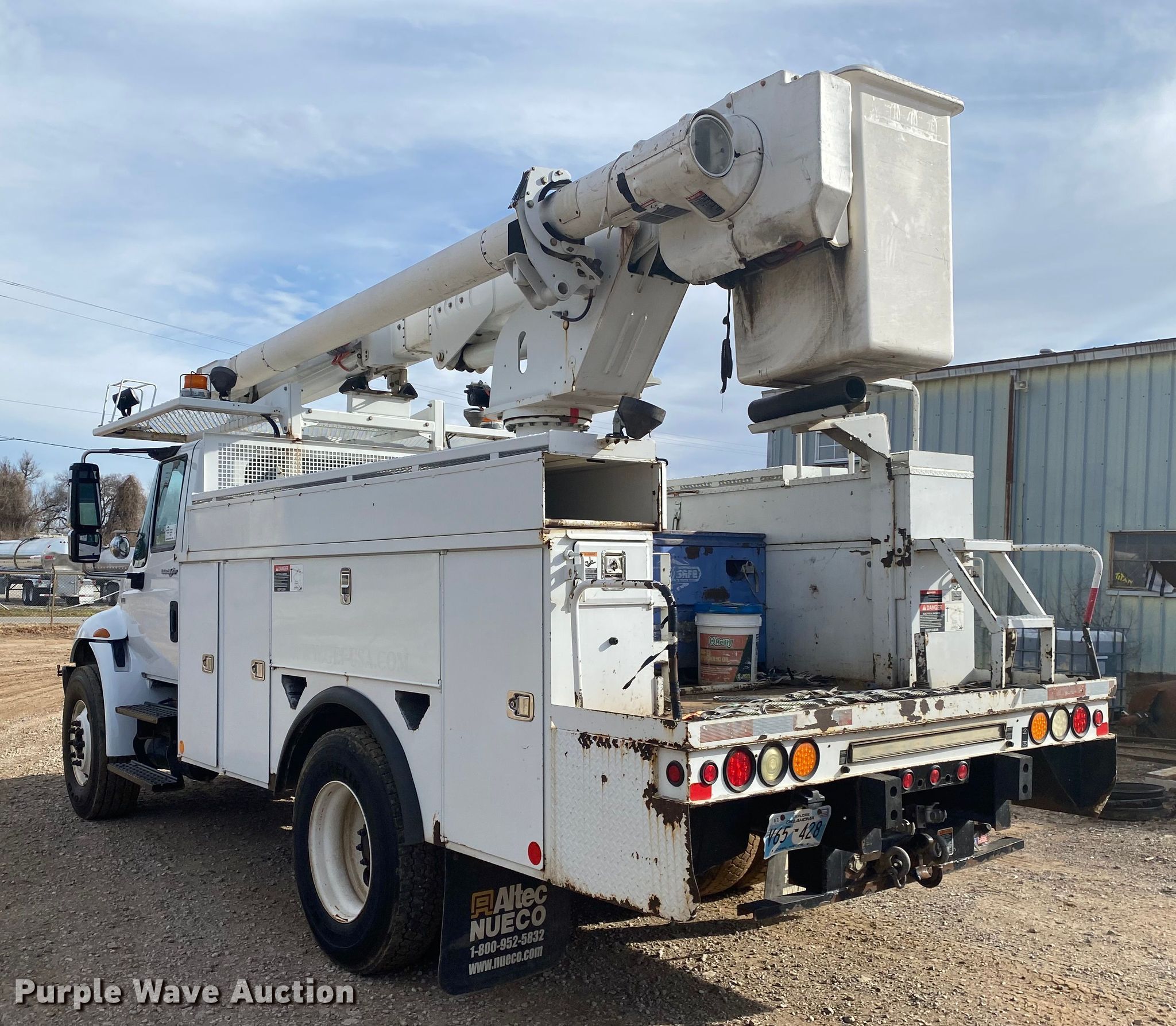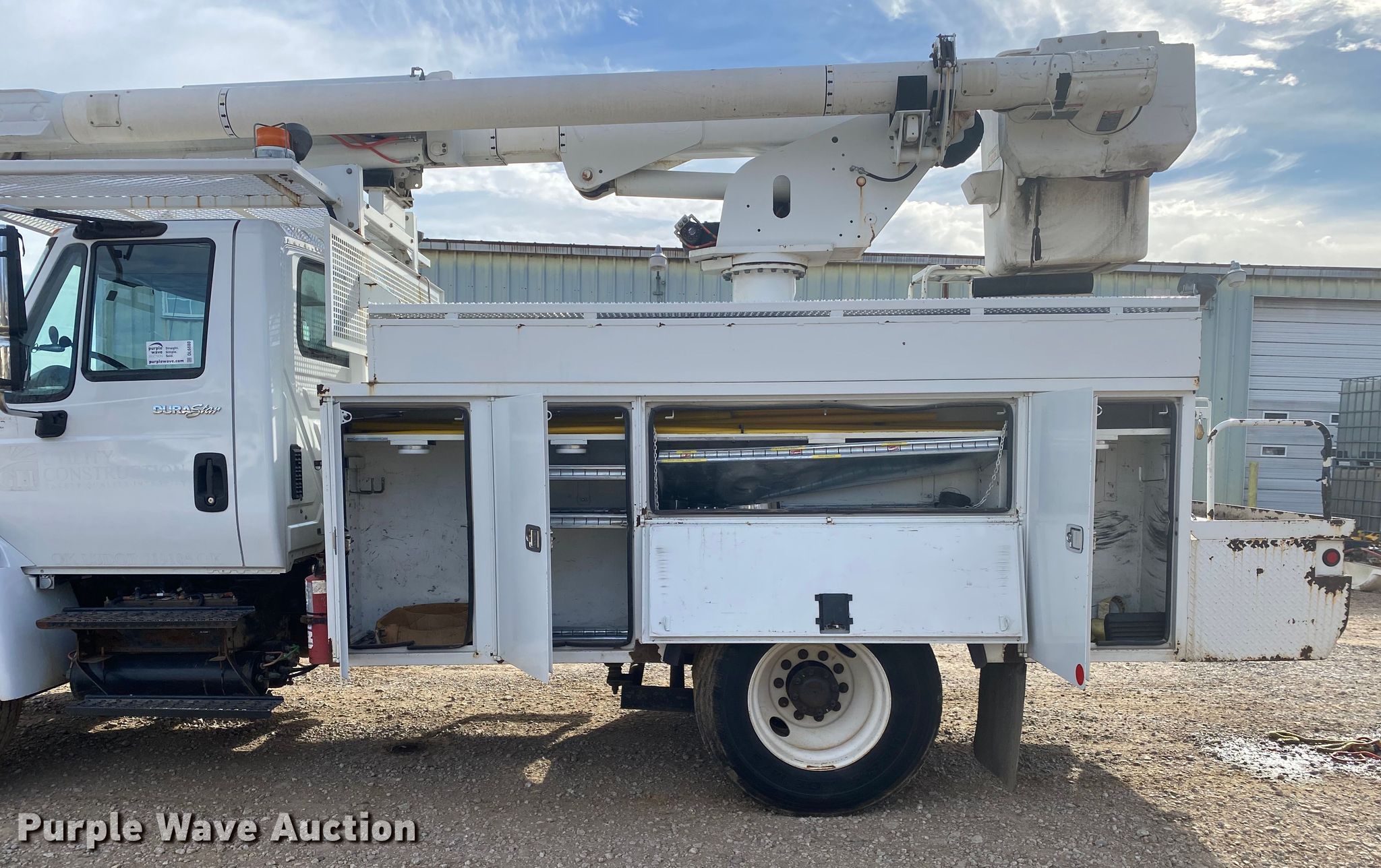Purple Wave is selling a used Bucket Truck in Oklahoma. This item is a 2012 International 4300 bucket truck with the following: Miles: 80,518 on odometer, Hours: 8,133 on meter, VIN: 3HAMMAAR3CL632986