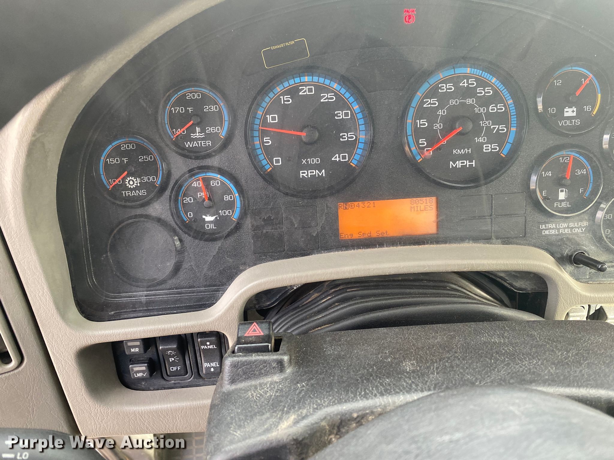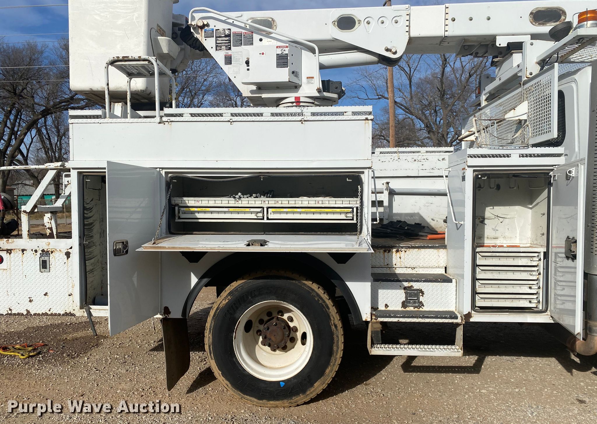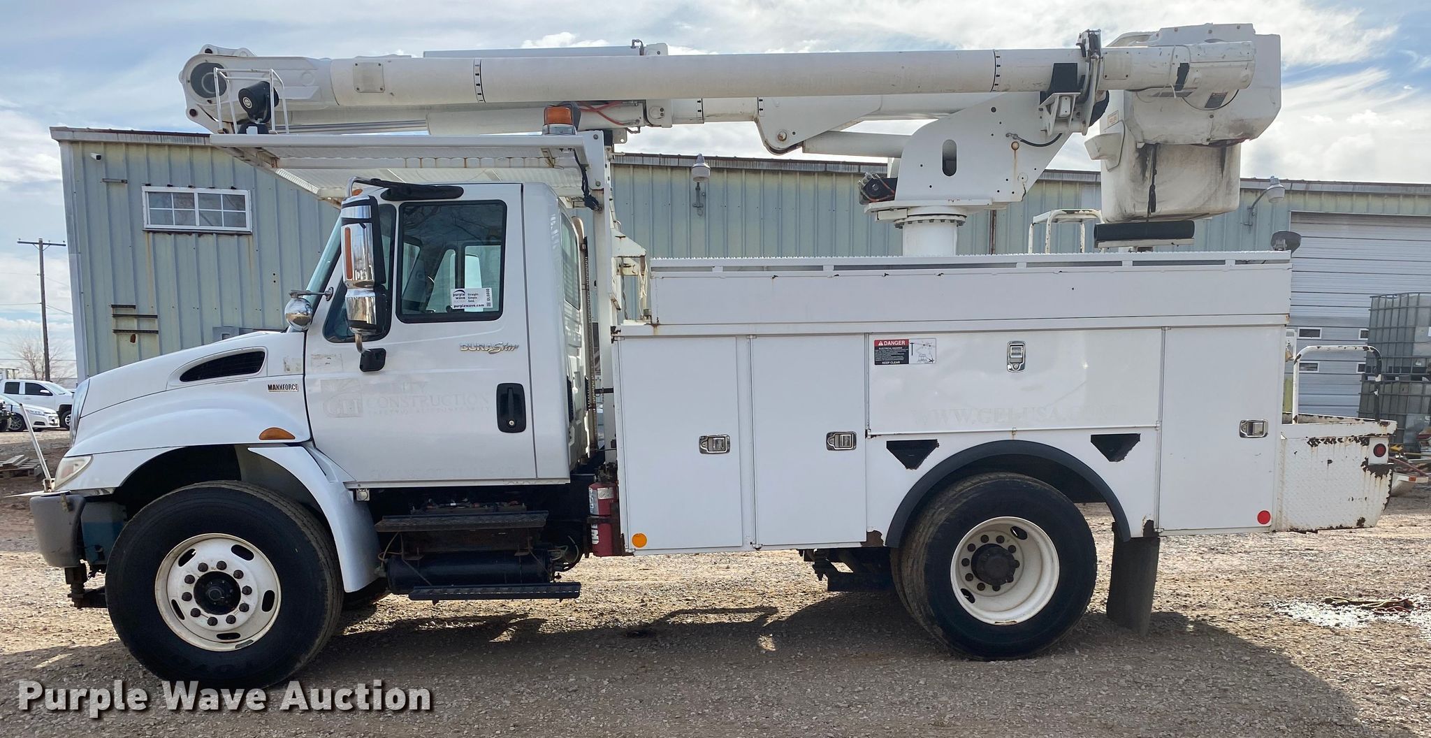 Purple Wave is selling a used Bucket Truck in Oklahoma. This item is a 2012 International 4300 bucket truck with the following: Miles: 80,518 on odometer, Hours: 8,133 on meter, VIN: 3HAMMAAR3CL632986