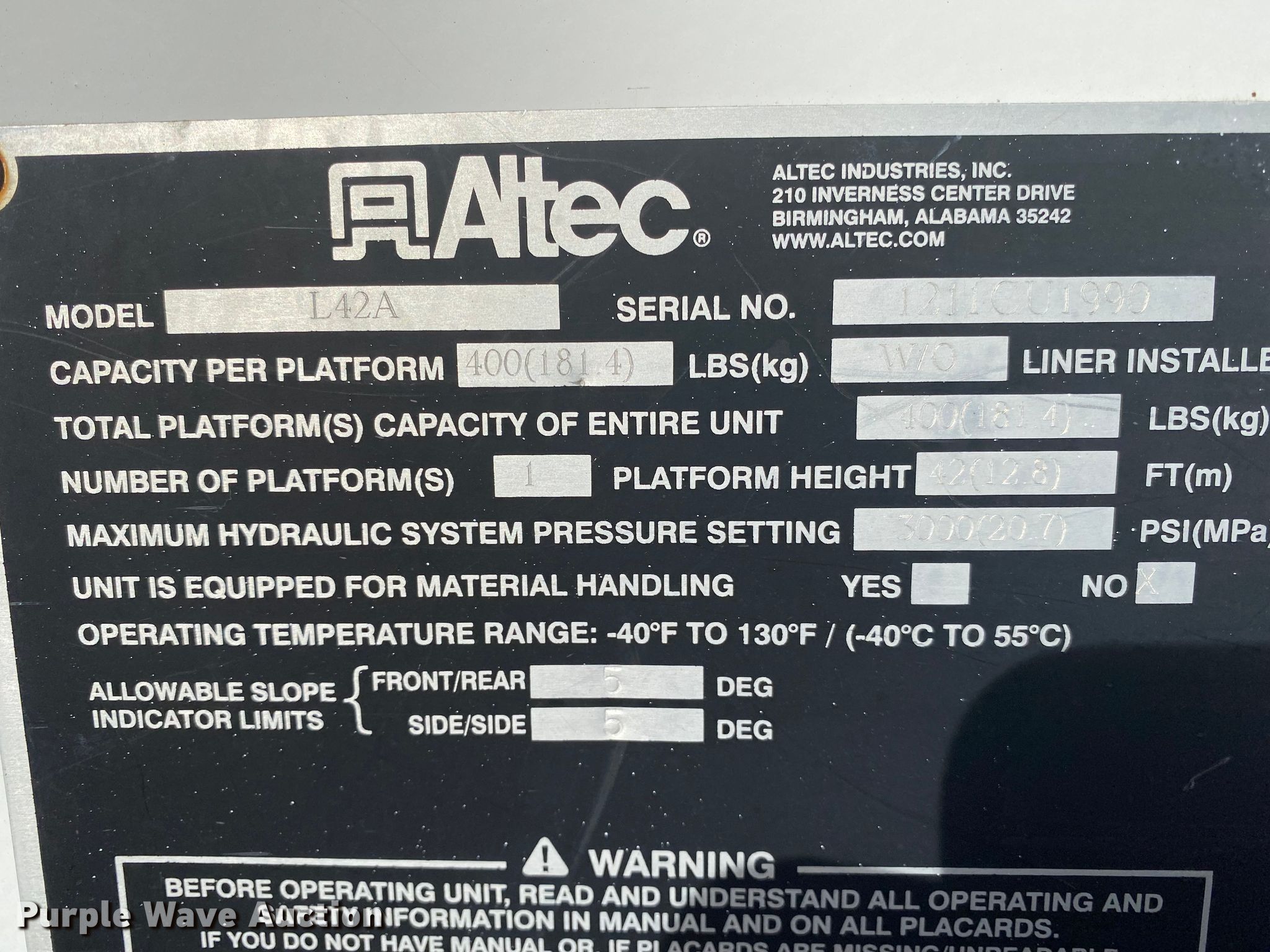 - Maximum lift height: 42'
