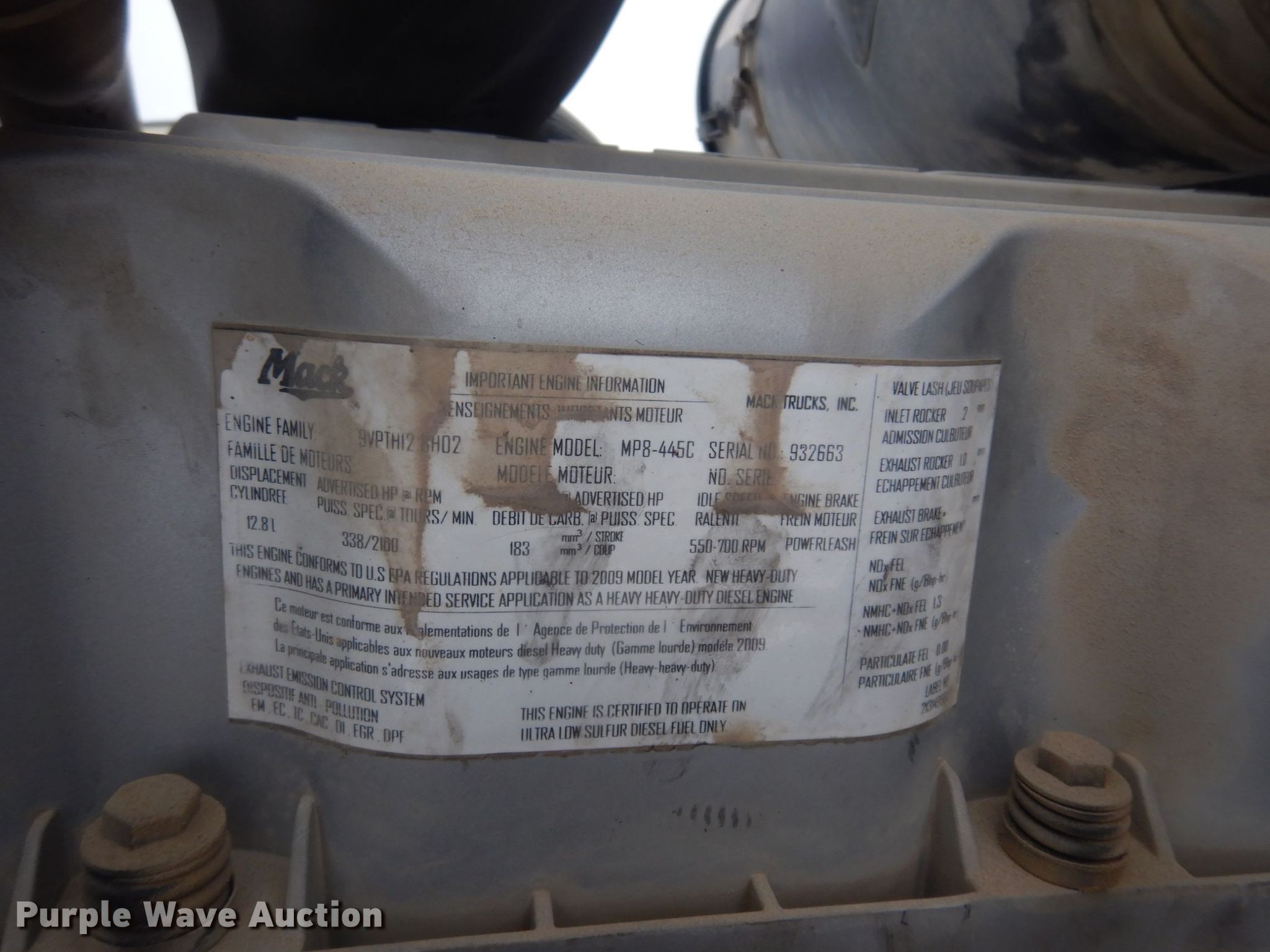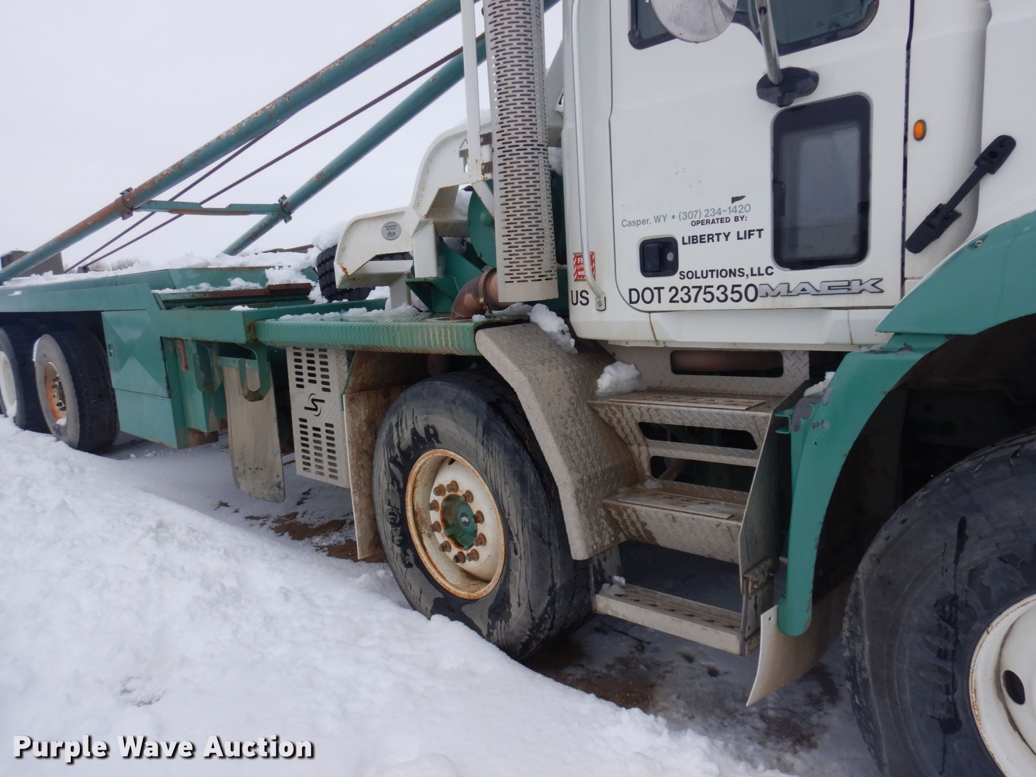 2011 Mack GU813 winch truck. Miles: 131,008 on odometer, VIN: 1M2AX16C3BM012089, Unit #: L0174. Engine Mack MP8-445C, Serial: 932663, Displacement: 12.8L, Cylinders: 6, Fuel type: Diesel. Transmission Mack Maxitorque, Manual. Chassis Axles: Triple, Pusher axle, Suspension: Walking beam, Brakes: Air. Interior AC, Heat, Heated mirrors, Power windows, Power locks, Cruise control. Operational Flatbed 30' L x 9' W, Winch, Rolling tailboard, Gin pole length: 30'. Tires Size: 445/65R22.5, Lift axle: 12R24. Wyoming title. Title has a lien that will be released following the close of the auction. Title distribution may be delayed up to 30 days from verification of funds. Liberty Lift Solutions, LLC. 1014 Robertson Rd. Casper, WY 82604