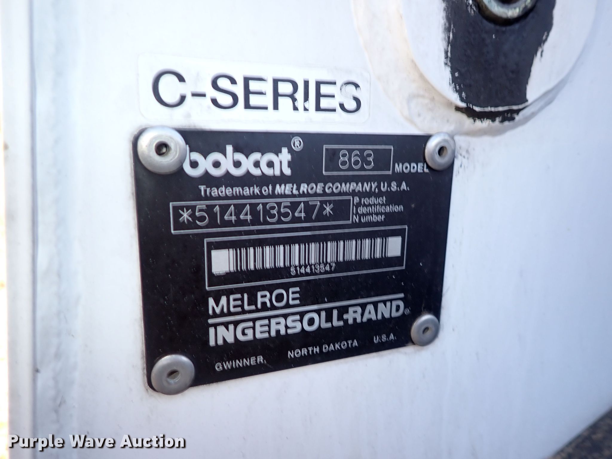 Purple Wave is selling a used Skid Steer Loader in Kansas. This item is a 1997 Bobcat 863H skid steer loader with the following: Hours: 1,618 on meter, Miles or hours may vary, unit still in use, Serial: 514413547