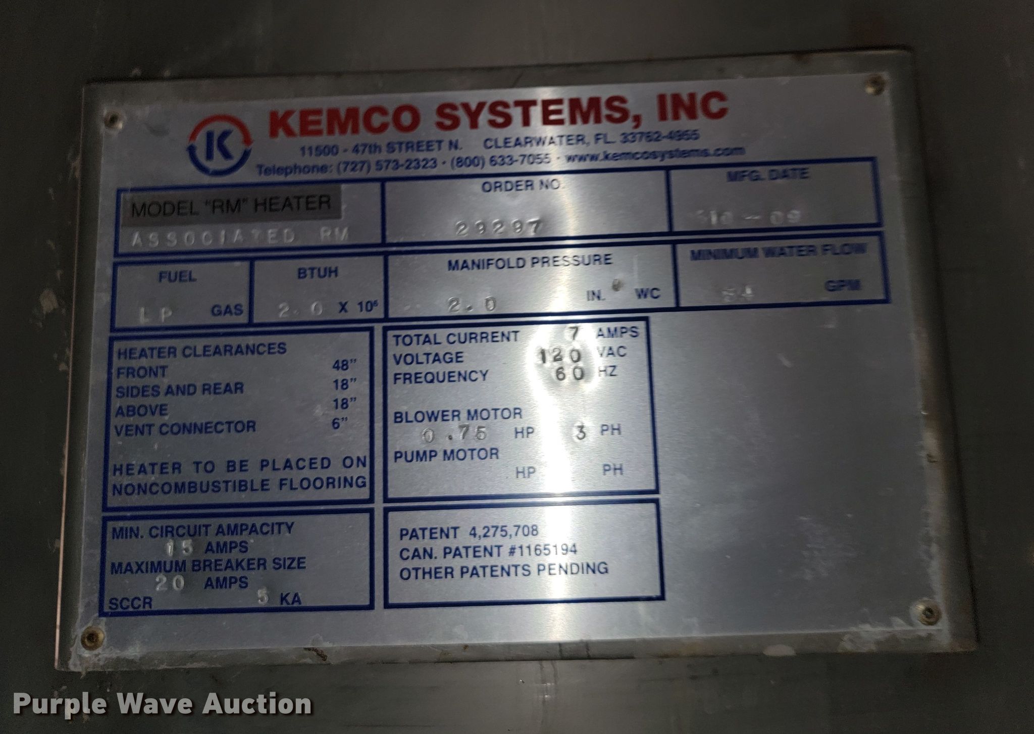 Kemco RM water heater has sold in Joplin, Missouri for $27500. Item JP9054 sold on February 24th, 2022.