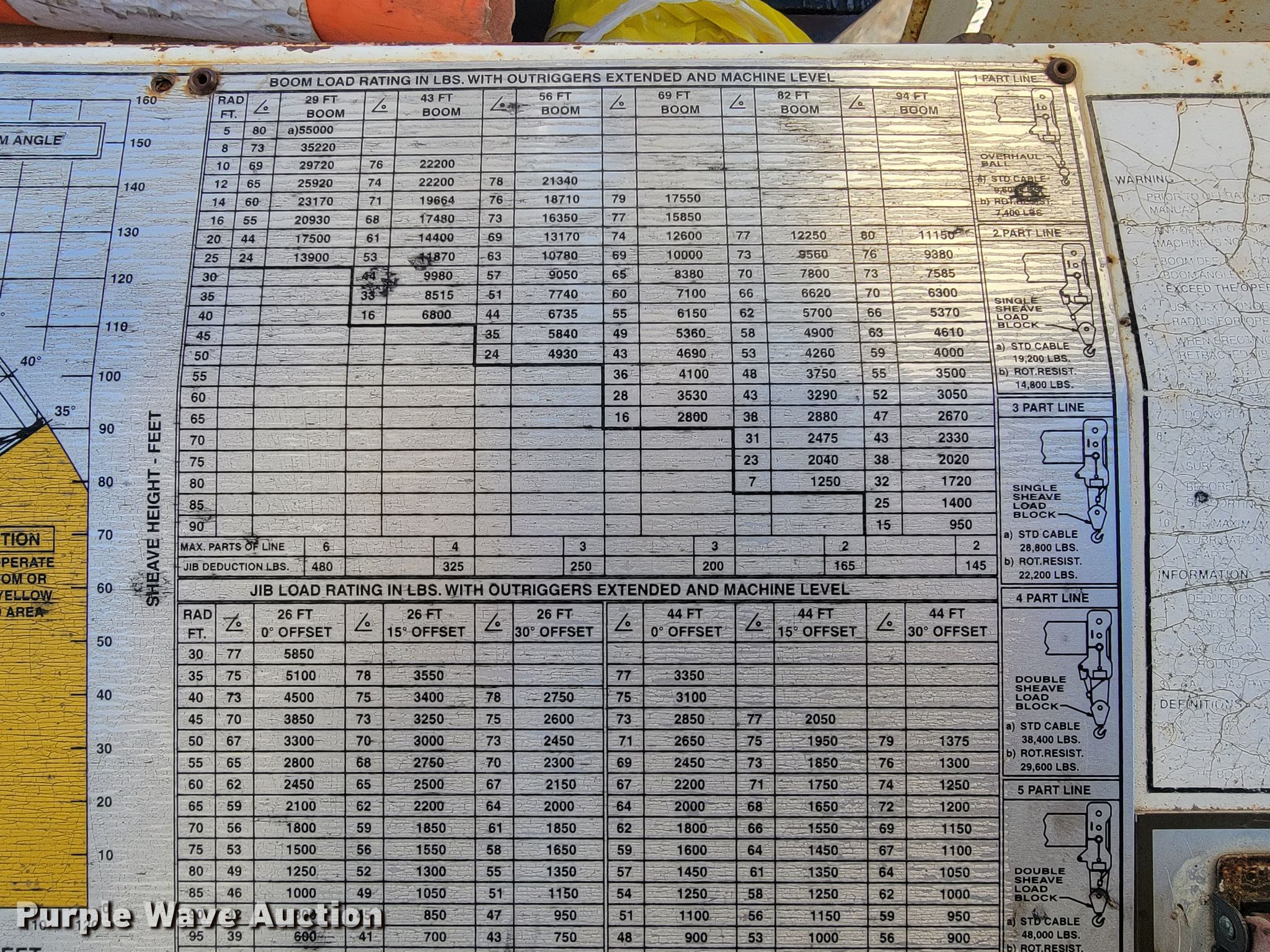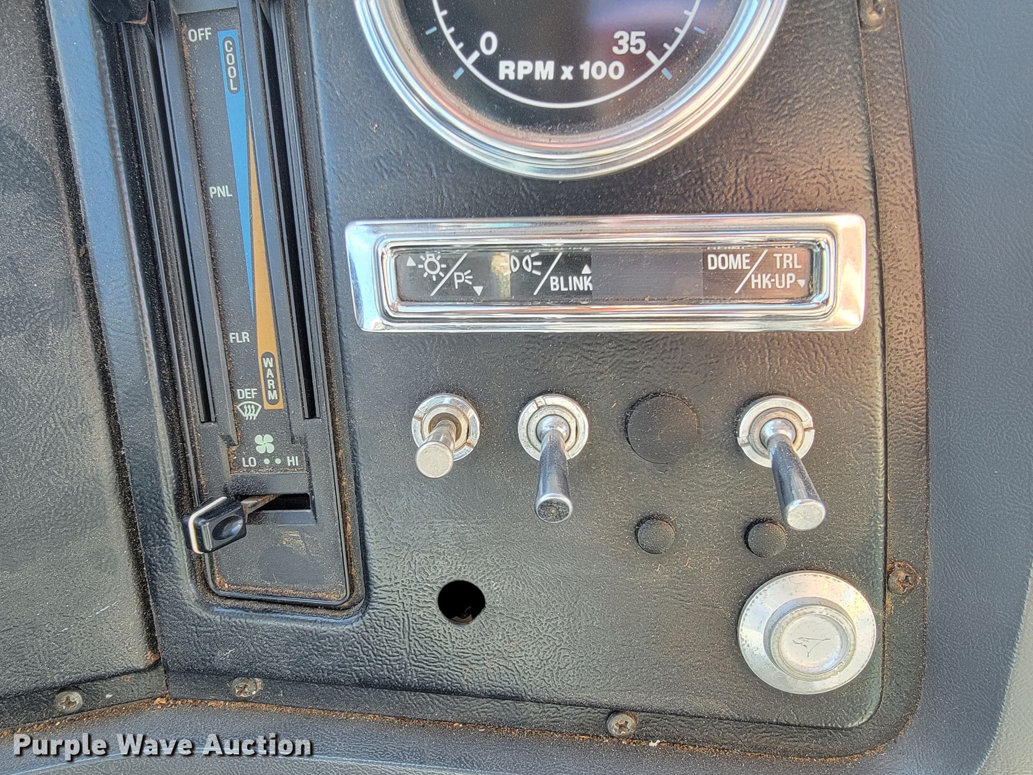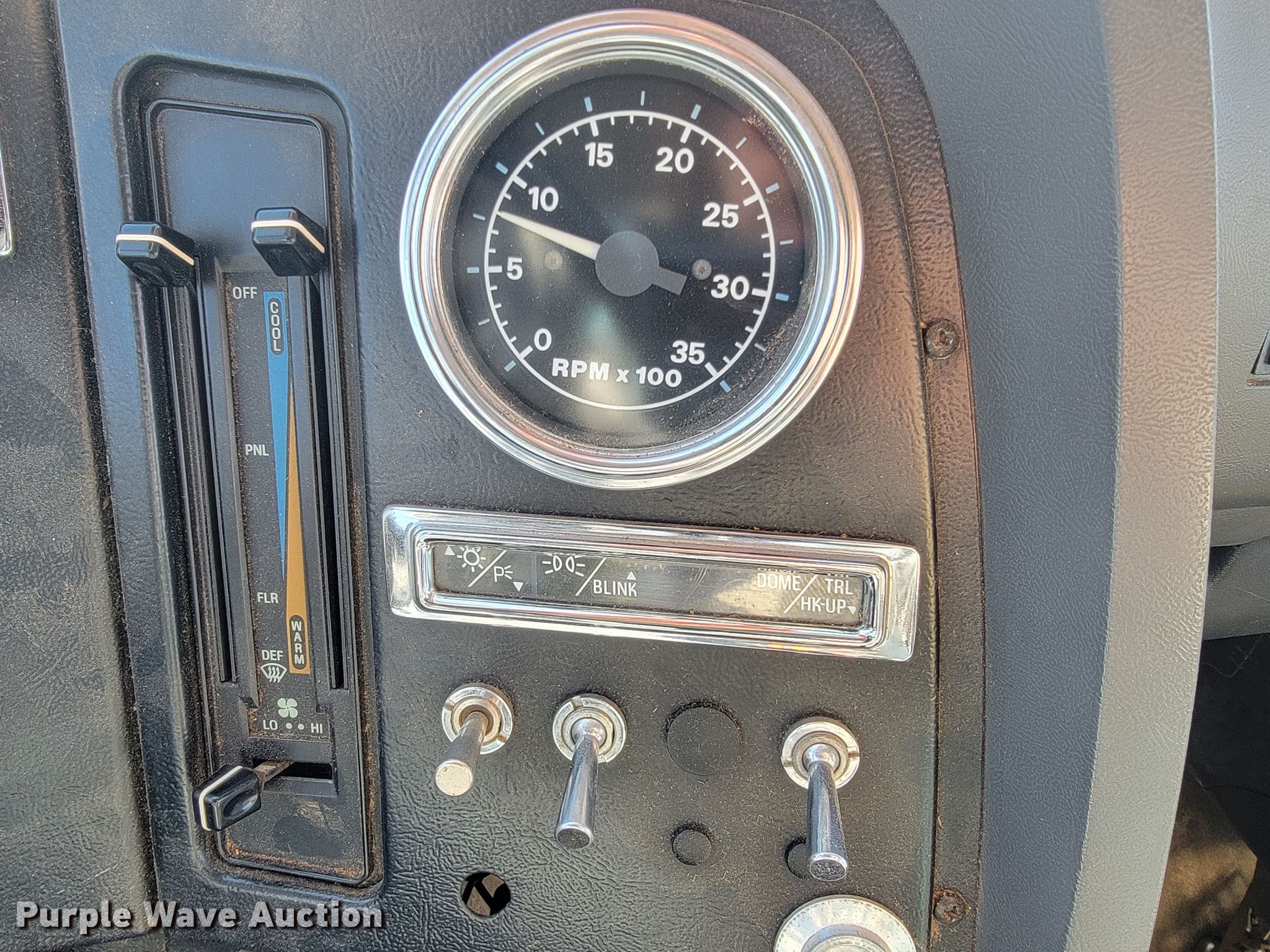 1995 Ford L8000 crane truck. Miles: 17,771 on odometer, Hours: 7,505 on meter, VIN: 1FDYU82E2SVA82197. Engine Displacement: 8.3L, Cylinders: 6, Fuel type: Diesel. Transmission Manual, Speed: 10. Chassis Axles: Tandem, Suspension: Spring over walking beam, Brakes: Air, PTO, GVWR: 52,000 lbs, Wheelbase: 260". Interior Heat. Operational 18' L x 102" W, Crane Pioneer 4000, Boom Telescopic, Boom length: 94', Sections: 3, Maximum lift capacity: 55,000 lbs, Jib: 30', Boom controls, Crane ball & hook, Lift chart. Tires Front: 425/65R22.5, Rear: 11R22.5. Notes Turret gear issue, leaking. Missouri title. 2425 E Livingston St. Springfield, MO 65803