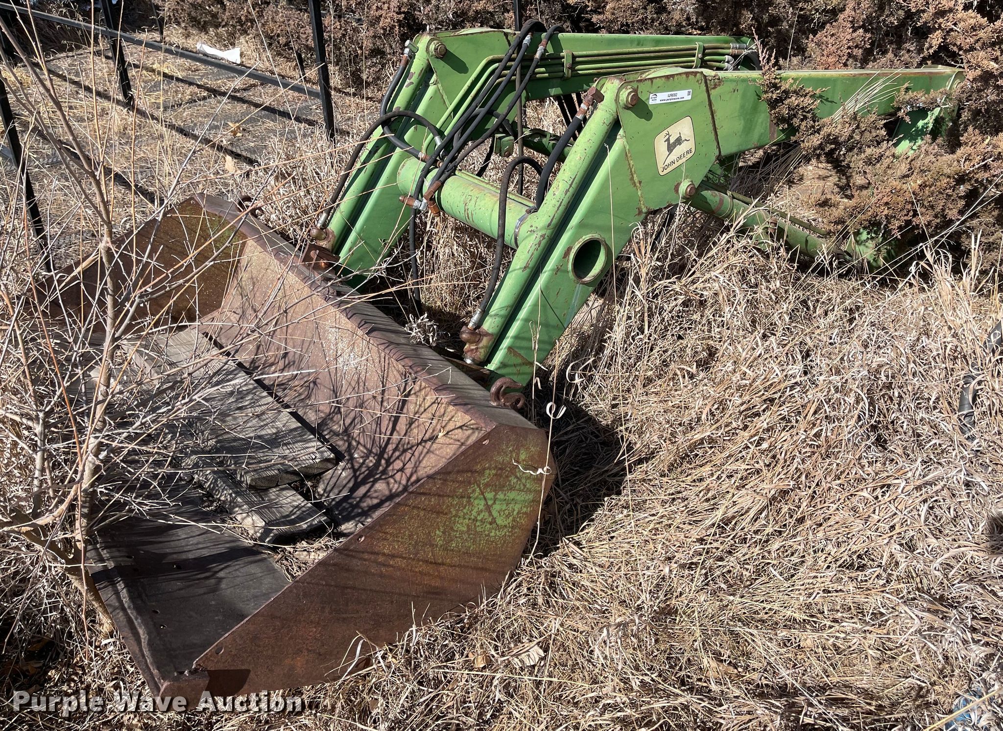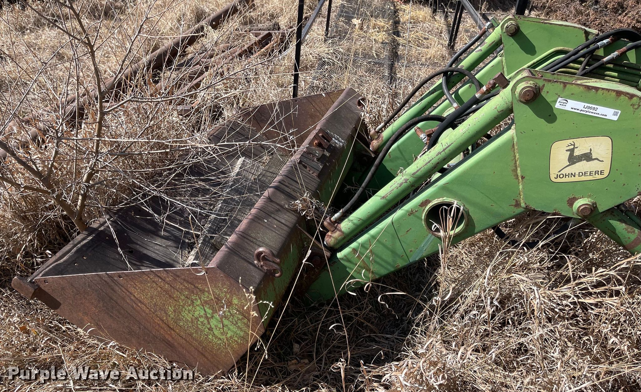 Purple Wave is selling a used Ag Tractor Loader or Attach. in Nebraska. This item is a John Deere loader with the following: Bucket, Width: 72", Mounting brackets, Tractor not included