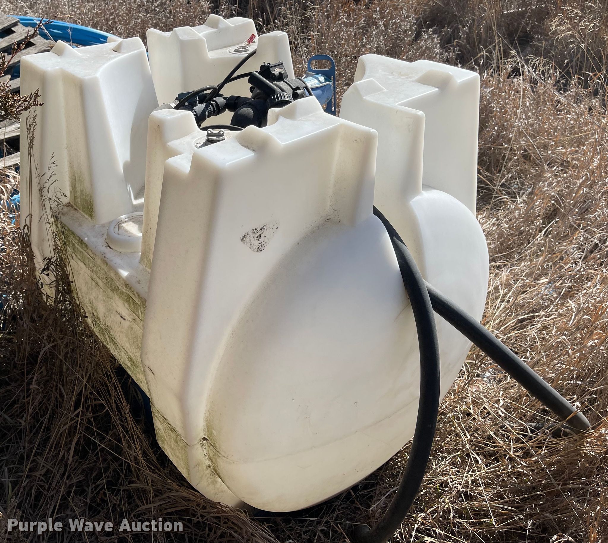 Purple Wave is selling a used Applicator Attach. in Nebraska. This item is a Saddle tank with the following: Capacity: 120 gallons, Pump, 12V, FlowServe flow meter