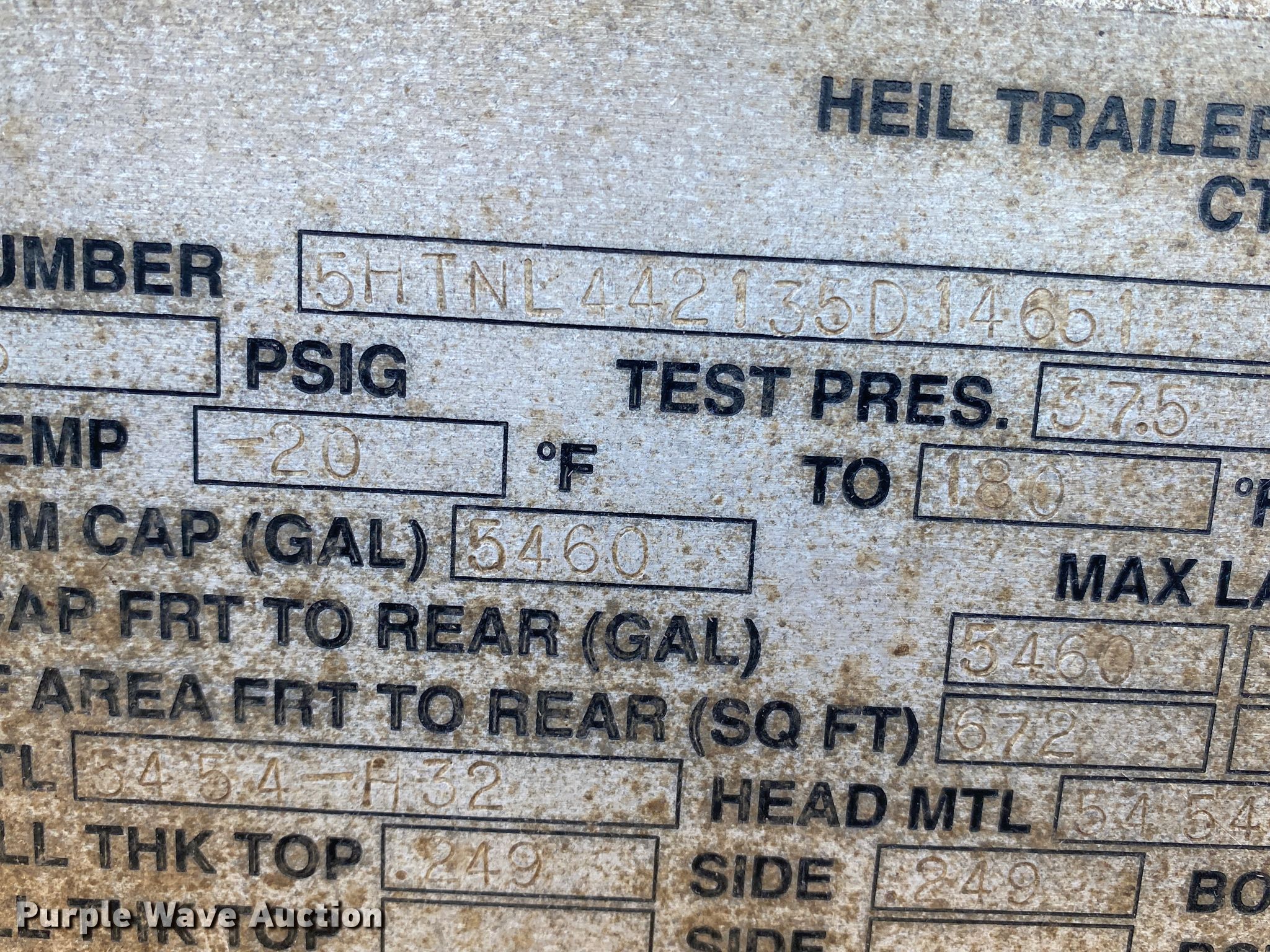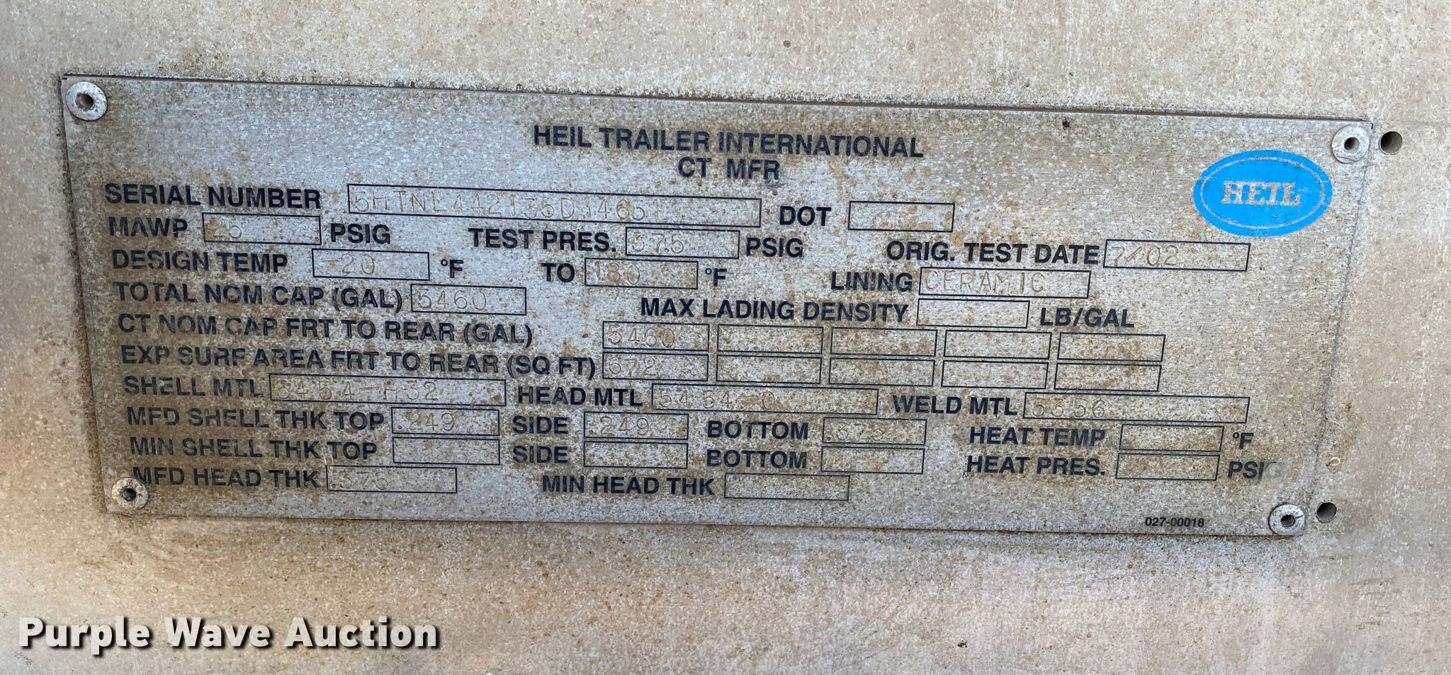 Purple Wave is selling a used Tank Trailer in Kansas. This item is a 2003 Heil vacuum trailer with the following: VIN: 5HTNL442135D14651, Unit #: T-25