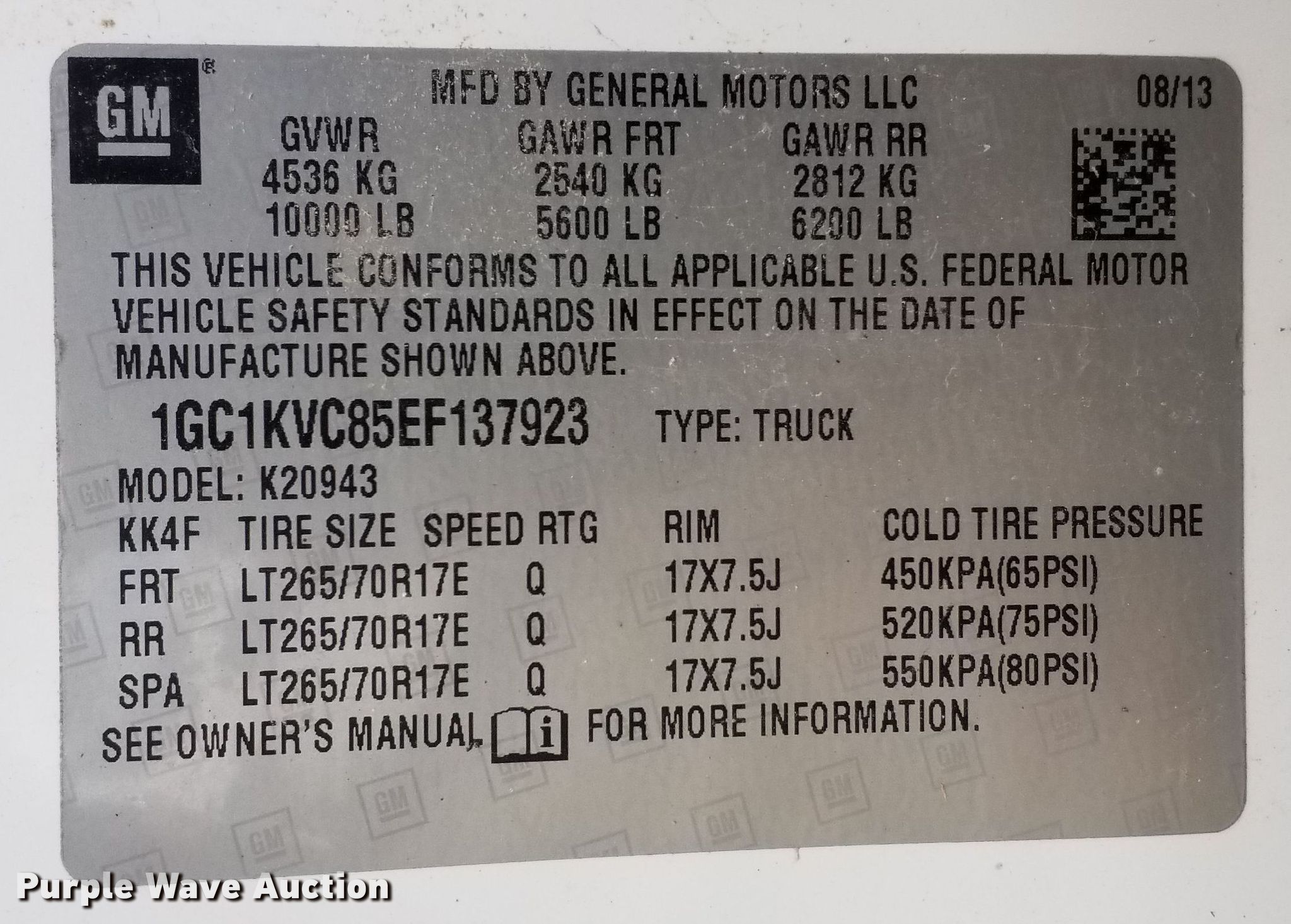 - VIN: 1GC1KVC85EF137923