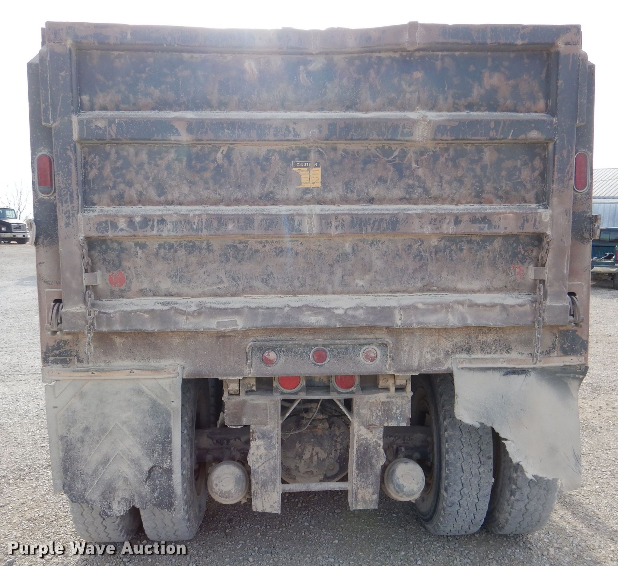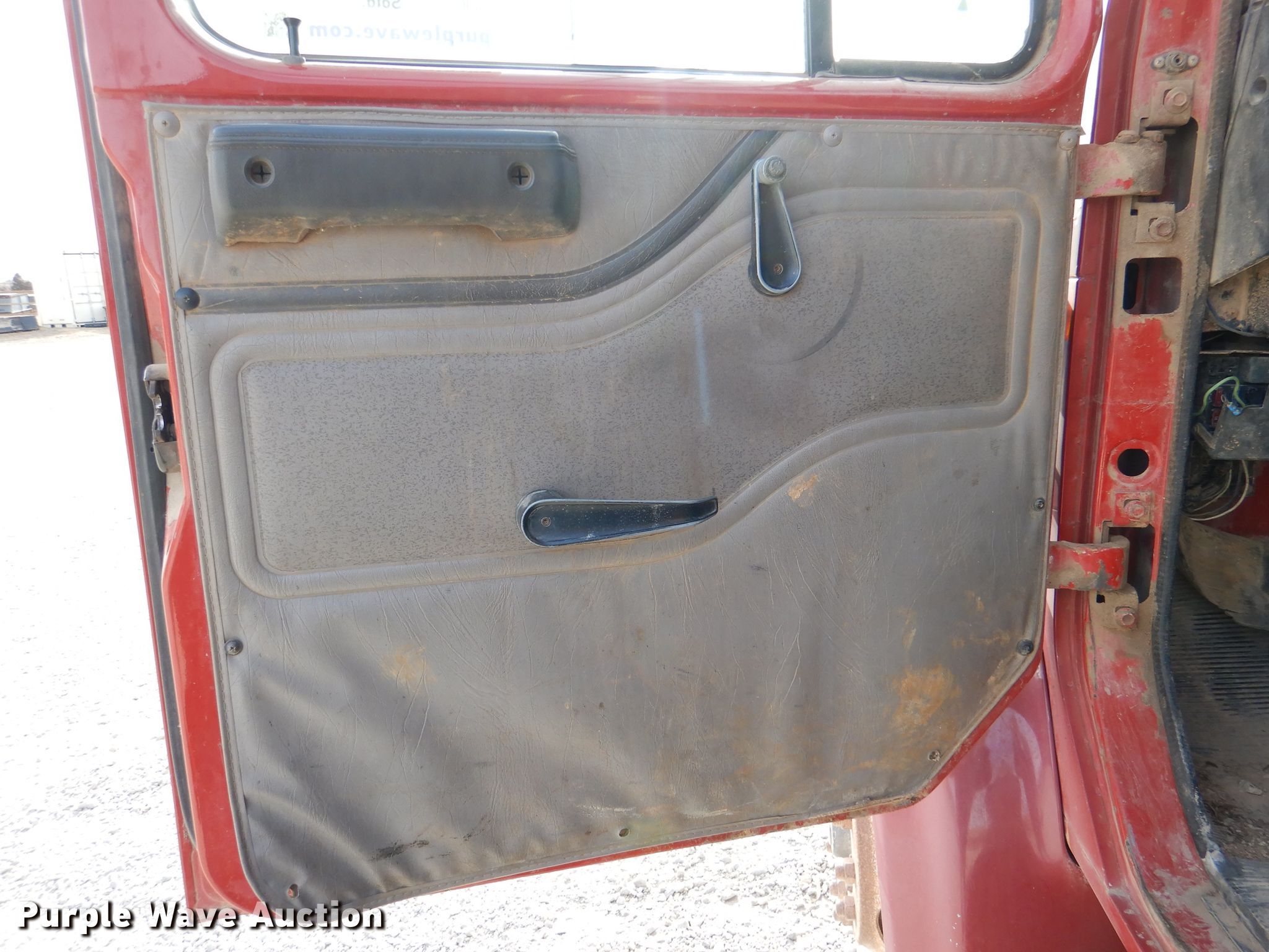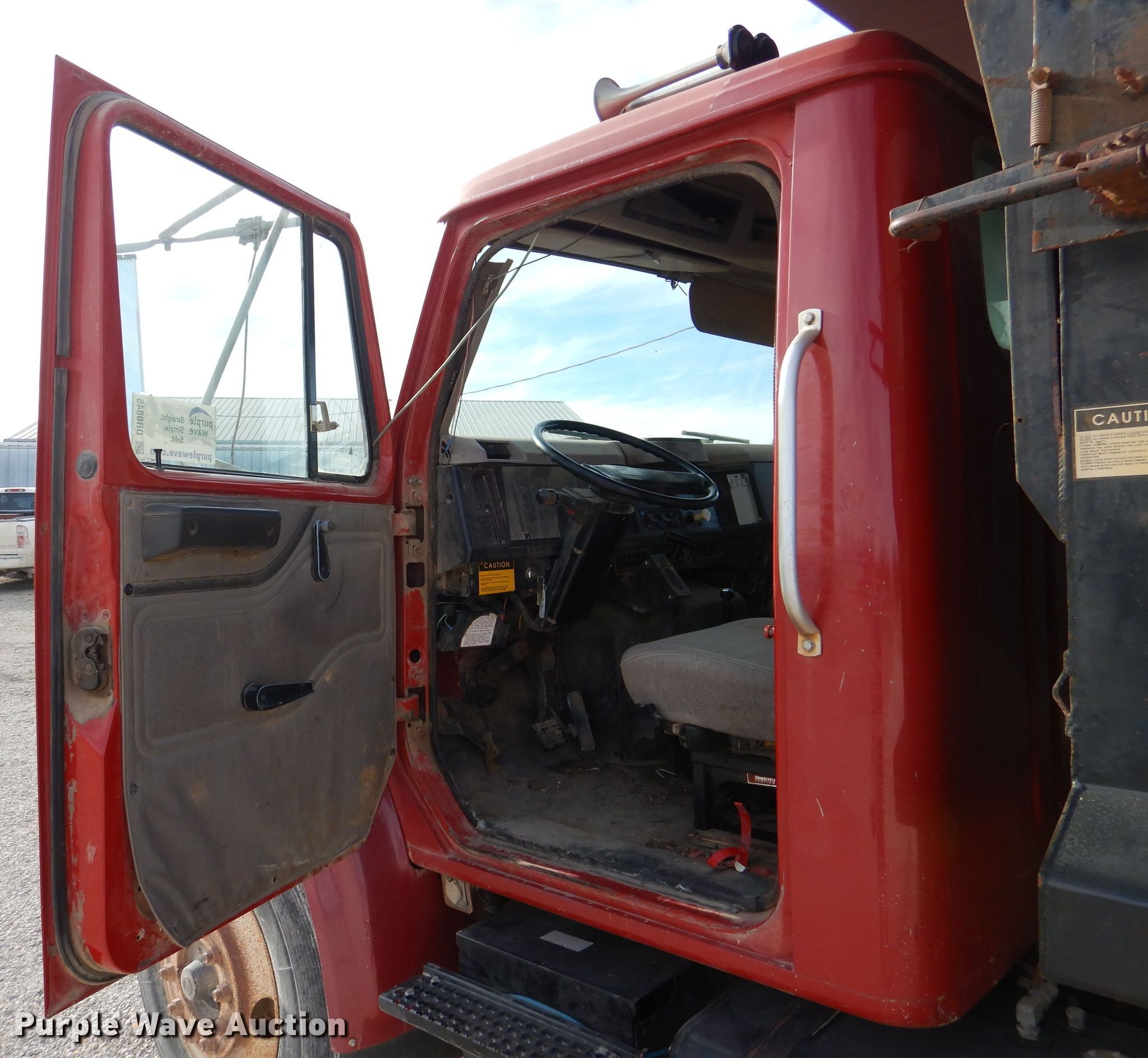1998 International 4900 dump truck. Miles: 306,636 on odometer, VIN: 1HTSHAAR4WH503404. Engine International DT466E, Displacement: 7.6L, Cylinders: 6, Fuel type: Diesel. Transmission Automatic. Chassis Axles: Tandem, Differential lock: Inter-axle, Suspension: Spring over walking beam, Brakes: Air, PTO, GVWR: 52,000 lbs FAWR: 12,000 lbs, IAWR: 20,000 lbs, RAWR: 20,000 lbs. Interior Heat, Cruise control. Operational Dump bed 14' L x 96" W, Side height: 36", Side board height: 8", Bed type: Steel, Ram: Single , End gate: Air operated. Tires Size: 11R22.5. Notes Dash warning indicator: Check engine, Windshield chipped or cracked. Kansas title. Title distribution may be delayed up to 30 days from verification of funds. Pfaff Farms. 13433 Dettmer Rd. Randolph, KS 66554