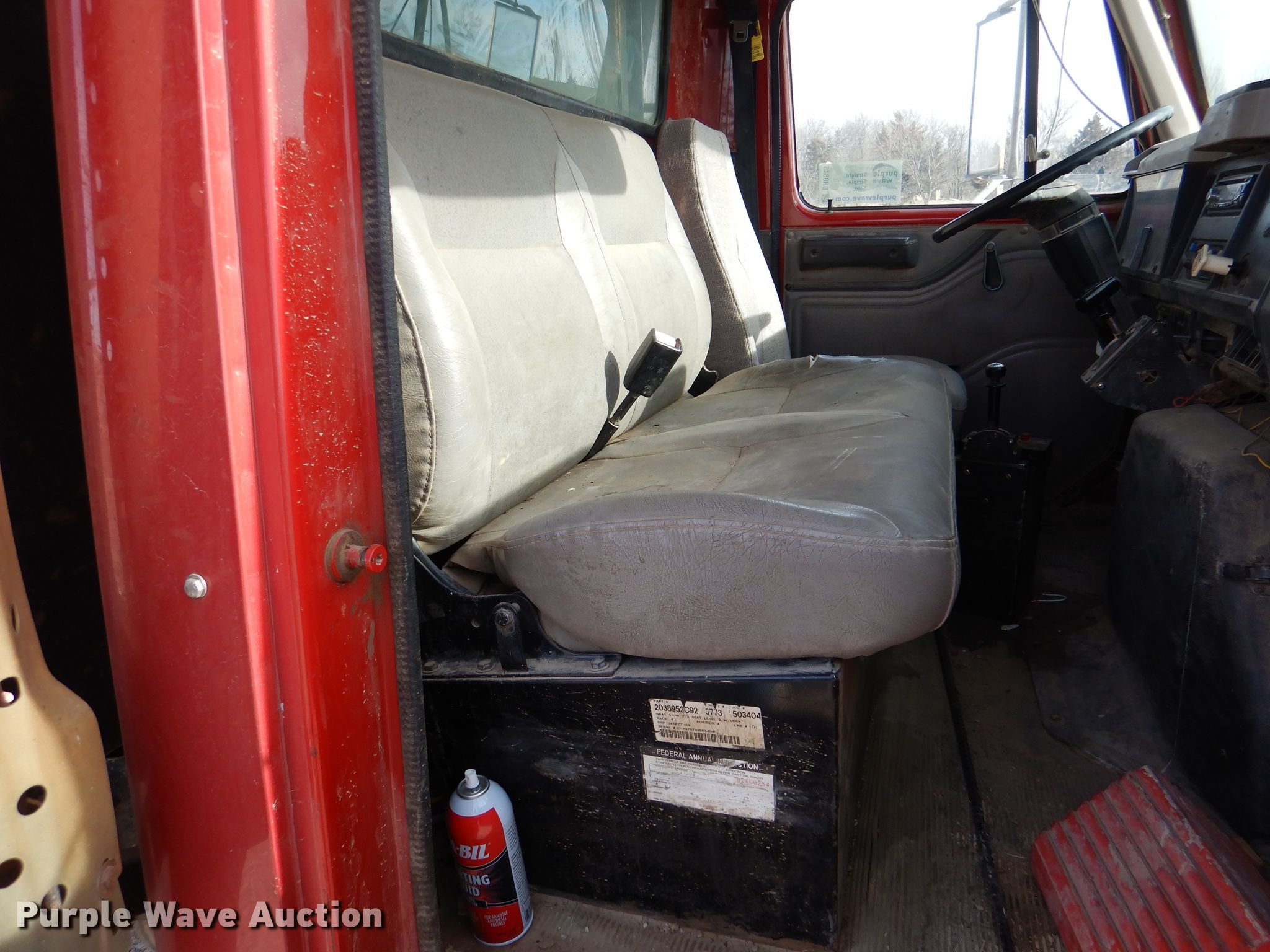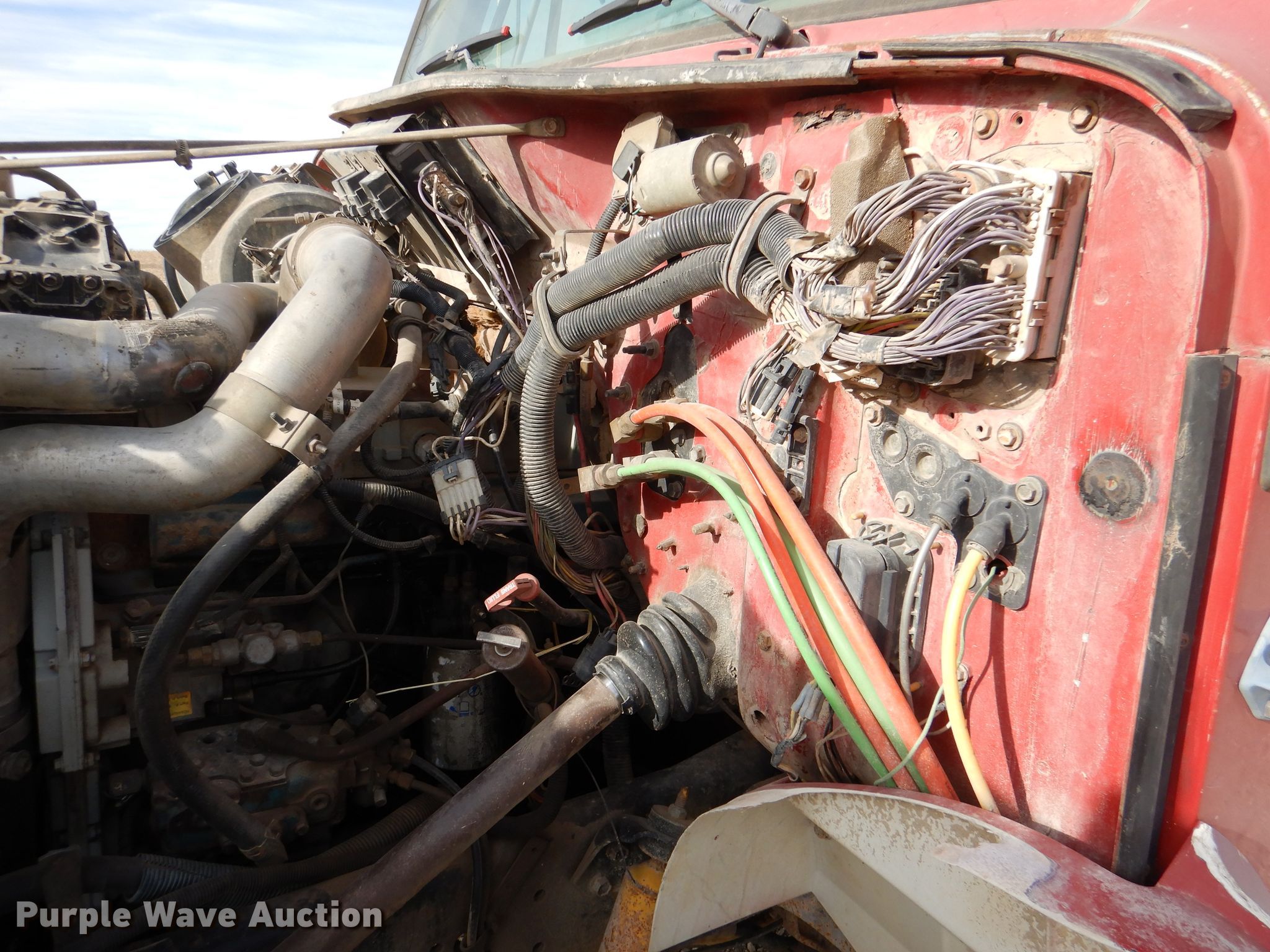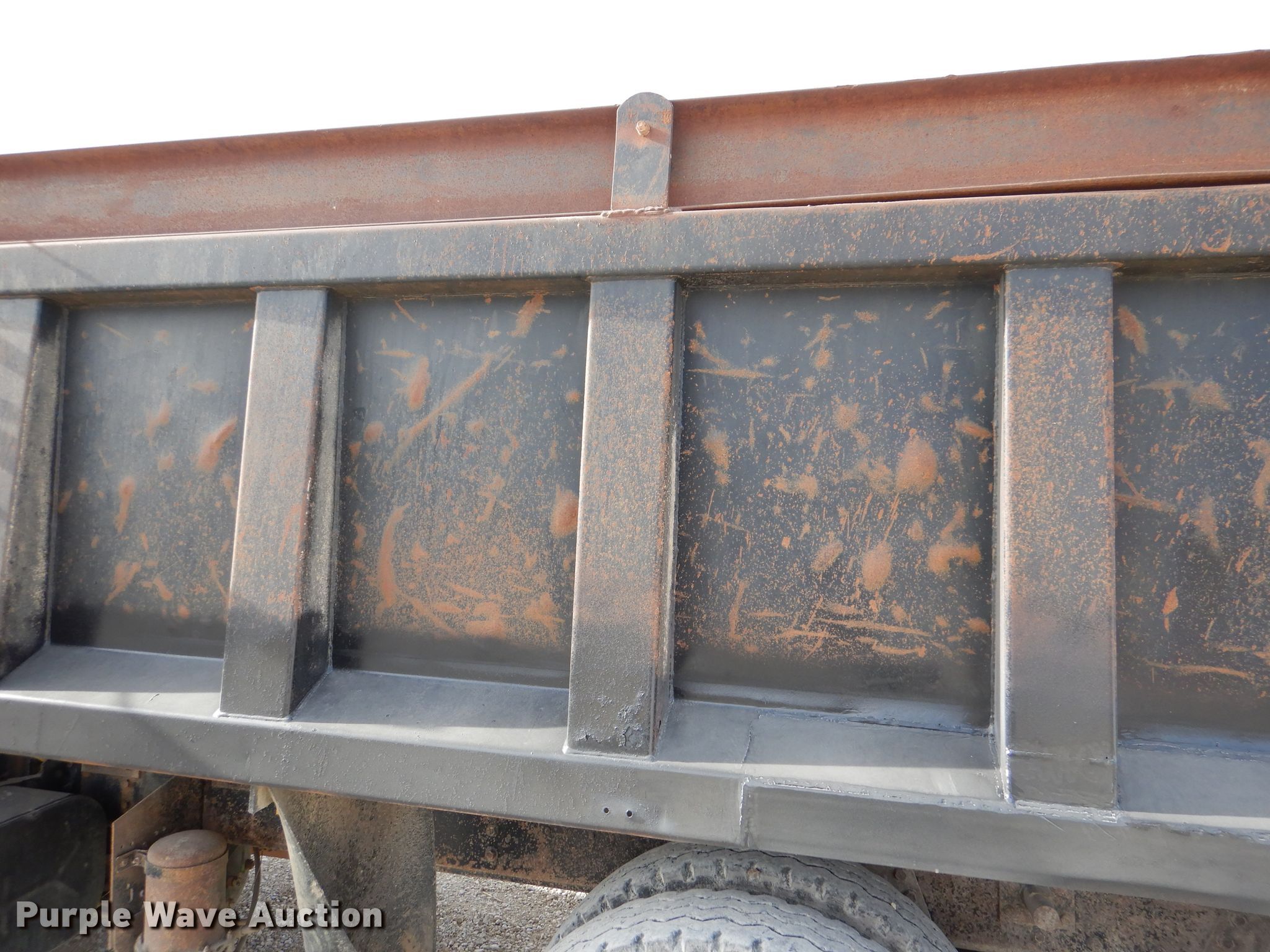 1998 International 4900 dump truck. Miles: 306,636 on odometer, VIN: 1HTSHAAR4WH503404. Engine International DT466E, Displacement: 7.6L, Cylinders: 6, Fuel type: Diesel. Transmission Automatic. Chassis Axles: Tandem, Differential lock: Inter-axle, Suspension: Spring over walking beam, Brakes: Air, PTO, GVWR: 52,000 lbs FAWR: 12,000 lbs, IAWR: 20,000 lbs, RAWR: 20,000 lbs. Interior Heat, Cruise control. Operational Dump bed 14' L x 96" W, Side height: 36", Side board height: 8", Bed type: Steel, Ram: Single , End gate: Air operated. Tires Size: 11R22.5. Notes Dash warning indicator: Check engine, Windshield chipped or cracked. Kansas title. Title distribution may be delayed up to 30 days from verification of funds. Pfaff Farms. 13433 Dettmer Rd. Randolph, KS 66554