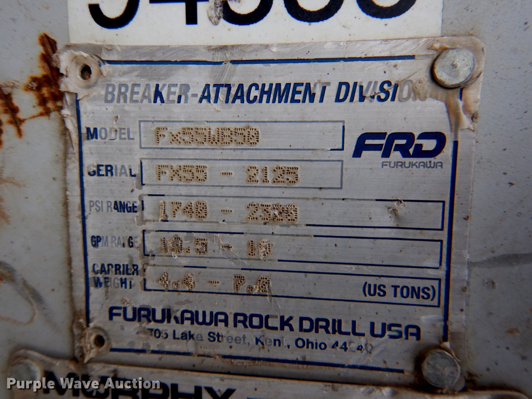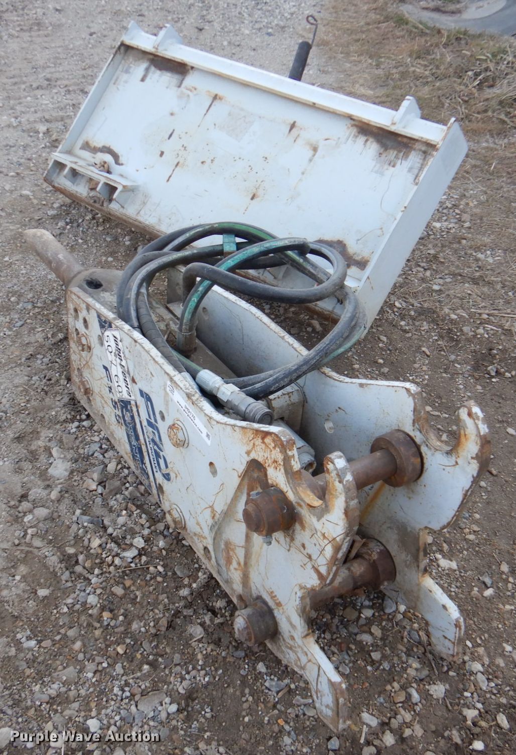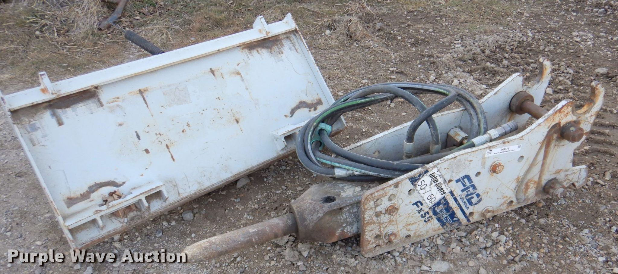 Purple Wave is selling a used Breaker or Hammer in Kansas. This item is a Kent FX55 hammer with the following: Removed from John Deere mini excavator, Skid steer adaptor plate, Serial: FX552125