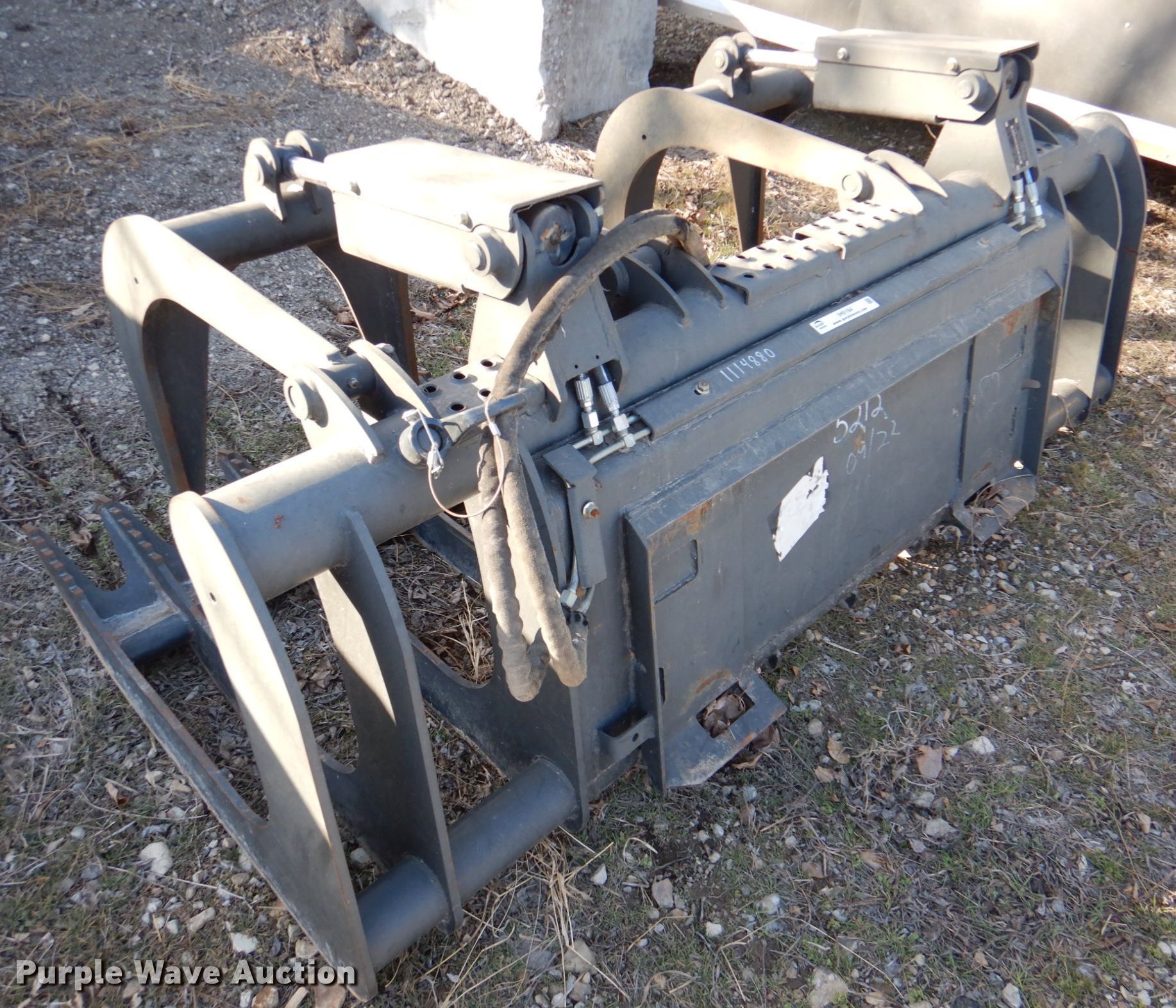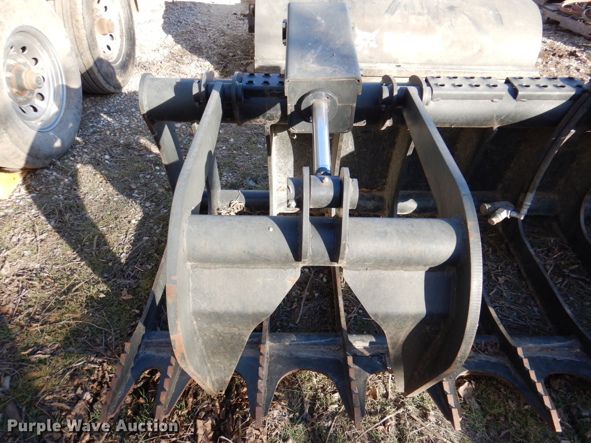 Purple Wave is selling a used Skid Steer Attach. in Kansas. This item is a Bobcat 82"W skid steer grapple bucket with the following: Bobcat 82"W skid steer grapple bucket. Brahma Excavating Retirement. 24804 Q4 Rd. Holton, KS 66436