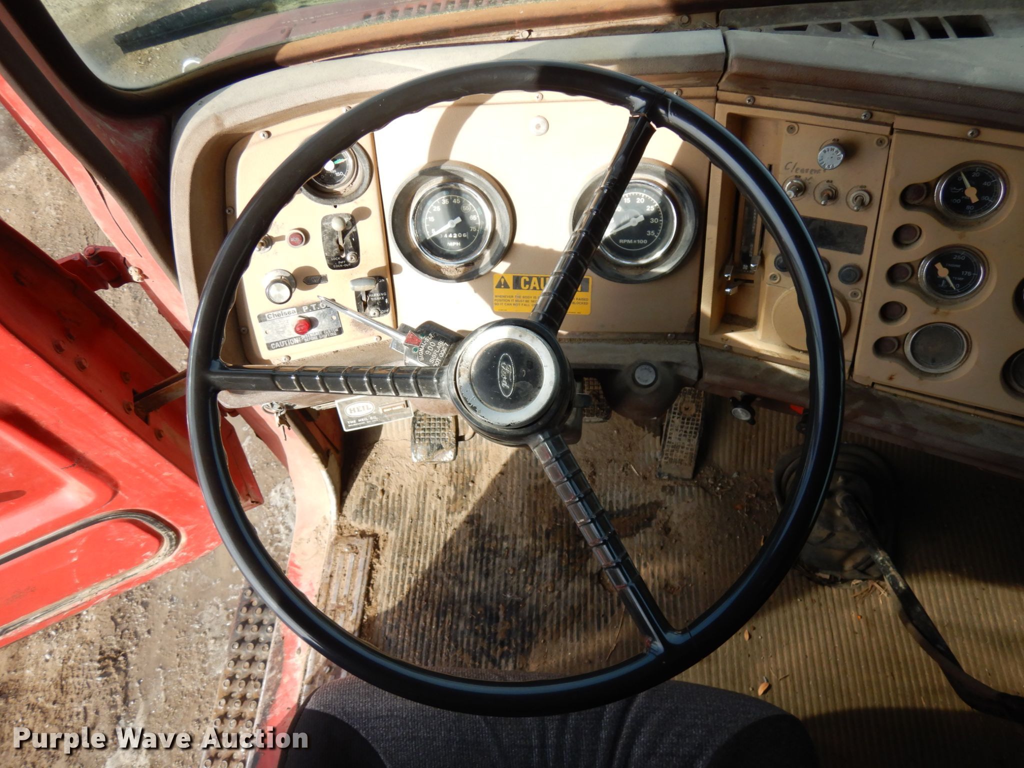 1982 Ford LT8000 dump truck. Miles: 344,206 on odometer, VIN: 1FDYU80U1CVA47971. Engine Caterpillar 3208, Displacement: 10.4L, Cylinders: 8, Fuel type: Diesel. Transmission Manual, Speed: 13. Chassis Double frame, Axles: Tandem, Suspension: Spring over walking beam, Brakes: Air, PTO, GVWR: 500,000 lbs. Interior Heat. Operational Dump bed Heil, 14' L x 96" W, Side height: 37", Side board height: 16.5" Tapered, Bed type: Steel, Ram: Single , End gate: Manual. Tires Front: 385/65R22.5, Rear: 10.00-20. Notes Windshield chipped or cracked. Iowa title. Faas Construction. 3407 V18 Rd. Brooklyn, IA 52211