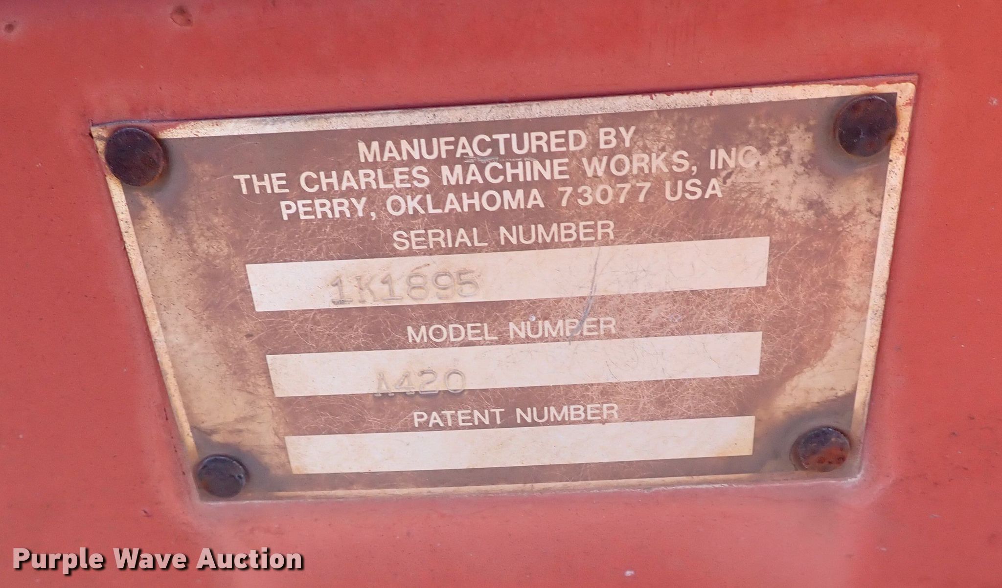 1993 Ditch Witch 5110 trencher. Hours: Unknown, Serial: 5K0479. Engine Deutz F3L912, Serial: 8321880, Cylinders: 3, Fuel type: Diesel. Transmission Manual, 4F - 1R, Four wheel drive. Operational Trencher Model: A615, Serial: 2K1382, Estimated dig depth: 60", Cutting width: 5", Teeth: Dirt, Backhoe Model: A420, Serial: 1K1895, Bucket width: 18", Backfill blade Width: 72". Tires Size: 31X15.50-15NHS. Notes Non-operational hour meter. Hudson Trenching Service, Inc.. Oklahoma City, OK 73156