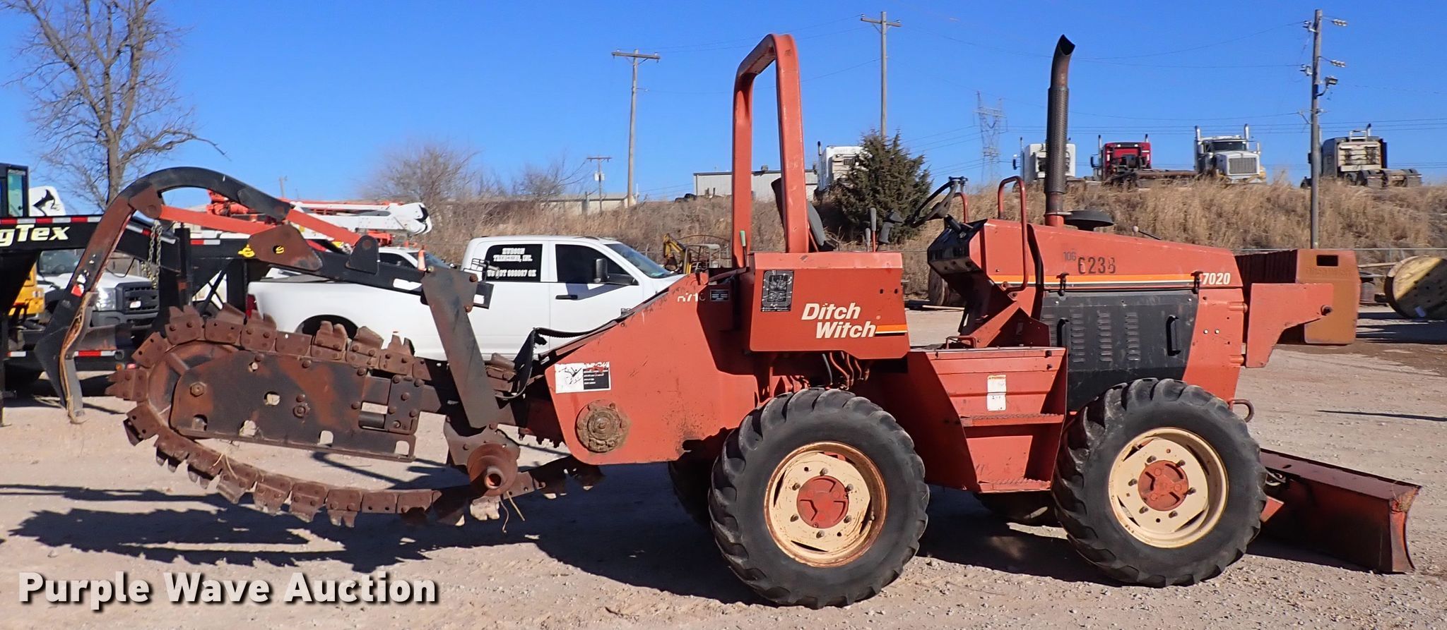 Purple Wave is selling a used Trencher or Rock Saw in Oklahoma. This item is a Ditch Witch 7020 trencher with the following: Hours: Unknown, Serial: 5N0342
