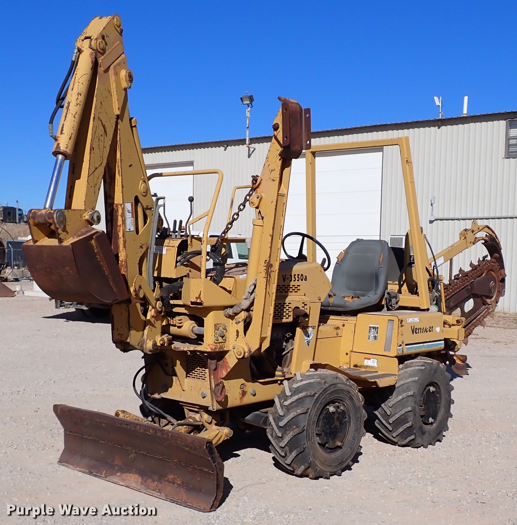 1998 Vermeer 3550A trencher. Hours: 380 on meter, Serial: 1VRS072P0W1000532. Engine Deutz, Cylinders: 3, Fuel type: Diesel, HP: 43. Transmission Hydrostatic. Operational Model: SO3550, Serial: 1VRM080V5W1000459, Estimated dig depth: 60", Cutting width: 6", Side shift, Teeth: Dirt, Manual crumber, Backhoe Model: B500A, Serial: 1VRM040MXV1000455, Bucket width: 12", Backfill blade Width: 55". Tires Size: 26x12.00-12. Hudson Trenching Service, Inc.. Oklahoma City, OK 73156