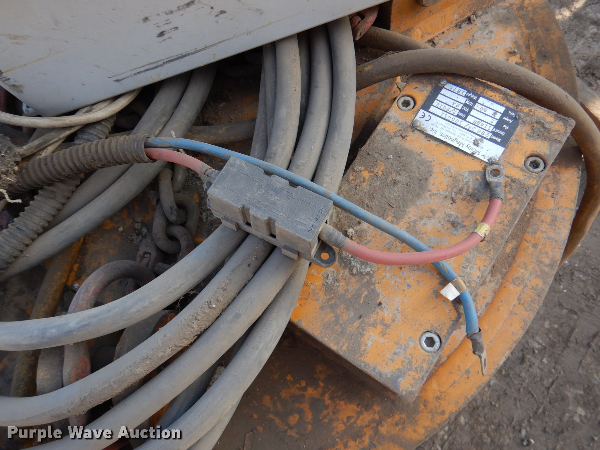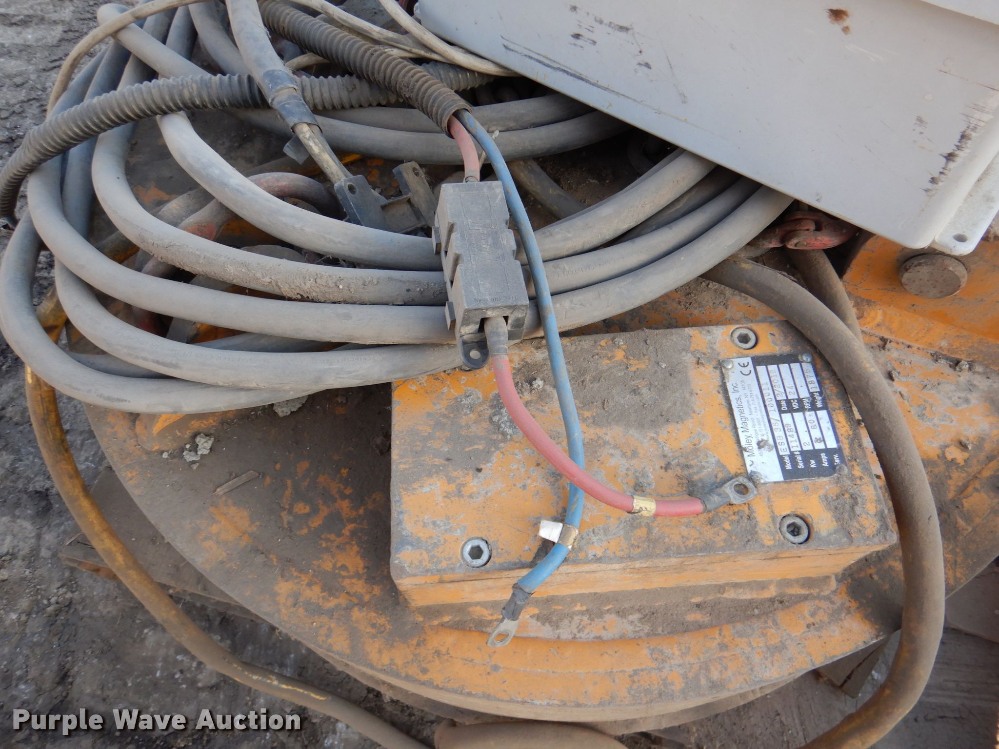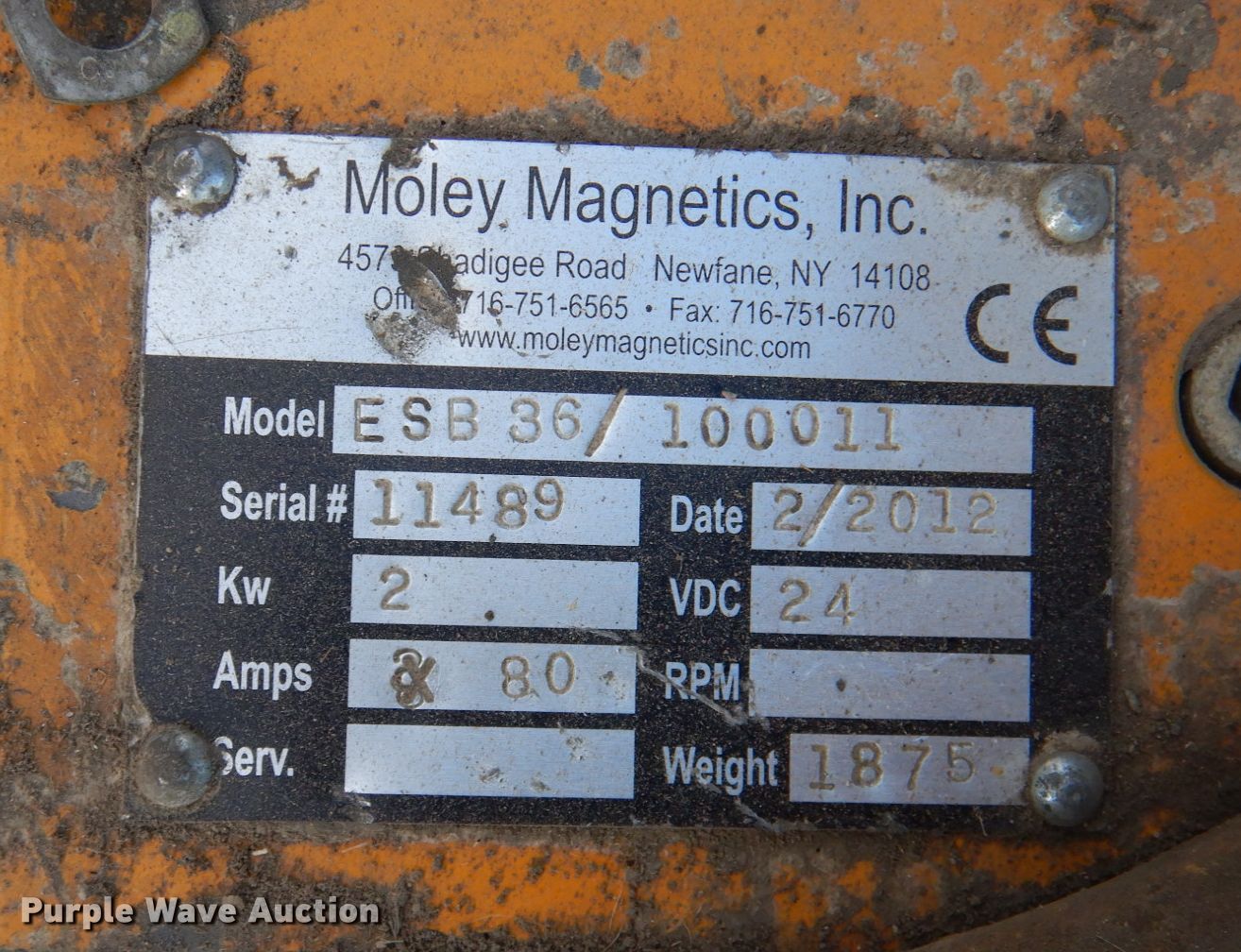 Purple Wave is selling a used Excavator Attach. in Kansas. This item is a Moley ESB 36 magnet with the following: Serial: 11489, 36" diameter, Leads, 24V, Control box