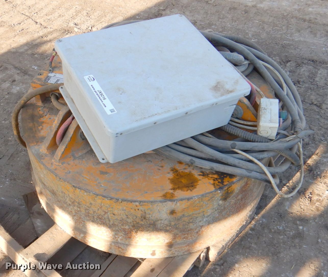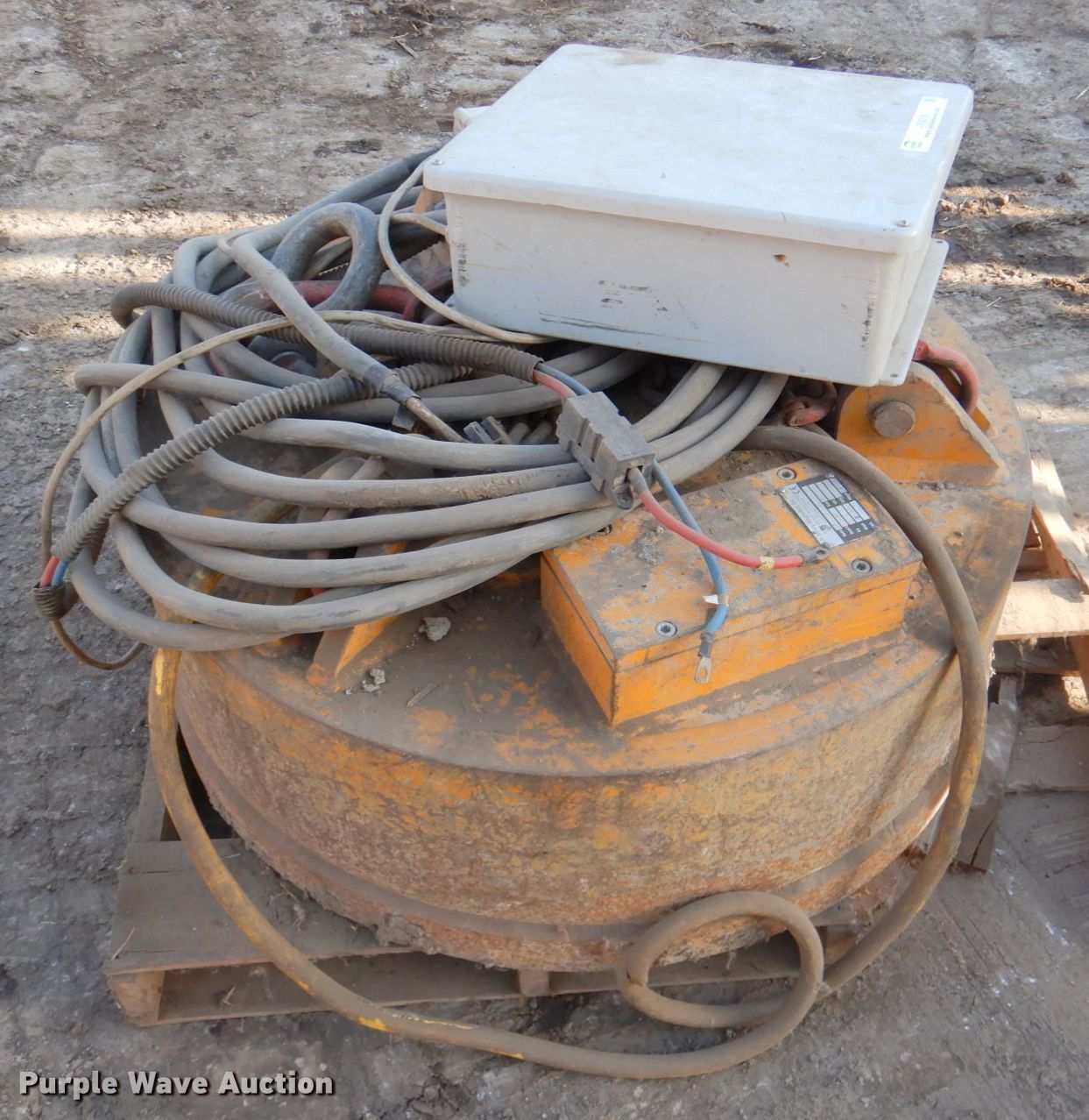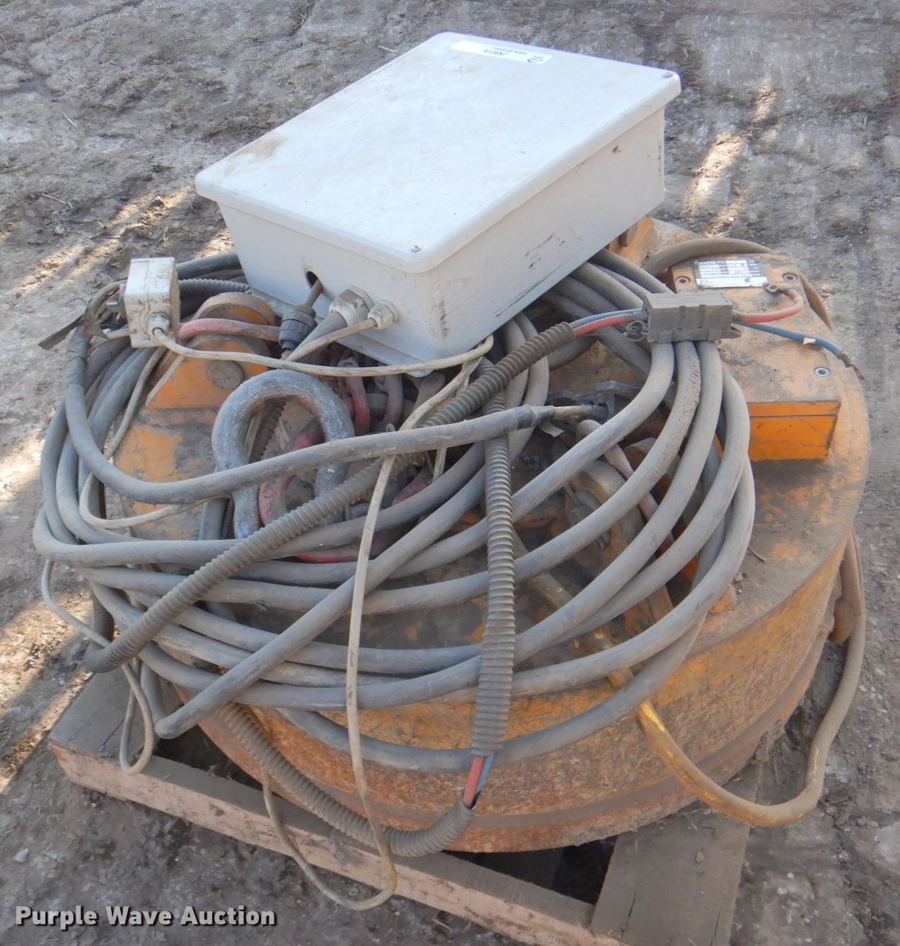 Purple Wave is selling a used Excavator Attach. in Kansas. This item is a Moley ESB 36 magnet with the following: Serial: 11489, 36" diameter, Leads, 24V, Control box