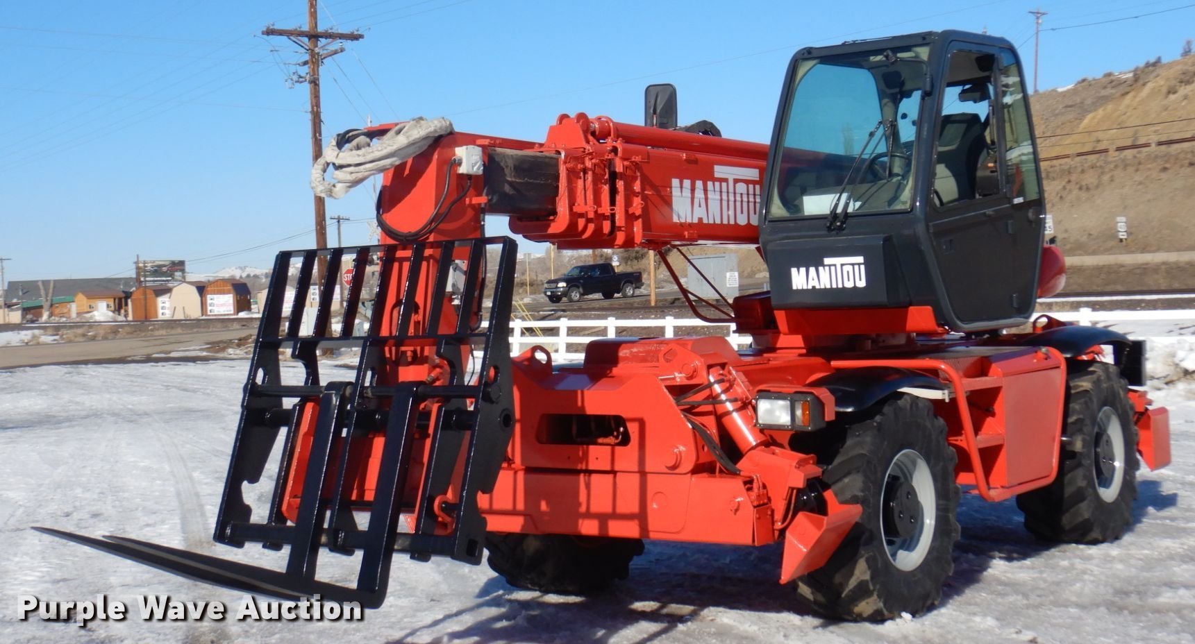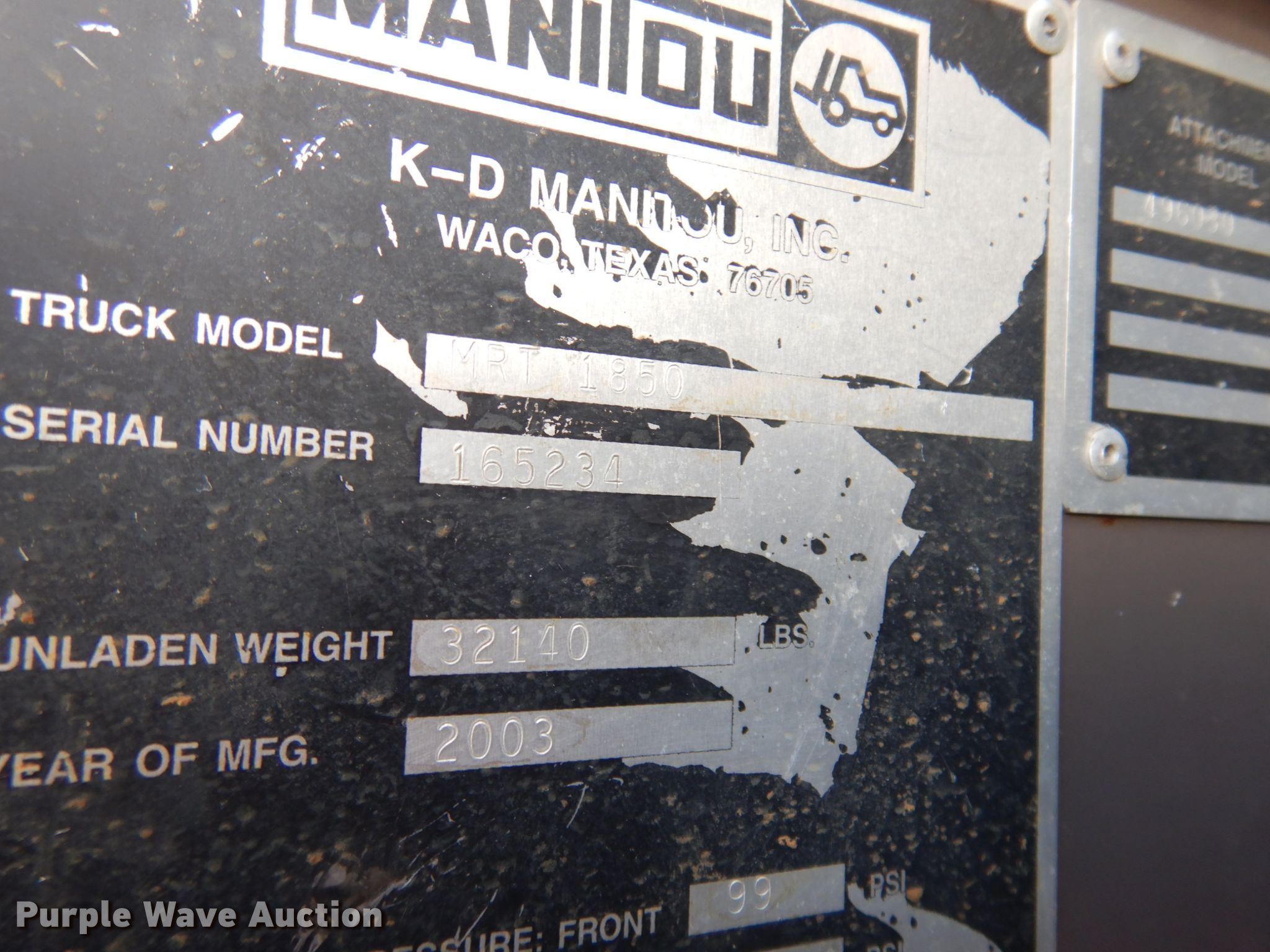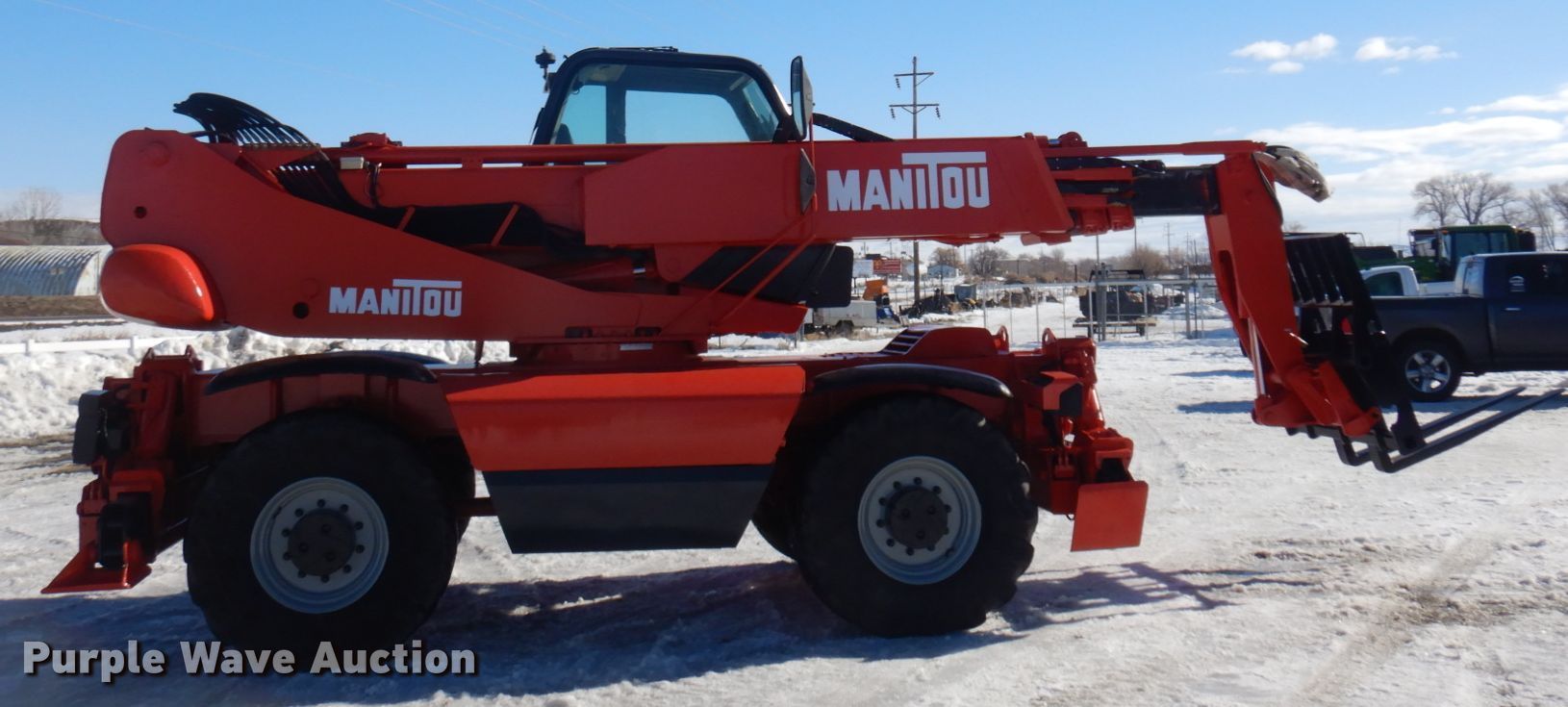 Purple Wave is selling a used Telehandler in Colorado. This item is a 2003 Manitou MRT-1850 telehandler with the following: Hours: 4,188 on meter, Serial: 165234