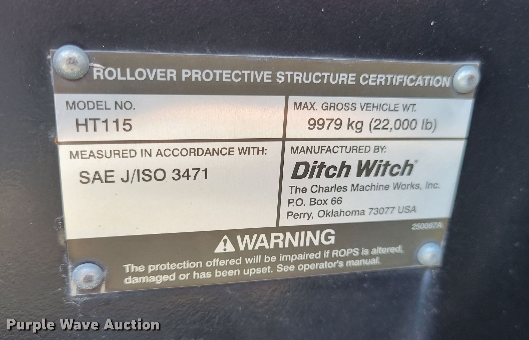 Purple Wave is selling a used Trencher or Rock Saw in Missouri. This item is a 2006 Ditch Witch RT115 rock saw with the following: Hours: 566 on meter, Unit #: 63410024