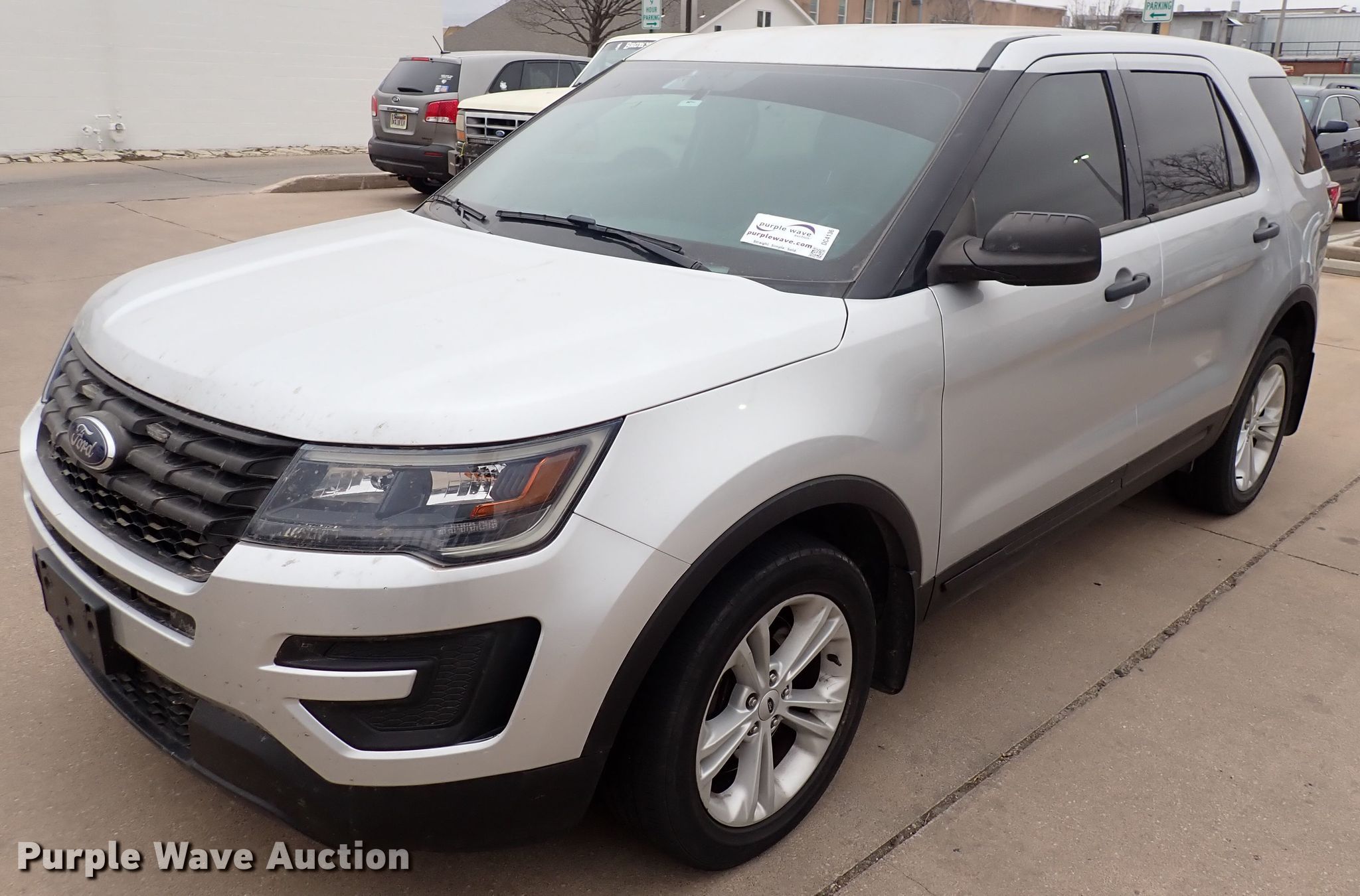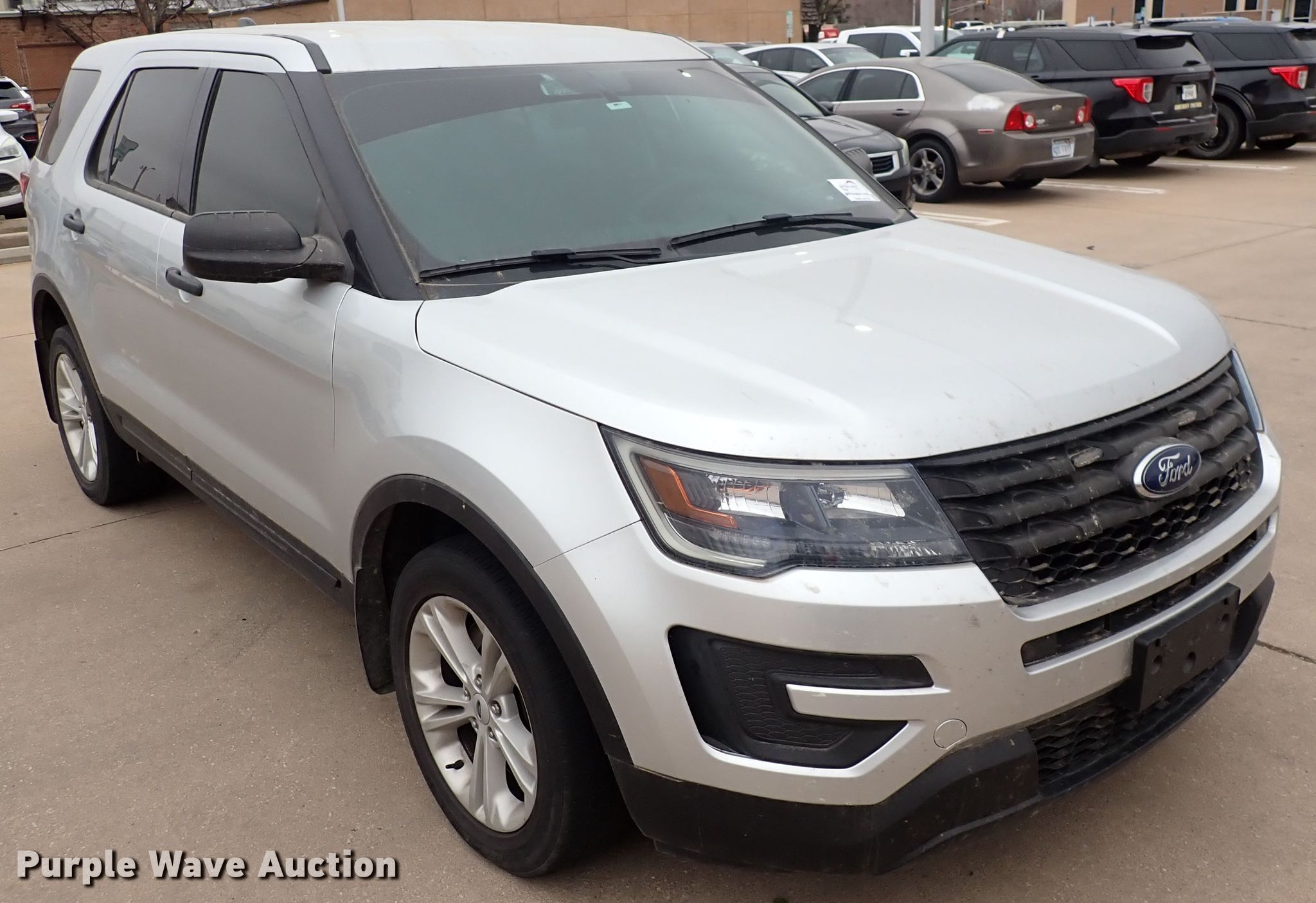2017 Ford Explorer Police SUV. Miles: 90,752 on odometer, VIN: 1FM5K8AR6HGC56802. Engine Displacement: 3.7L V6 DOHC 24V, Cylinders: 6, Fuel type: Gas. Transmission Automatic, Four wheel drive. Interior AC, Heat, Seat: Power driver, Power windows, Power locks, Cruise control. Tires Size: 245/55R18. Kansas title. Law enforcement and emergency equipment will be removed prior to auction. Includes but not limited to police radio, spotlight, emergency lights and siren, firearm rack, and camera. Harvey County Sheriffs Office. Newton, KS 67114