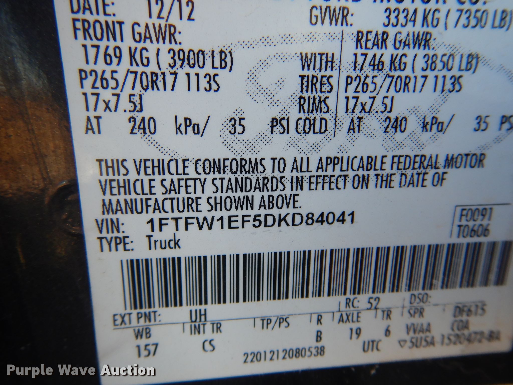 - VIN: 1FTFW1EF5DKD84041