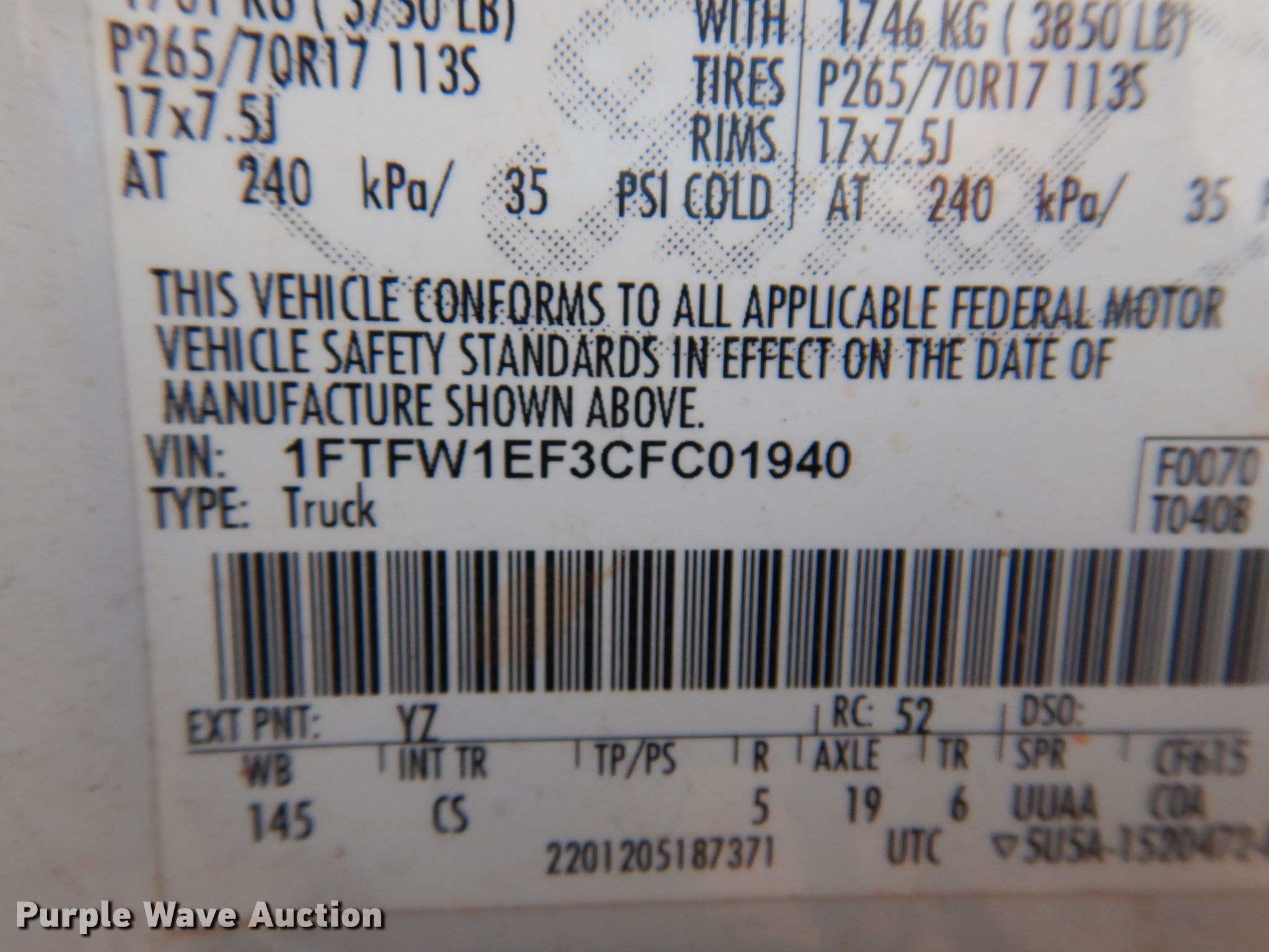 • VIN: 1FTFW1EF3CFC01940