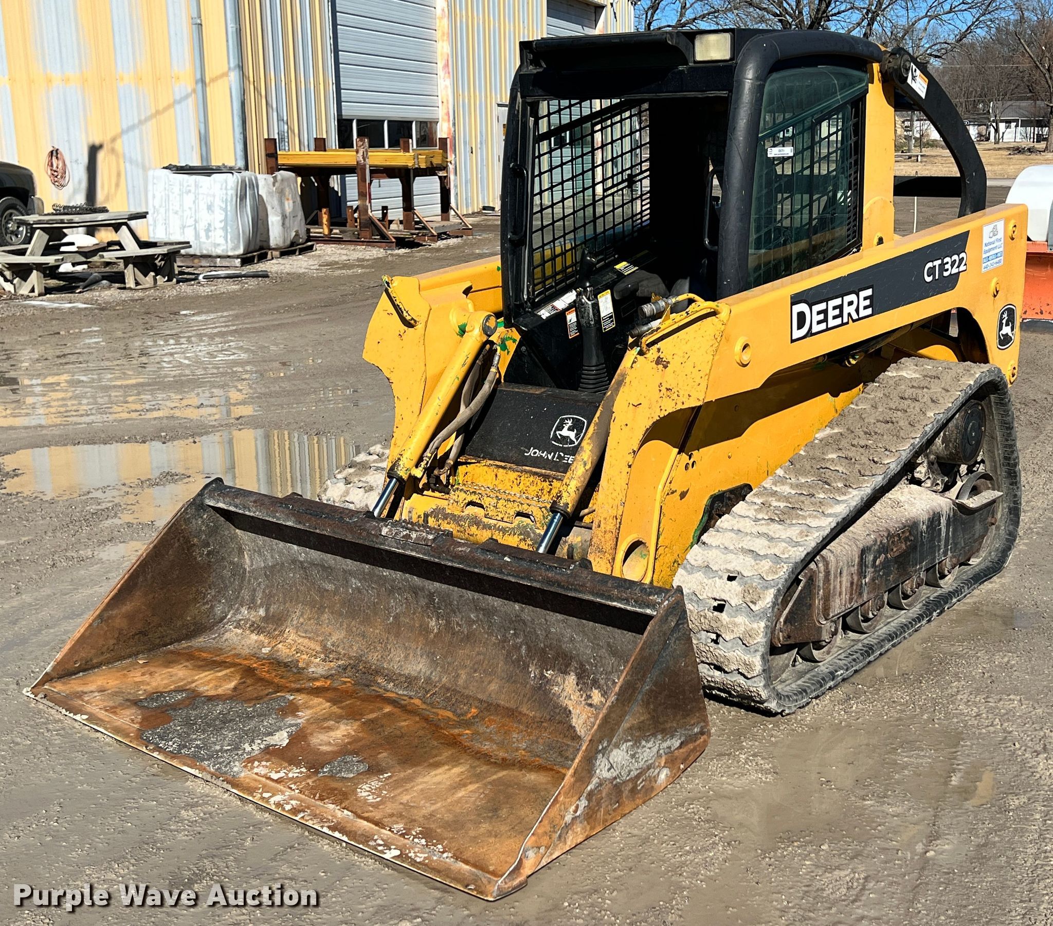 Purple Wave is selling a used Tracked Skid Steer Loader in Kansas. This item is a John Deere CT322 tracked skid steer loader with the following: Hours: 2,880 on meter