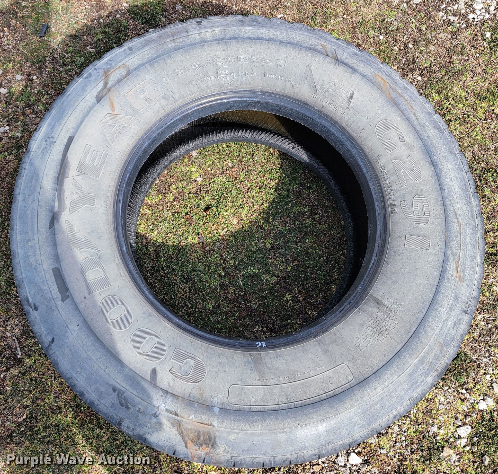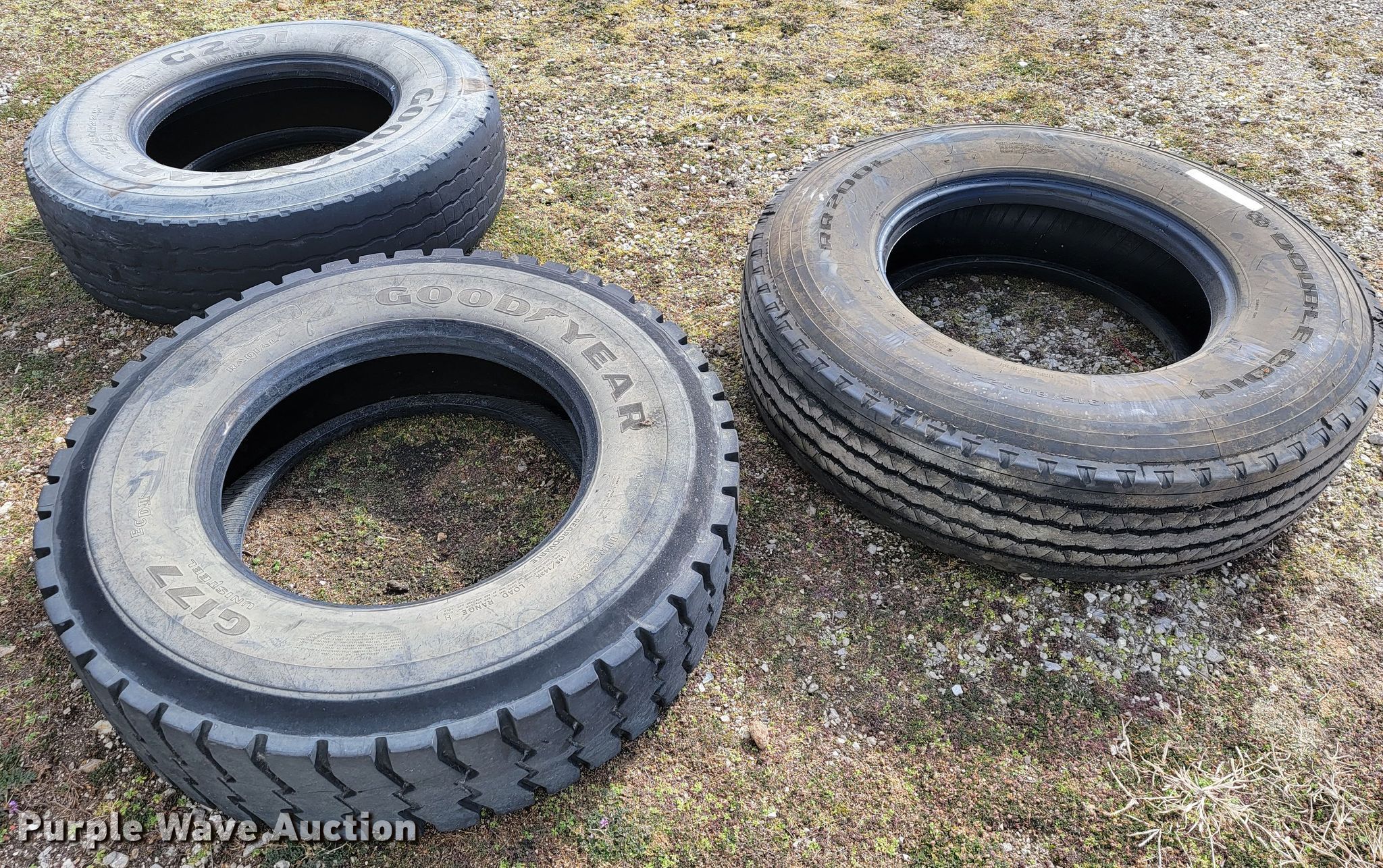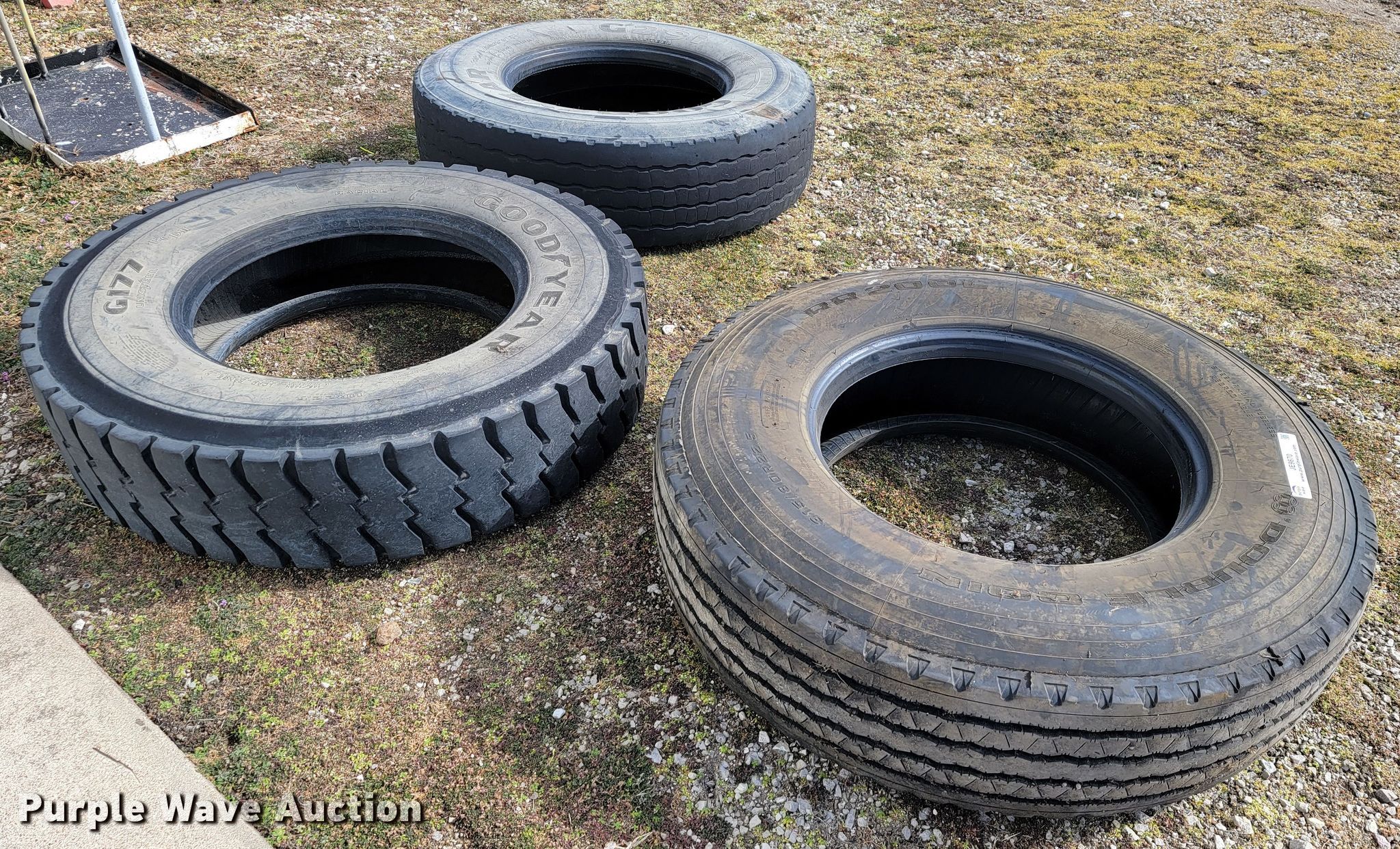 Purple Wave is selling a used Industrial Tires or Tracks in Missouri. This item is a (3) tires with the following: Goodyear 11R22.5, Double Coin 315/80R22.5, Goodyear 315/80R22.5