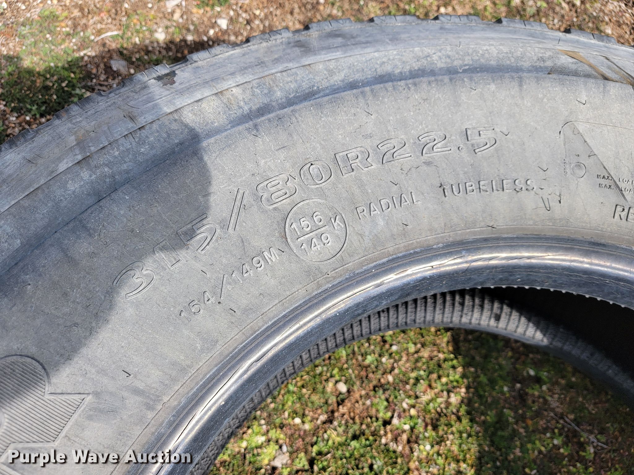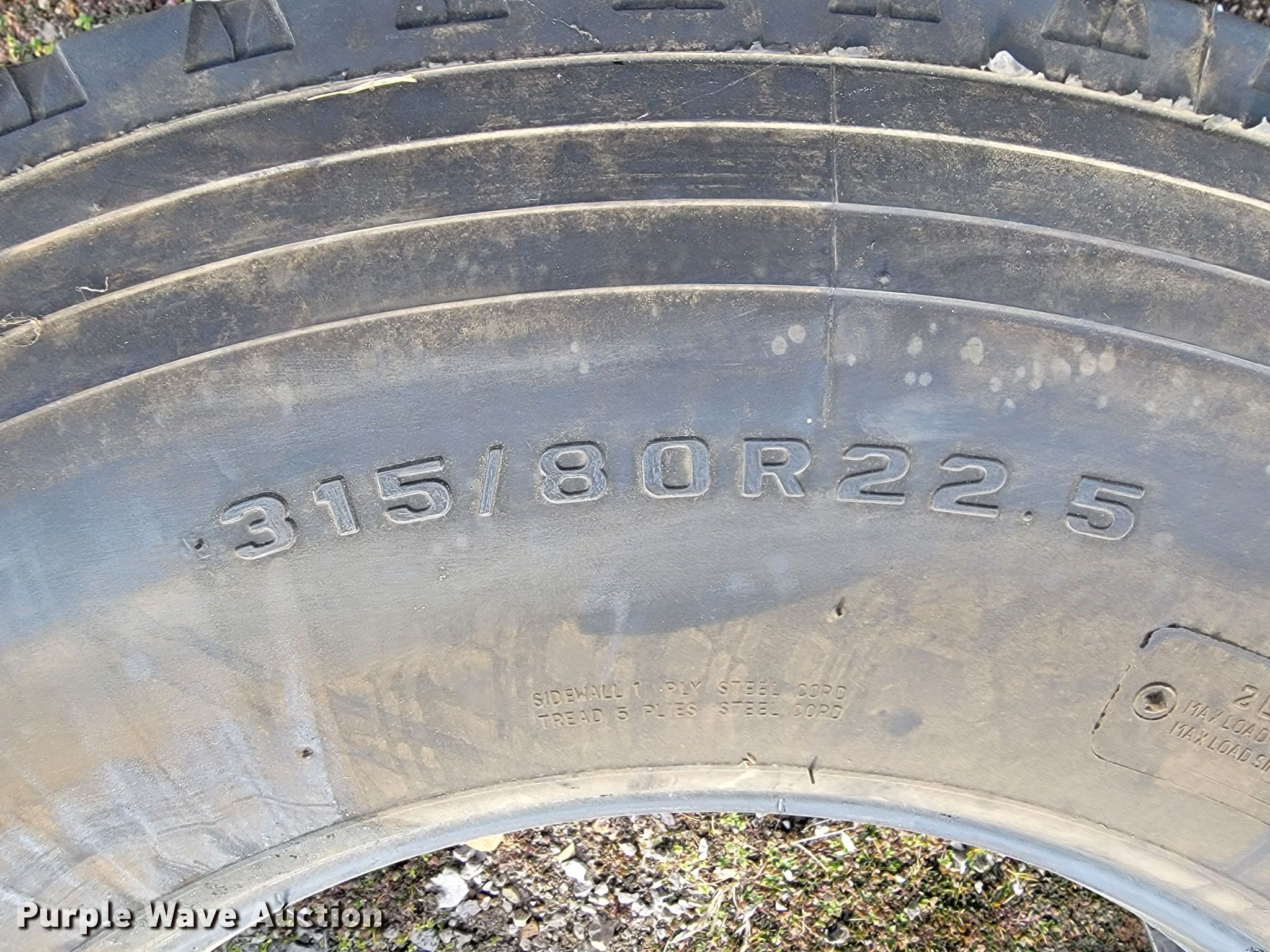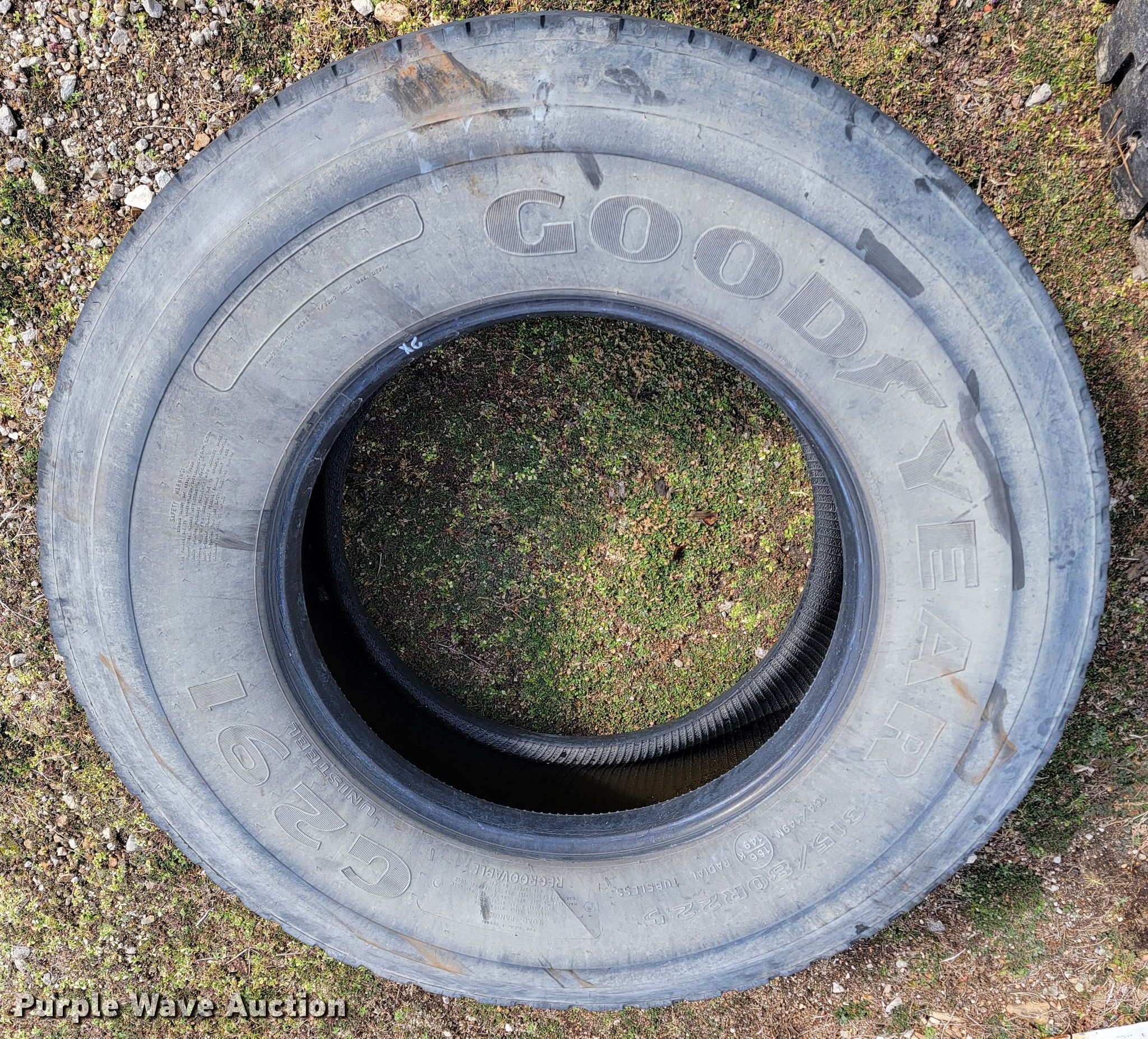 Purple Wave is selling a used Industrial Tires or Tracks in Missouri. This item is a (3) tires with the following: Goodyear 11R22.5, Double Coin 315/80R22.5, Goodyear 315/80R22.5