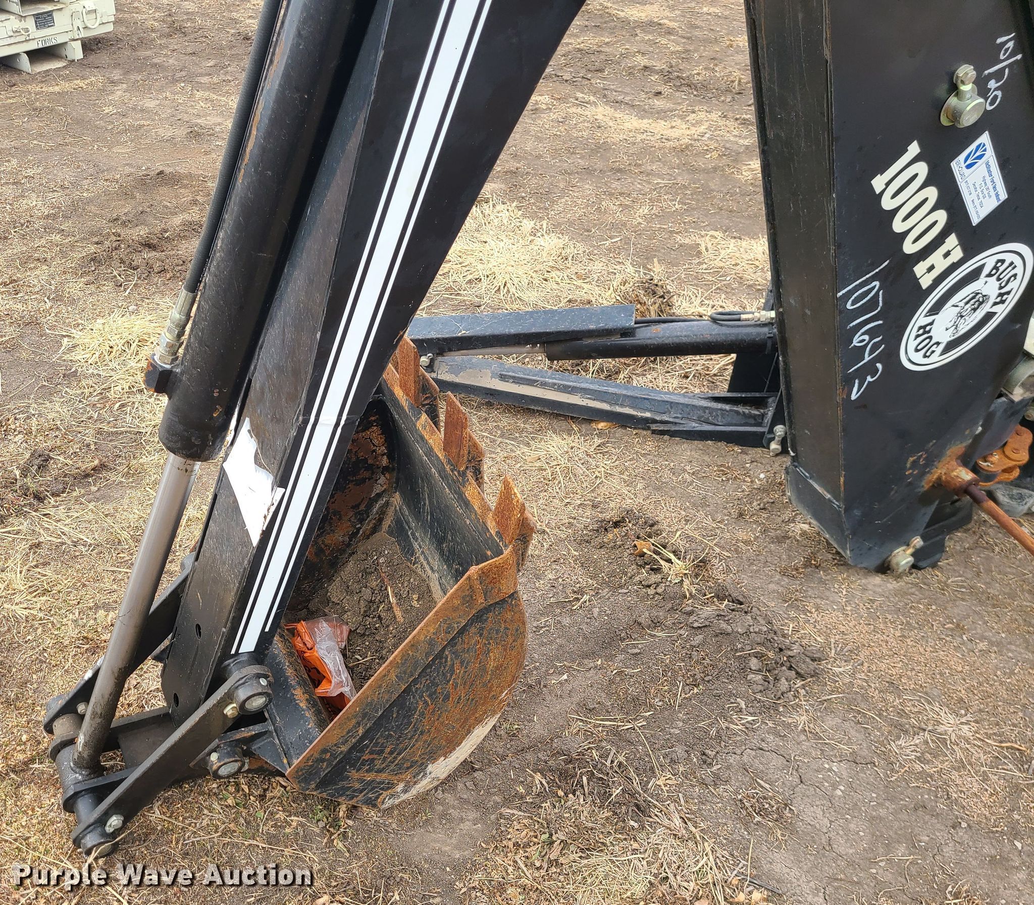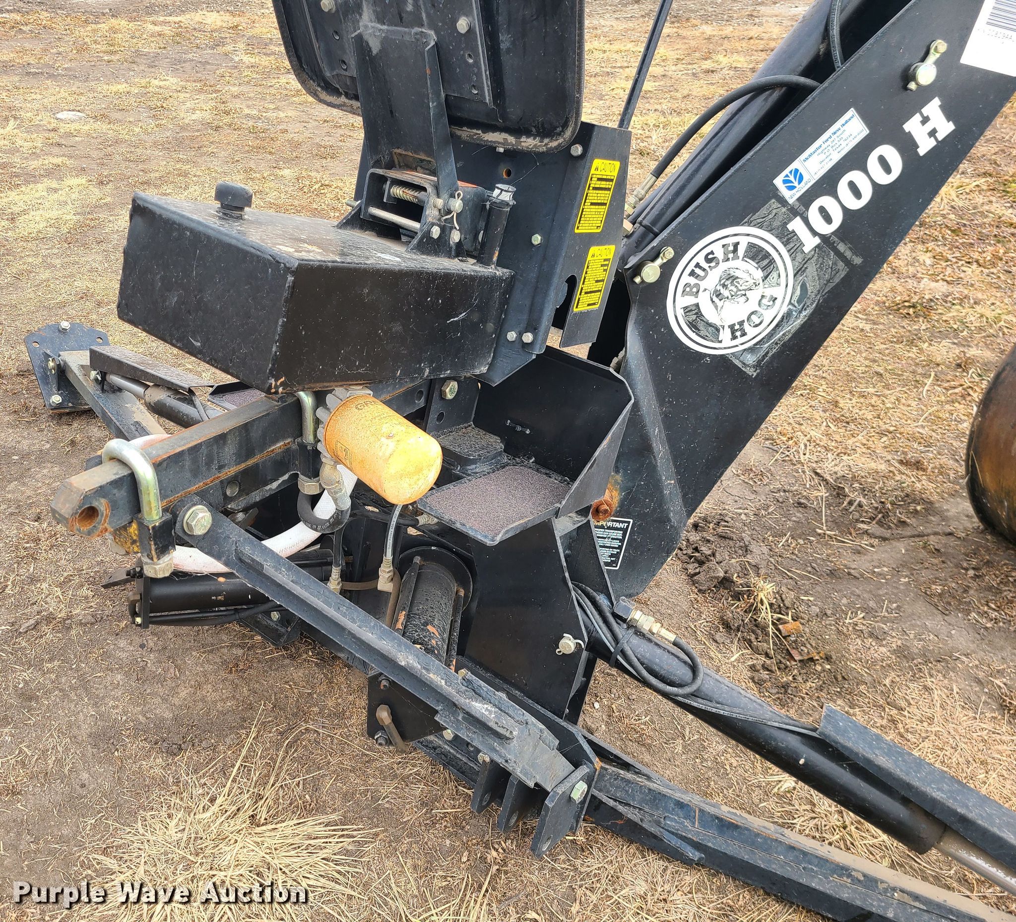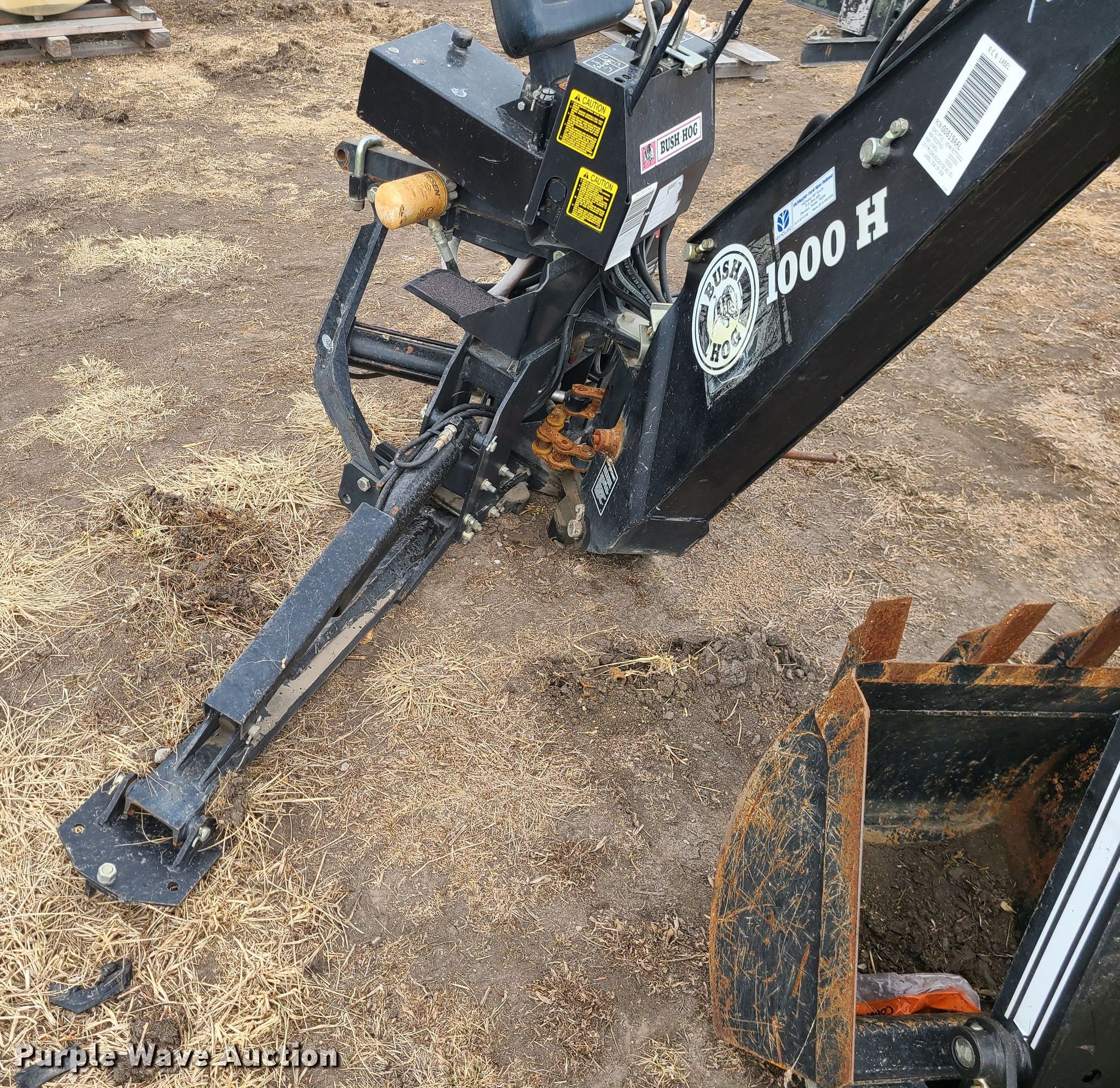 Purple Wave is selling a used Skid Steer Attach. in Missouri. This item is a Bush Hog 1000H skid steer backhoe with the following: Serial: 12-00160, Bucket width: 18", Teeth: 4