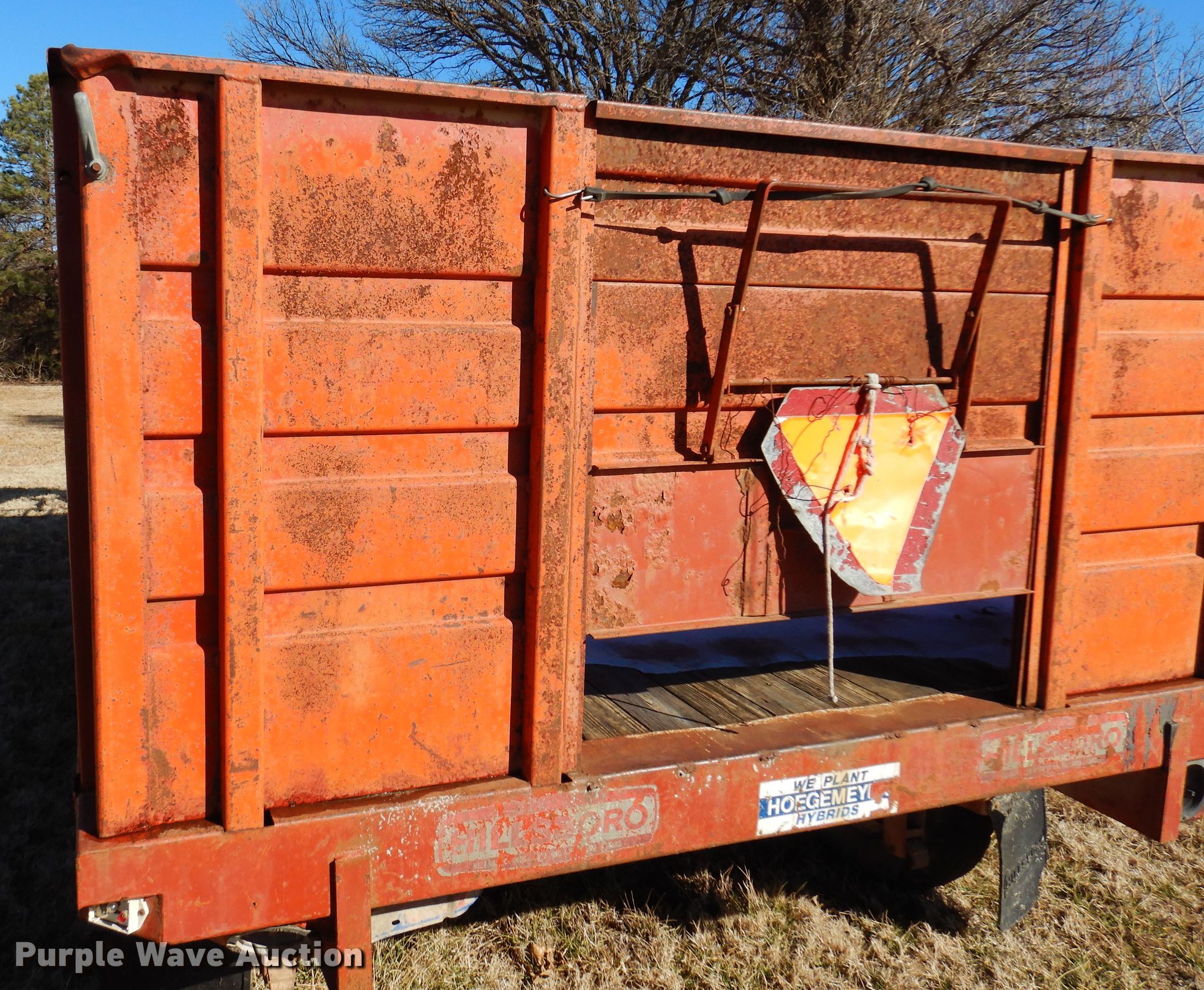 1973 Hillsboro end dump trailer. VIN: 5790. Dimensions Overall: 24' L x 94" W, Body: 16' L x 94" W, Side height: 46". Operational Body type: Steel, End gate: Manual. Chassis Hitch: Inverted ball, Landing gear: Single, Suspension: Spring, Brakes: Hydraulic, Axles: Triple, GVWR: 18,000 lbs. Tires Steel wheels, Size: 9-14.5. Kansas title. Title distribution may be delayed up to 30 days from verification of funds. The Rinck River Bottom Farms, Inc.. Peru, KS 67360