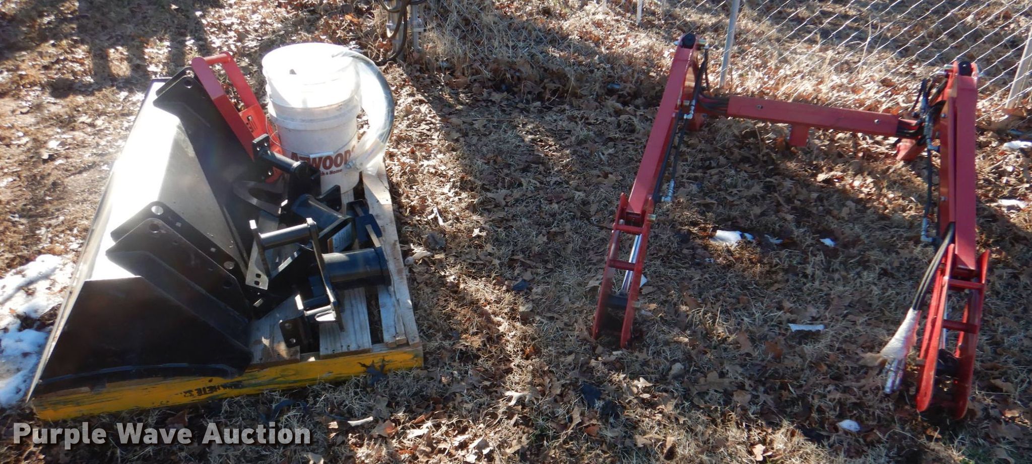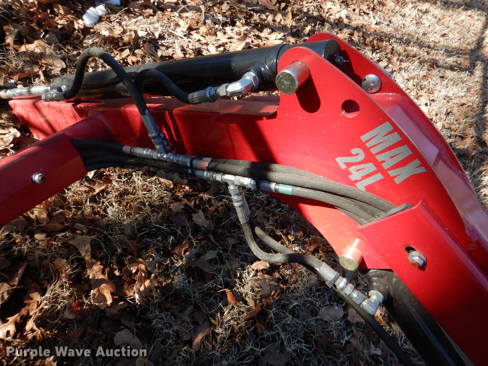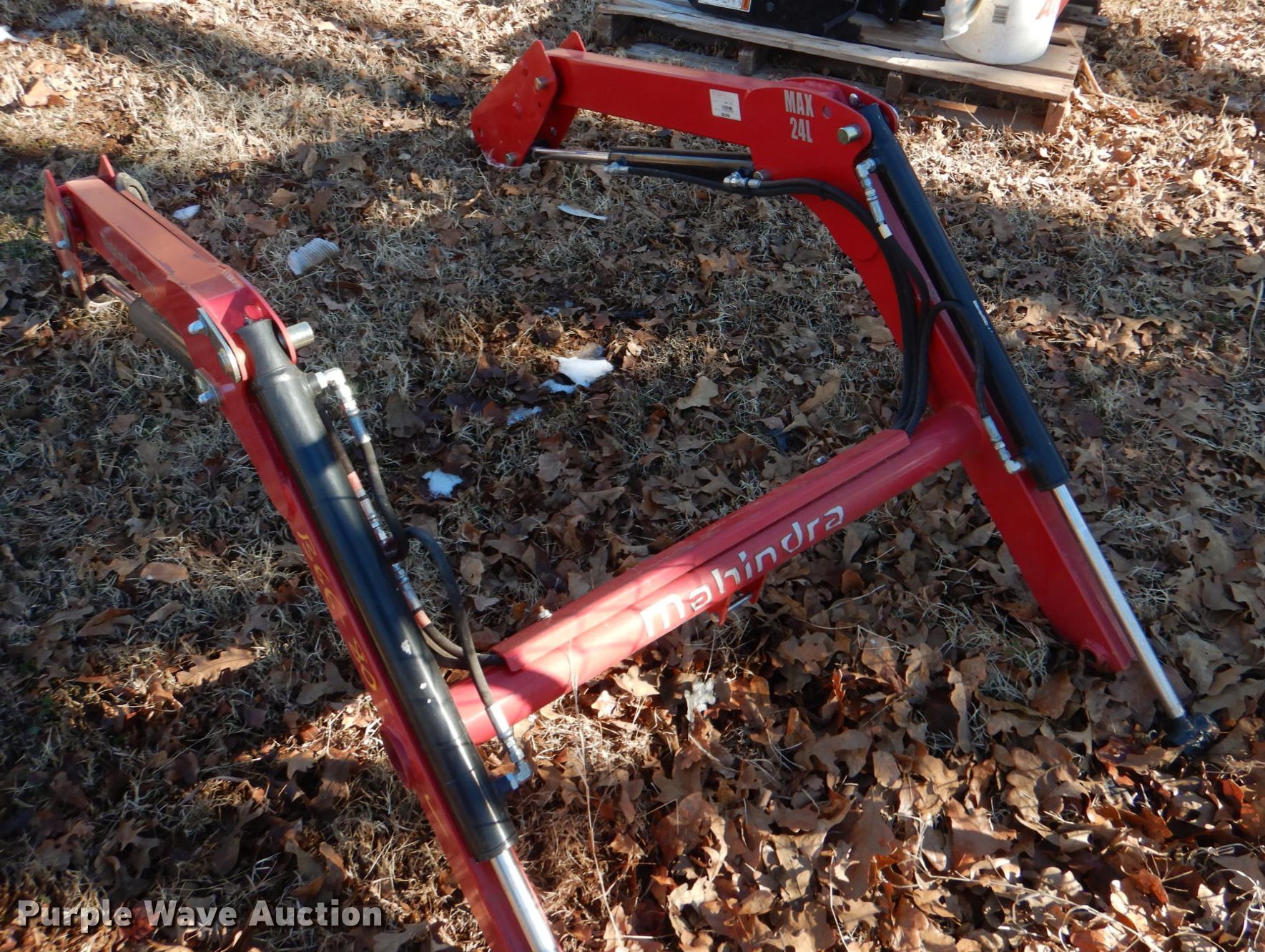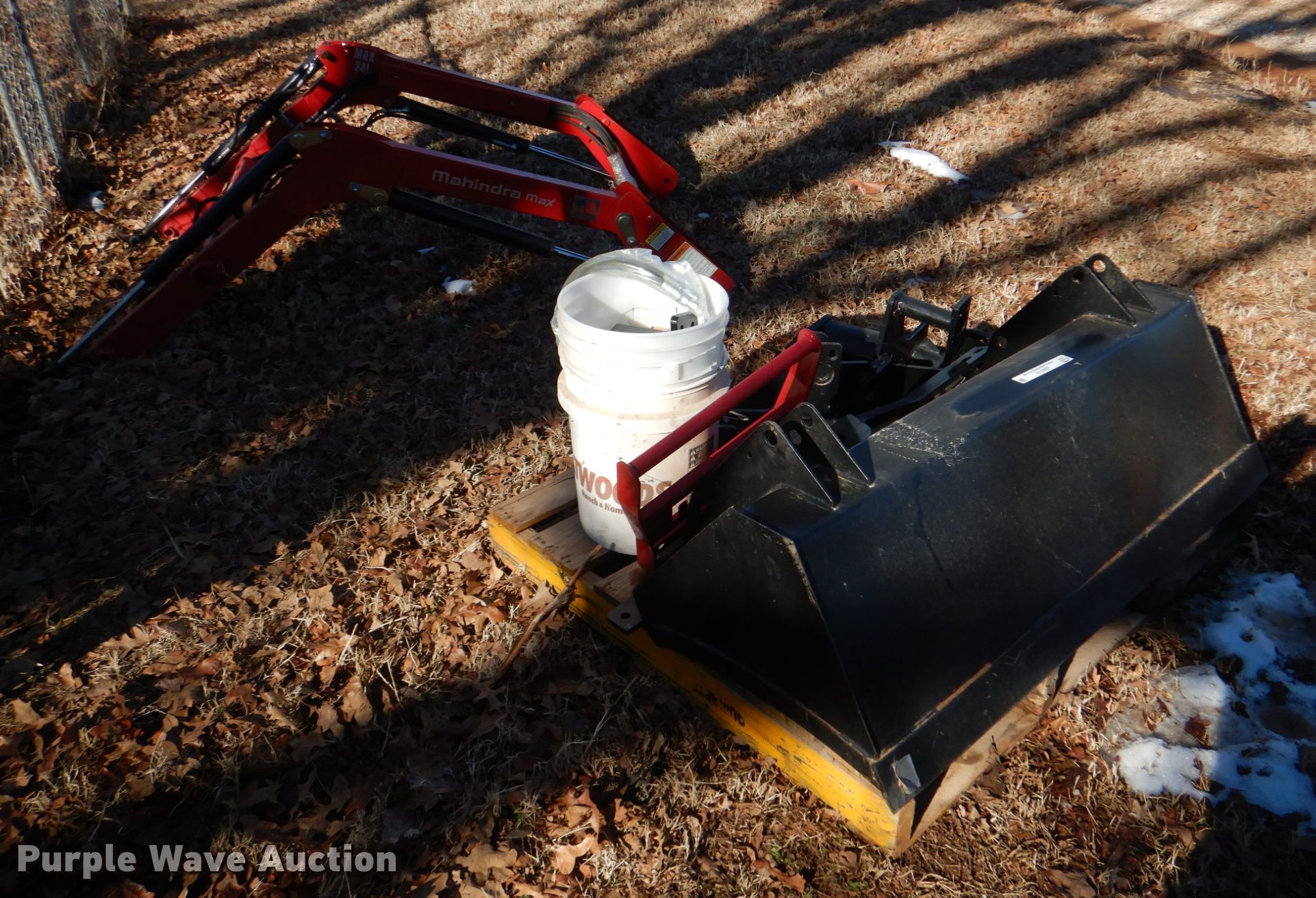 Purple Wave is selling a used Ag Tractor Loader or Attach. in Oklahoma. This item is a Mahindra Max 24L loader with the following: Serial: 1729104696, Controls: Joystick, Bucket, Width: 49", Mounting brackets