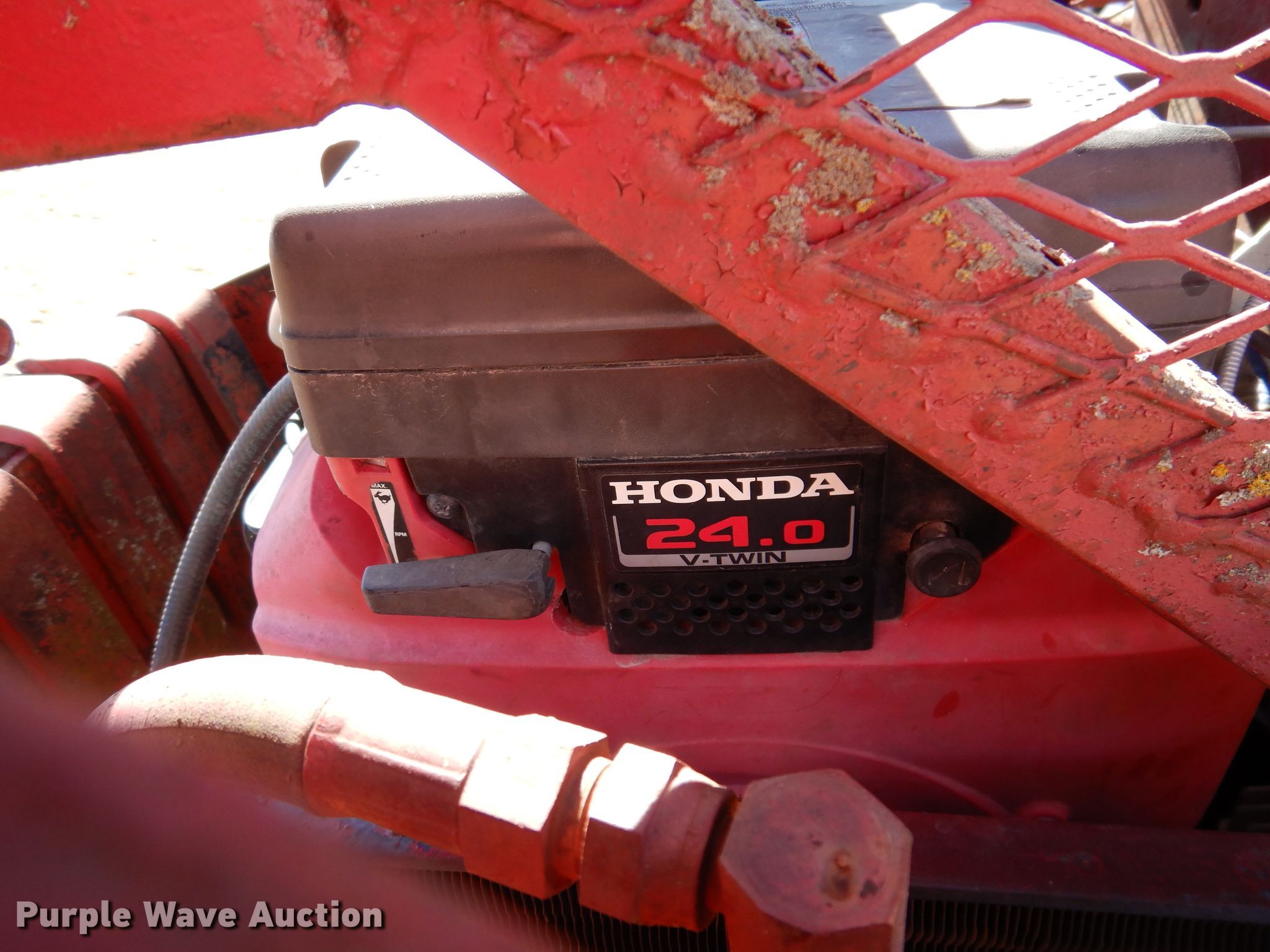 Gehl 2500 skid steer loader. Hours: Unknown. Engine Honda, Displacement: 671 cc, Cylinders: 2, Fuel type: Gas, HP: 24. Transmission Hydrostatic. Operators station Bucket control: Hand. Operational Bucket Width: 54". Tires Size: LT235/75R15. 121 S 29th St. Centerville, IA 52544