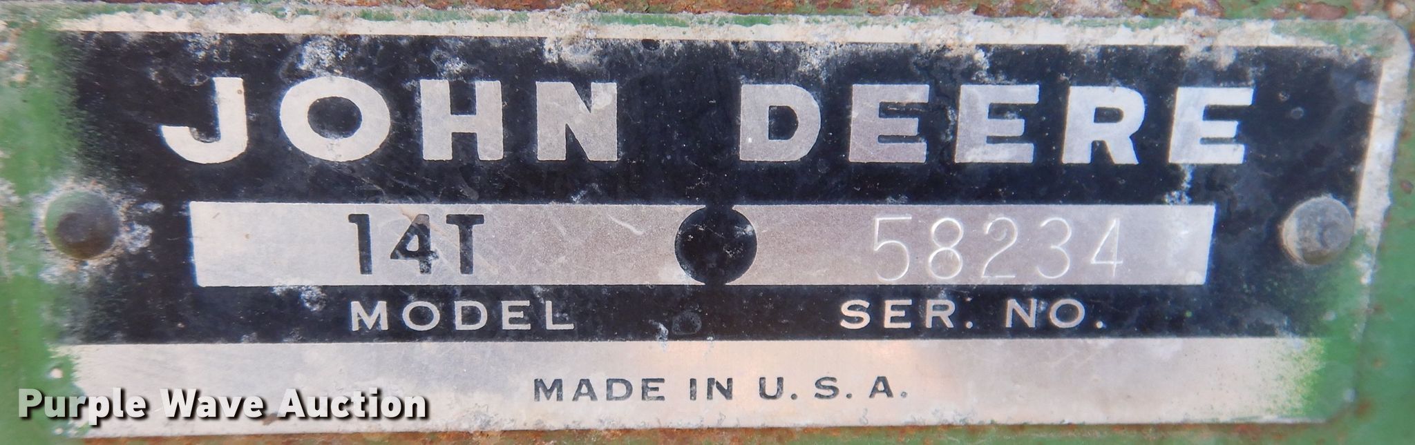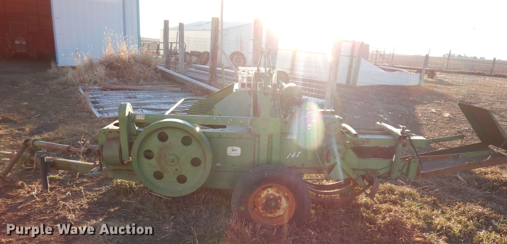 Purple Wave is selling a used Square Baler in Iowa. This item is a John Deere 14T small square baler with the following: Serial: 58234