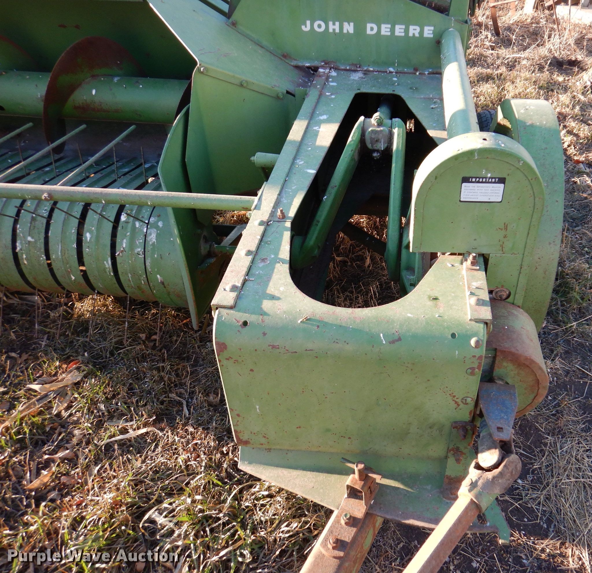 John Deere 14T small square baler. Serial: 58234. Operational PTO: 540, Pickup width: 4' 4", Small square bale size: 14"x18", Knotters Quantity: 2, Twine tie, Bale chute. Tires Size: 5-15. P & R Entry Door Inc. 2704 230th St. Duncombe, IA 50532