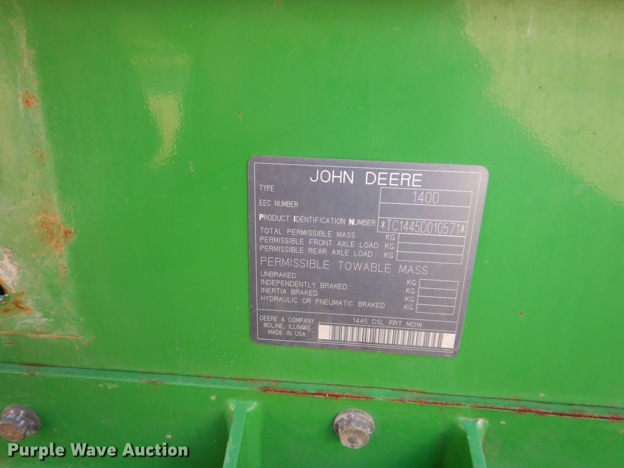 Purple Wave is selling a used Commercial Turf Mower in Iowa. This item is a John Deere 1445 lawn mower with the following: Hours: 3,083 on meter, Serial: TC1445D01057