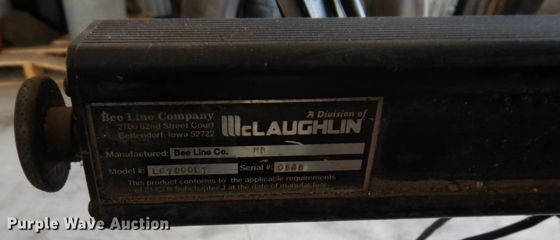 Purple Wave is selling a used Tools in Illinois. This item is a Bee Line LC7000 tire alignment machine with the following: Serial: 0134AB