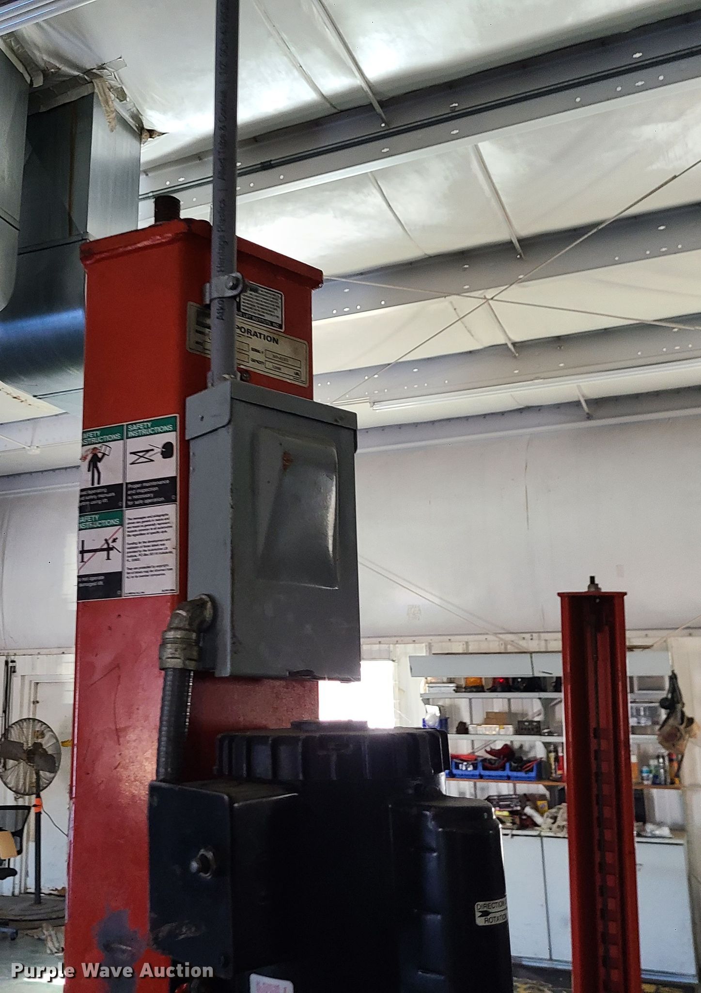 ALM 12000A four post automotive lift. Serial: 507-01311, Capacity: 12,000 lbs. Persells, LLC. Sweet Springs, MO 65351