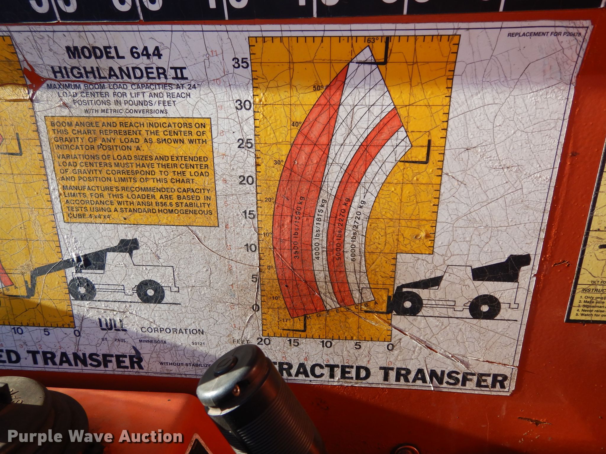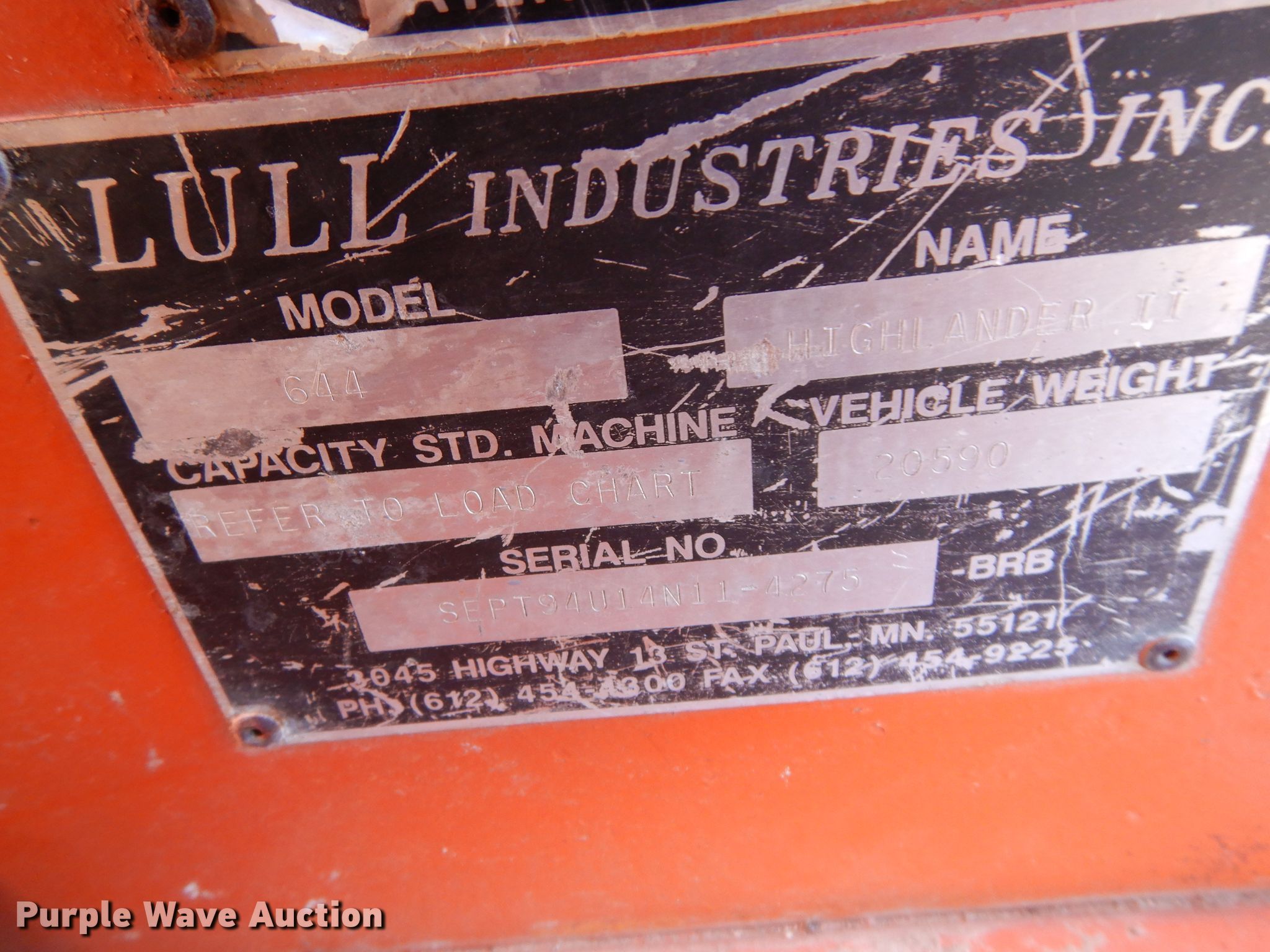Purple Wave is selling a used Telehandler in Texas. This item is a Lull 644 Highlander II telehandler with the following: Hours: 6,828 on meter, Serial: SEPT94U4N11-4275