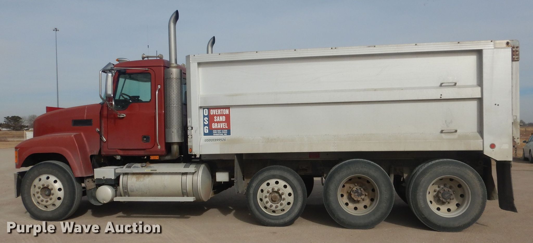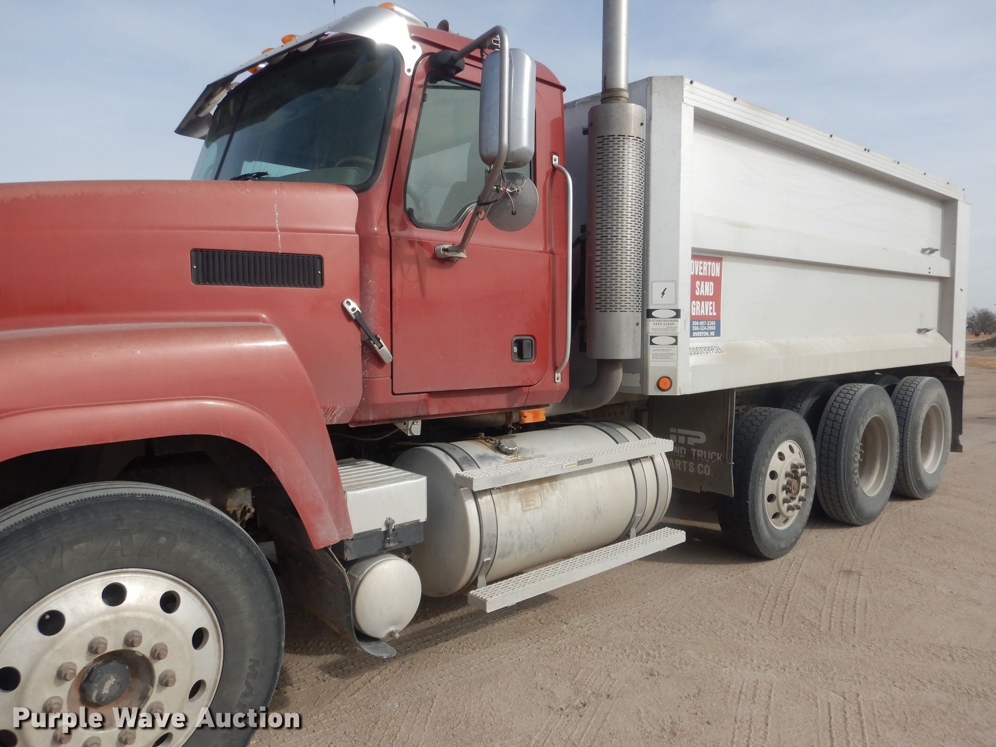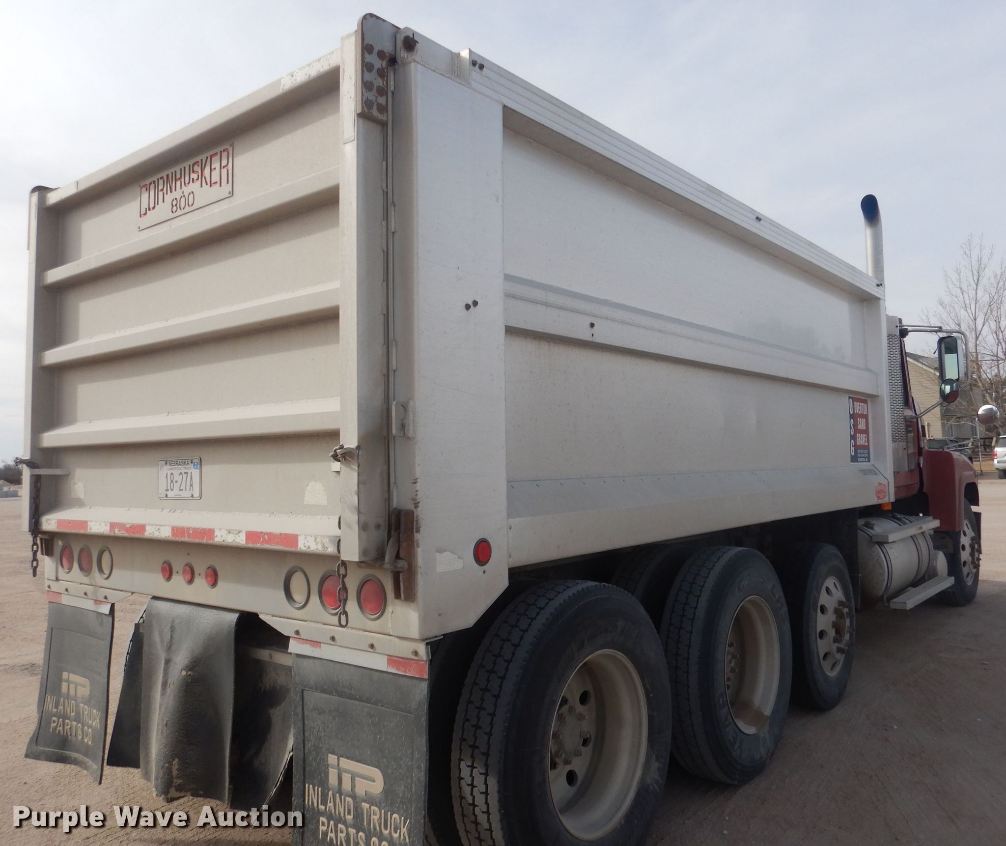 2007 Mack CHN613 dump truck. Miles: 886,993 on odometer, Hours: 24,729 on meter, VIN: 1M2AJ07C77N007425. Engine Mack, Displacement: 12.0L, Cylinders: 6, Fuel type: Diesel, Engine brake. Transmission Maxitourque, Manual, Speed: 13. Chassis Axles: Triple, Pusher axle, Differential lock: Inter-axle, Suspension: Air, Brakes: Air, PTO, Wheelbase: 242". Interior AC, Heat, Power windows, Cruise control. Operational Dump bed Cornhusker 06887, Capacity: 12 cu.yd., 16' L x 8' W, Side height: 64", Bed type: Aluminum, Liner, Ram: Single , End gate: Air operated. Tires Size: 11R24.5, Lift axle: 275R22.5, Brand: Goodyear. Nebraska title. Overton Sand & Gravel Co.. 44440 Dr 749. Overton, NE 68863