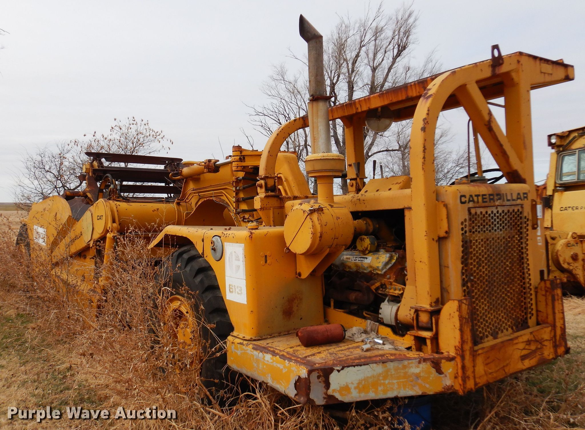 Purple Wave is selling a used Elevating Scraper in Oklahoma. This item is a 1972 Caterpillar 613 elevating scraper with the following: Hours: Unknown, Serial: 71M1516