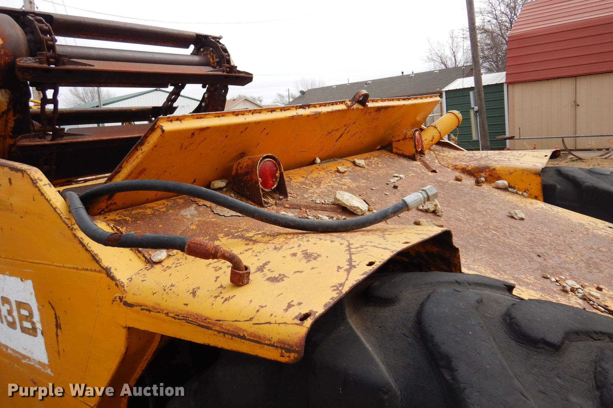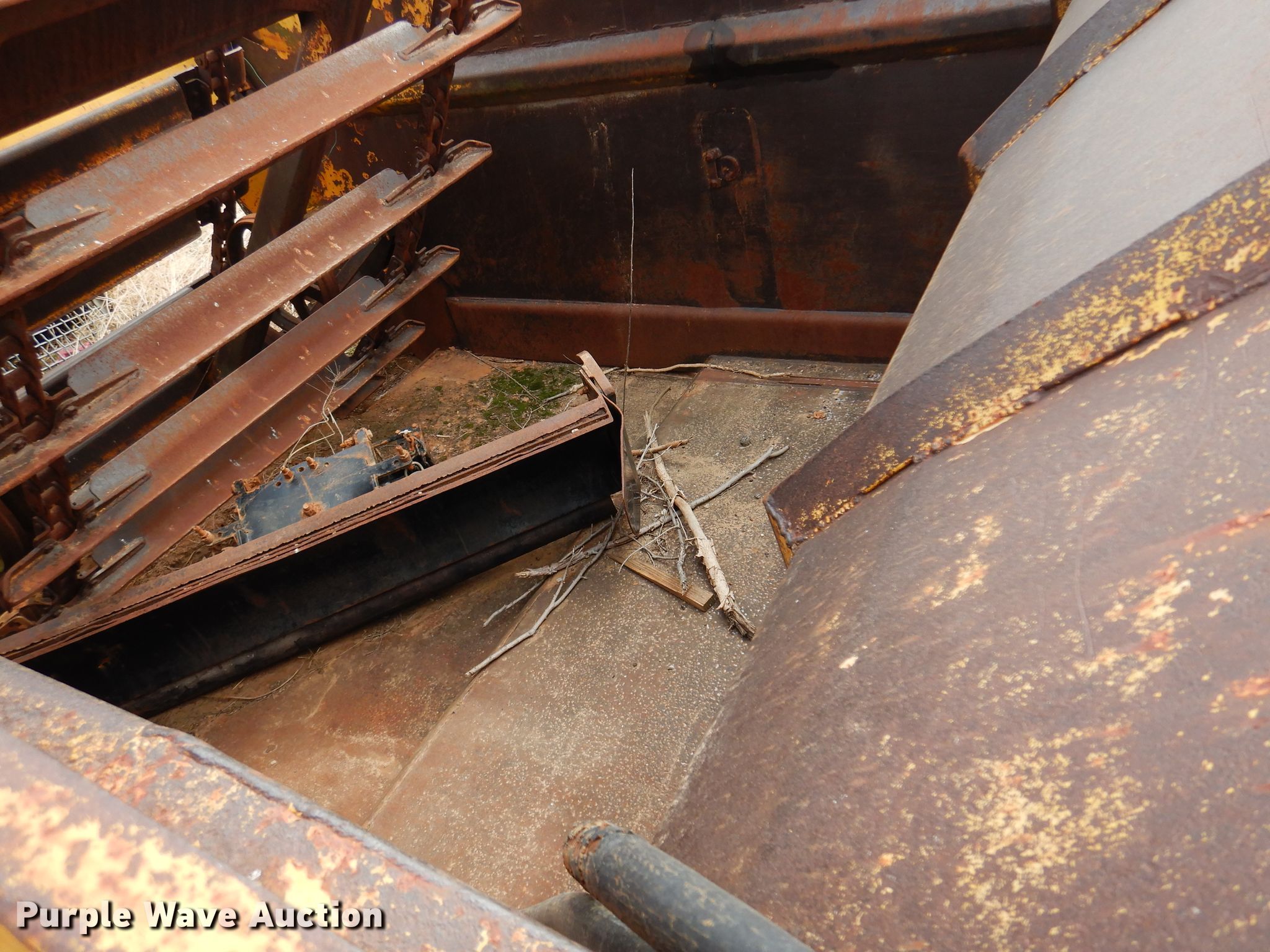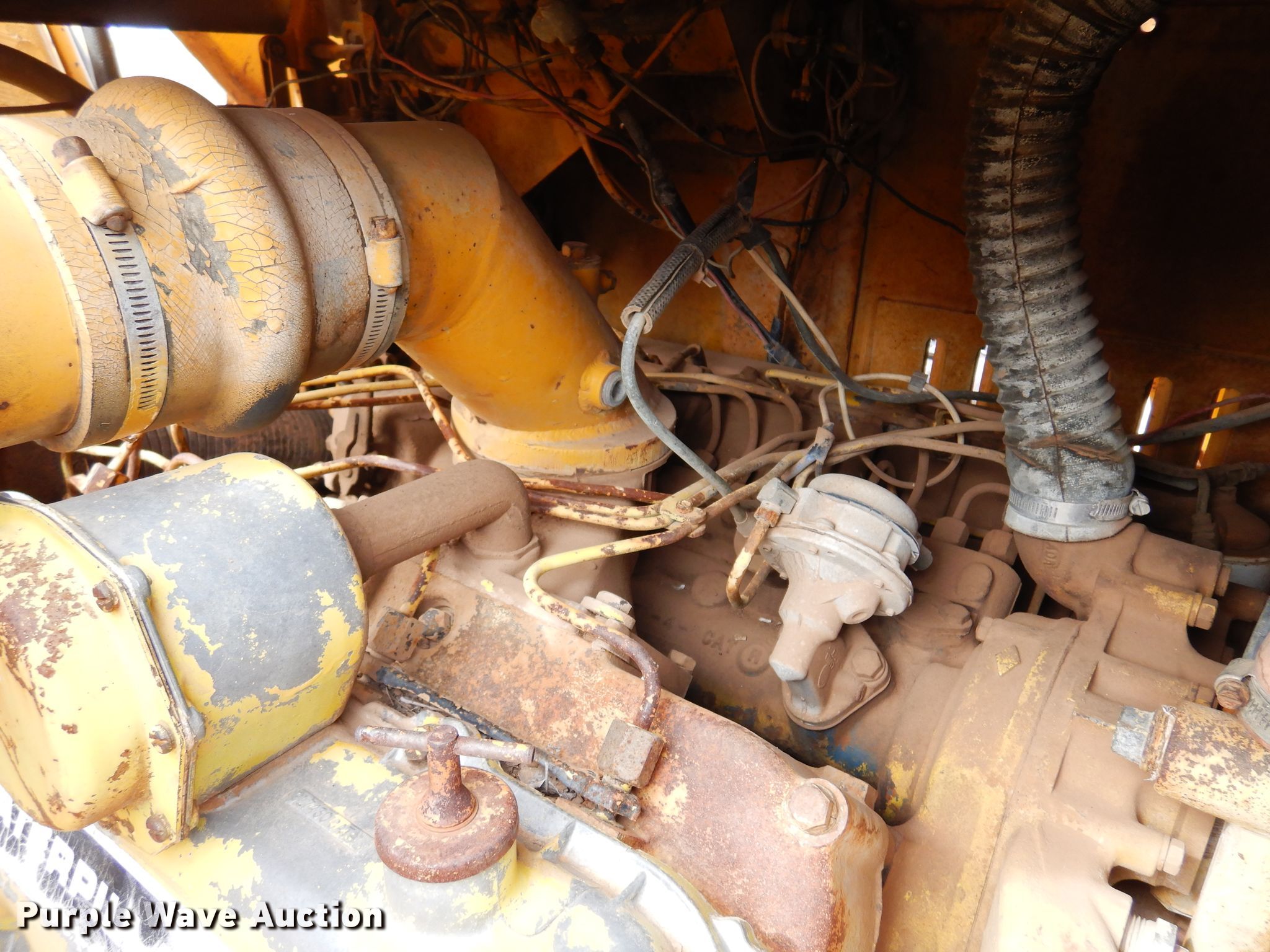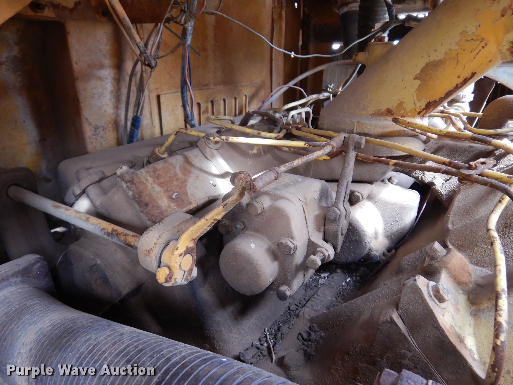 1972 Caterpillar 613 elevating scraper. Hours: Unknown, Serial: 71M1516. Engine Cylinders: 8, Fuel type: Diesel. Transmission Powershift, 4F - 2R. Chassis Brakes: Hydraulic. Operators station OROPS. Operational Elevator reverse, Hydraulic lift, Scraper controls: Lever controls No. of controls: 3. Tires Size: 23.5-25. Notes Water in oil, Dead battery, Unknown operating condition. Tim Betchan Dozer Service. Pond Creek, OK 73766
