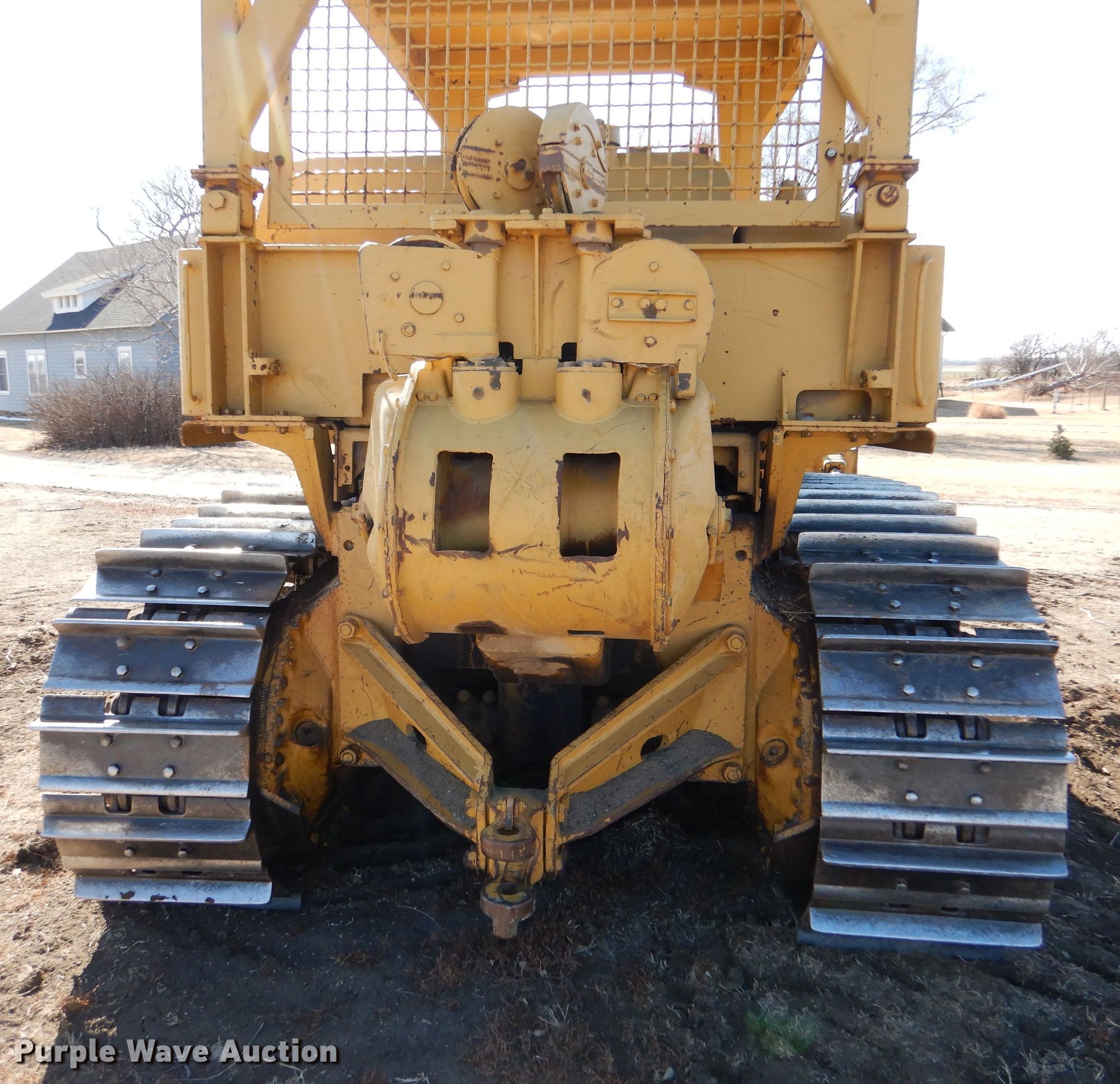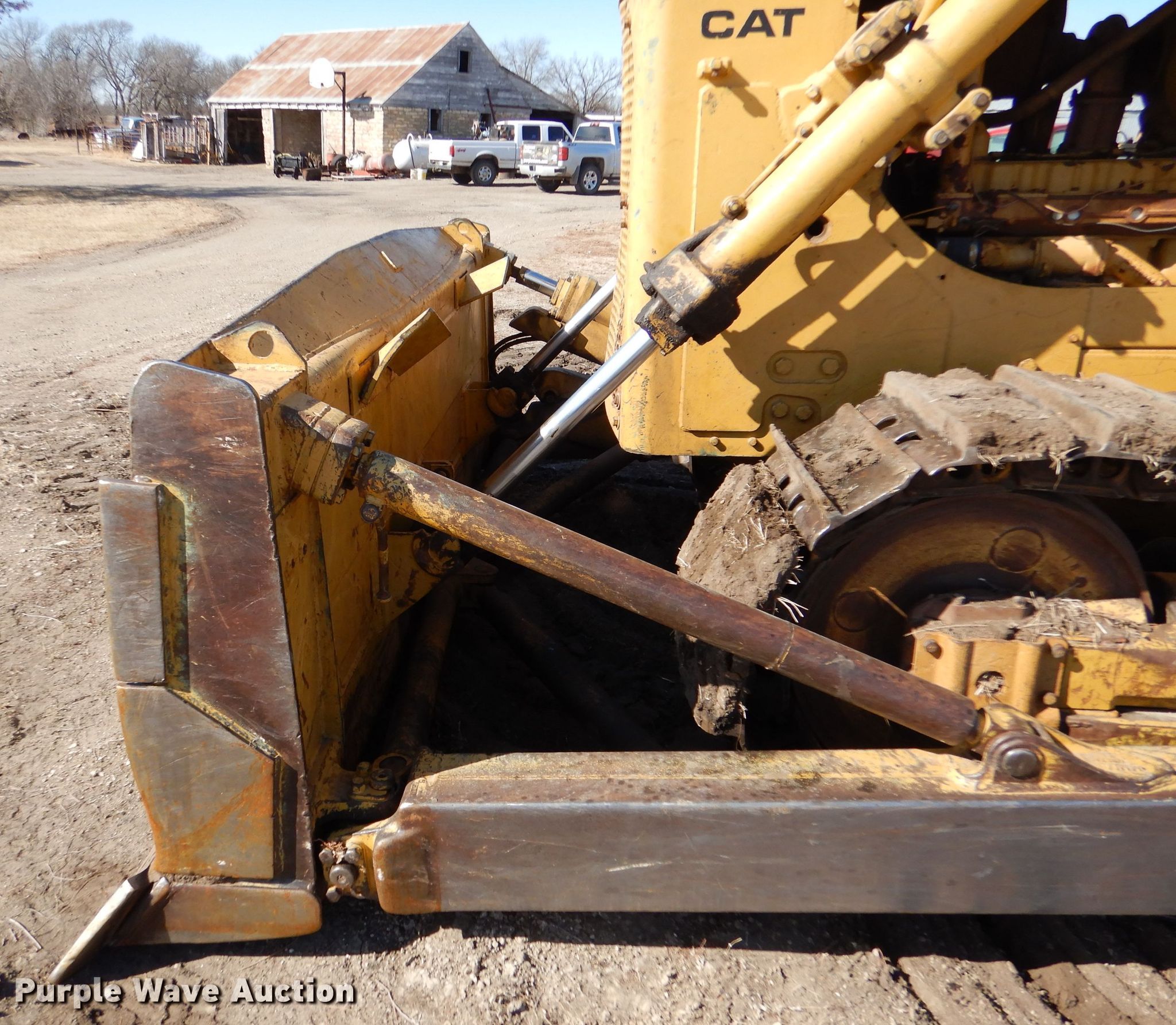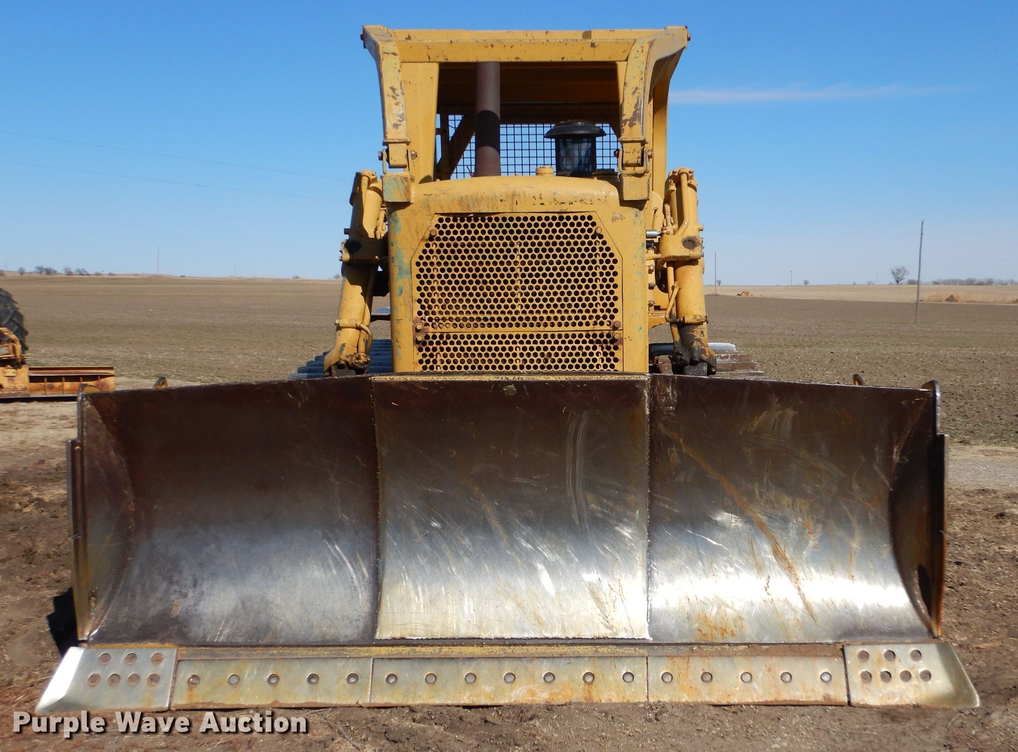 1971 Caterpillar D7F dozer. Hours: 14 on meter, Hours: Unknown, Serial: 94N1822. Engine Serial: 66D5173, Cylinders: 6, Fuel type: Diesel. Transmission Powershift, 3F - 3R. Operators station Canopy, Steering: Clutch brake. Operational Screen guards, Sweeps, Rear drawbar, Dozer blade Type: Straight, Single-tilt, Width: 140" W, Attachments Winch. Tracks Width: 22", Grouser pads: Single, Bottom rollers: 6. Notes Left hand final drive leaks oil, Hour meter replaced, Unknown operating condition hour meter, Non-operational winch. Scott Heidrick. Beloit, KS 67420