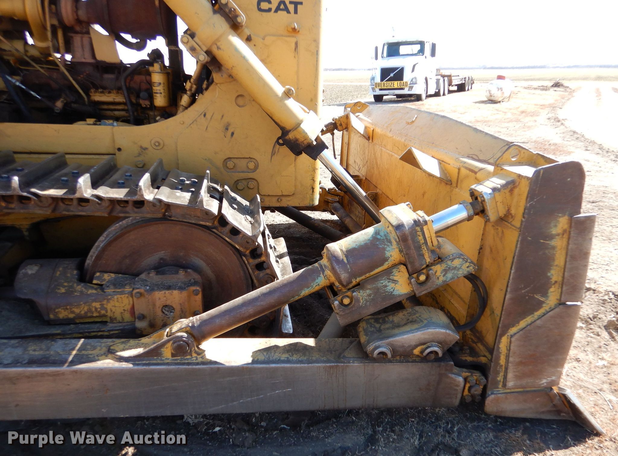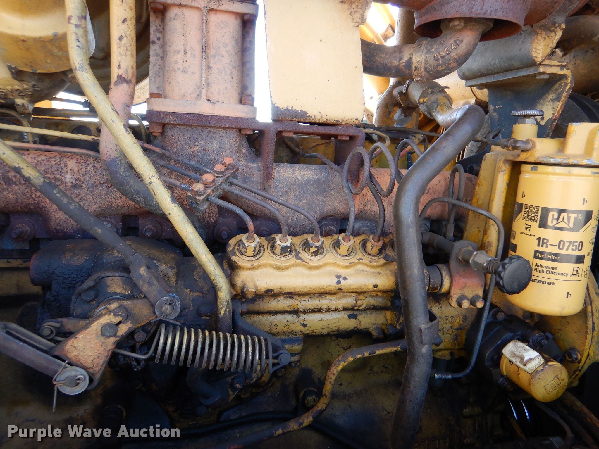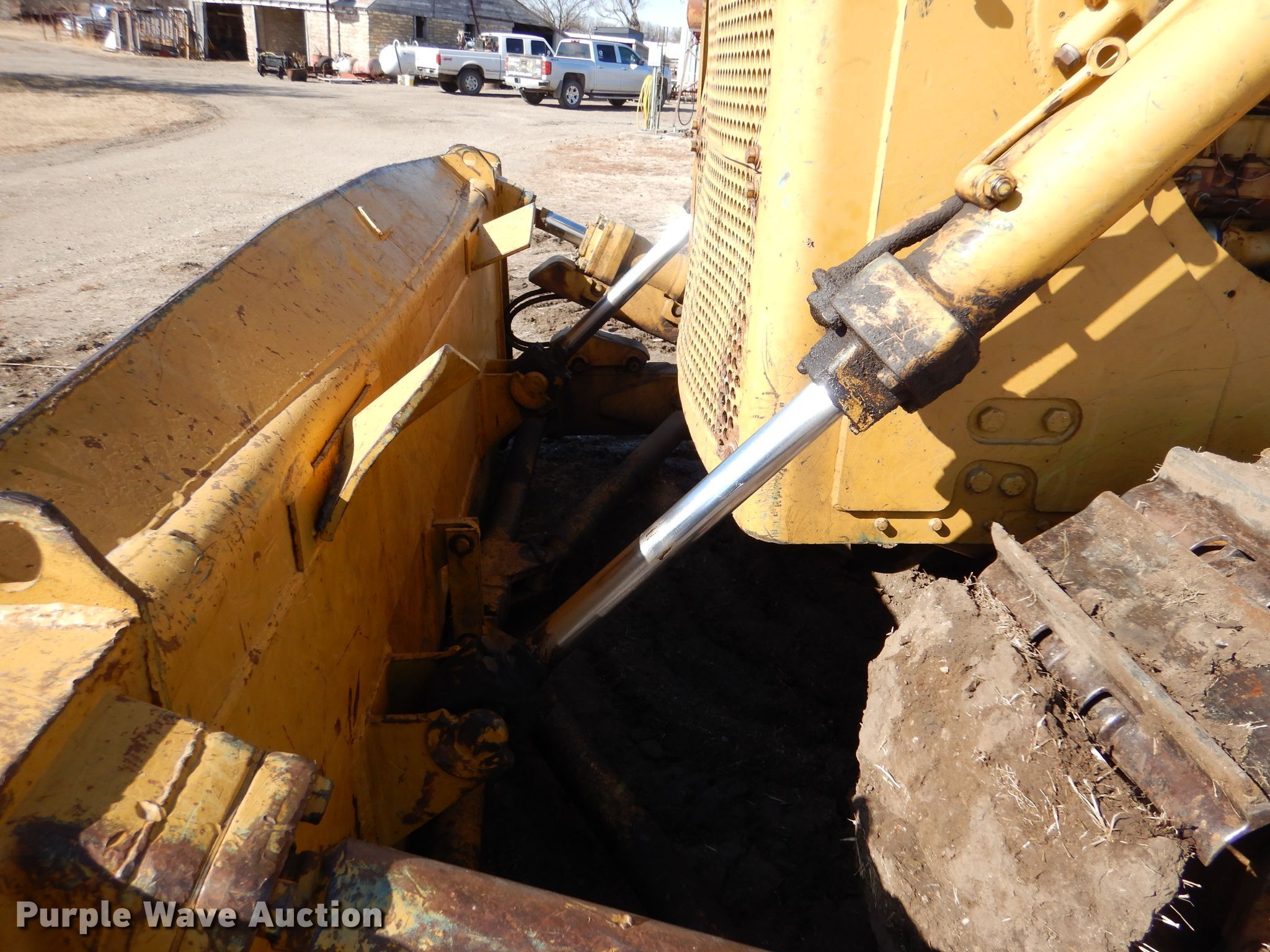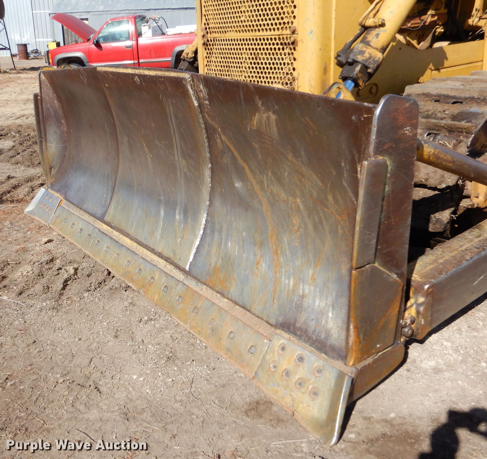 1971 Caterpillar D7F dozer. Hours: 14 on meter, Hours: Unknown, Serial: 94N1822. Engine Serial: 66D5173, Cylinders: 6, Fuel type: Diesel. Transmission Powershift, 3F - 3R. Operators station Canopy, Steering: Clutch brake. Operational Screen guards, Sweeps, Rear drawbar, Dozer blade Type: Straight, Single-tilt, Width: 140" W, Attachments Winch. Tracks Width: 22", Grouser pads: Single, Bottom rollers: 6. Notes Left hand final drive leaks oil, Hour meter replaced, Unknown operating condition hour meter, Non-operational winch. Scott Heidrick. Beloit, KS 67420