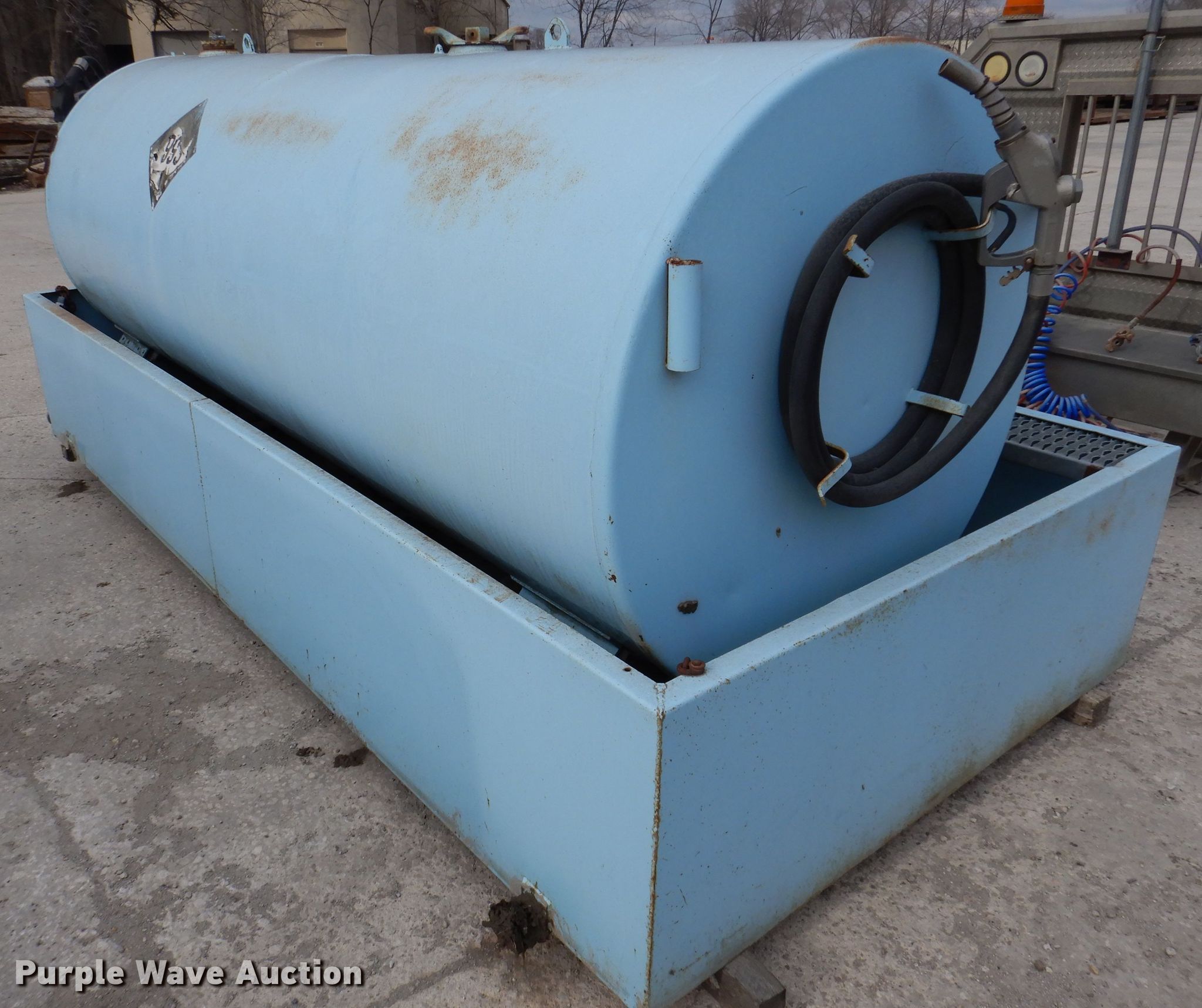Purple Wave is selling a used Fuel and Lube in Iowa. This item is a Fuel containment with the following: 12' x 68" x 24" H, Fuel tank, 11' x 48", Fill-Rite FR1200C pump, 15 GPM, Volts: 12, (2) hoses