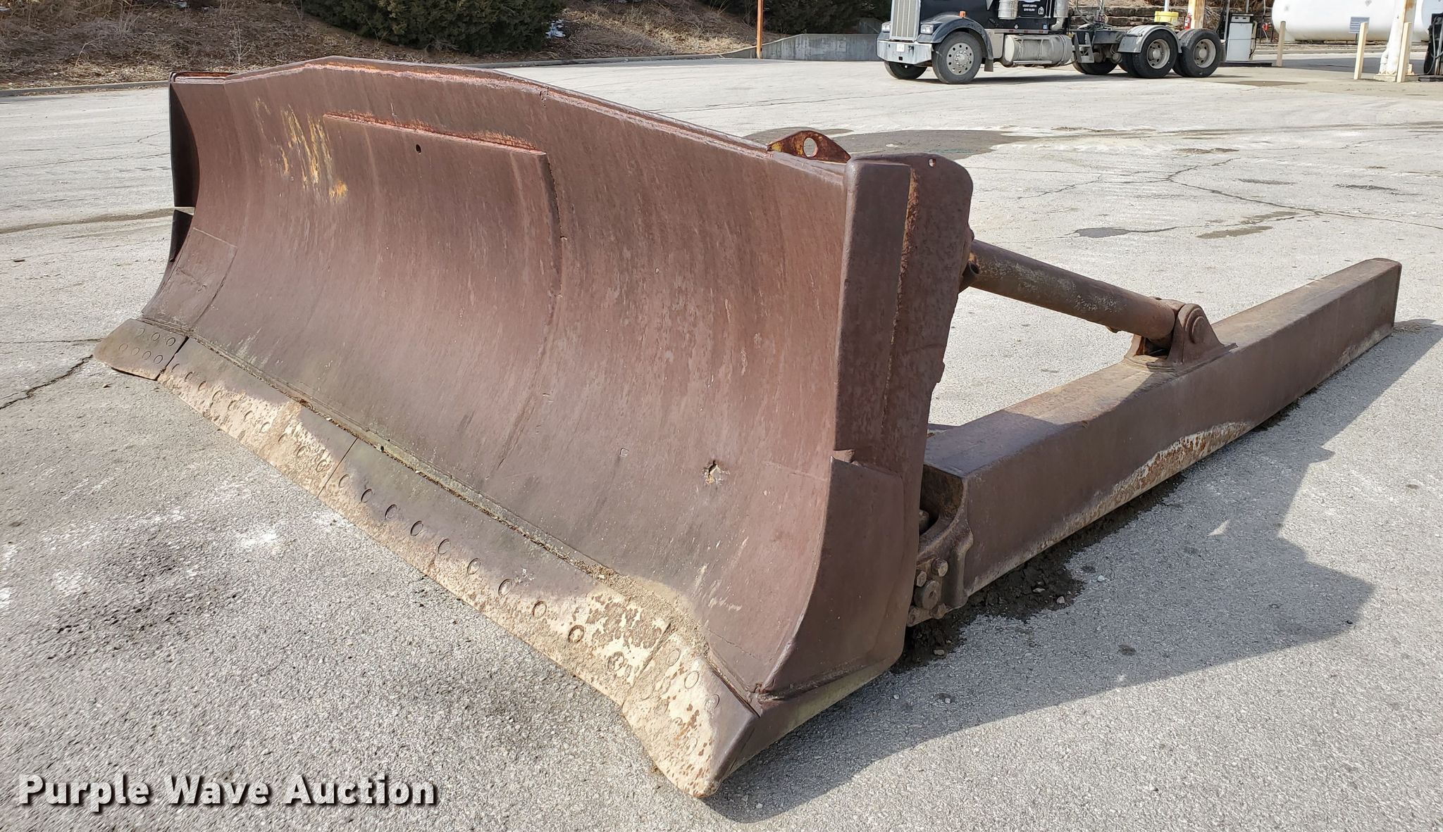 Purple Wave is selling a used Crawler Attach. in Kansas. This item is a Caterpillar dozer blade with the following: 14' 6" L x 12' 6" W x 4' 6" H, Blade type: Semi-U, Single-tilt, Removed from Caterpillar D8 dozer