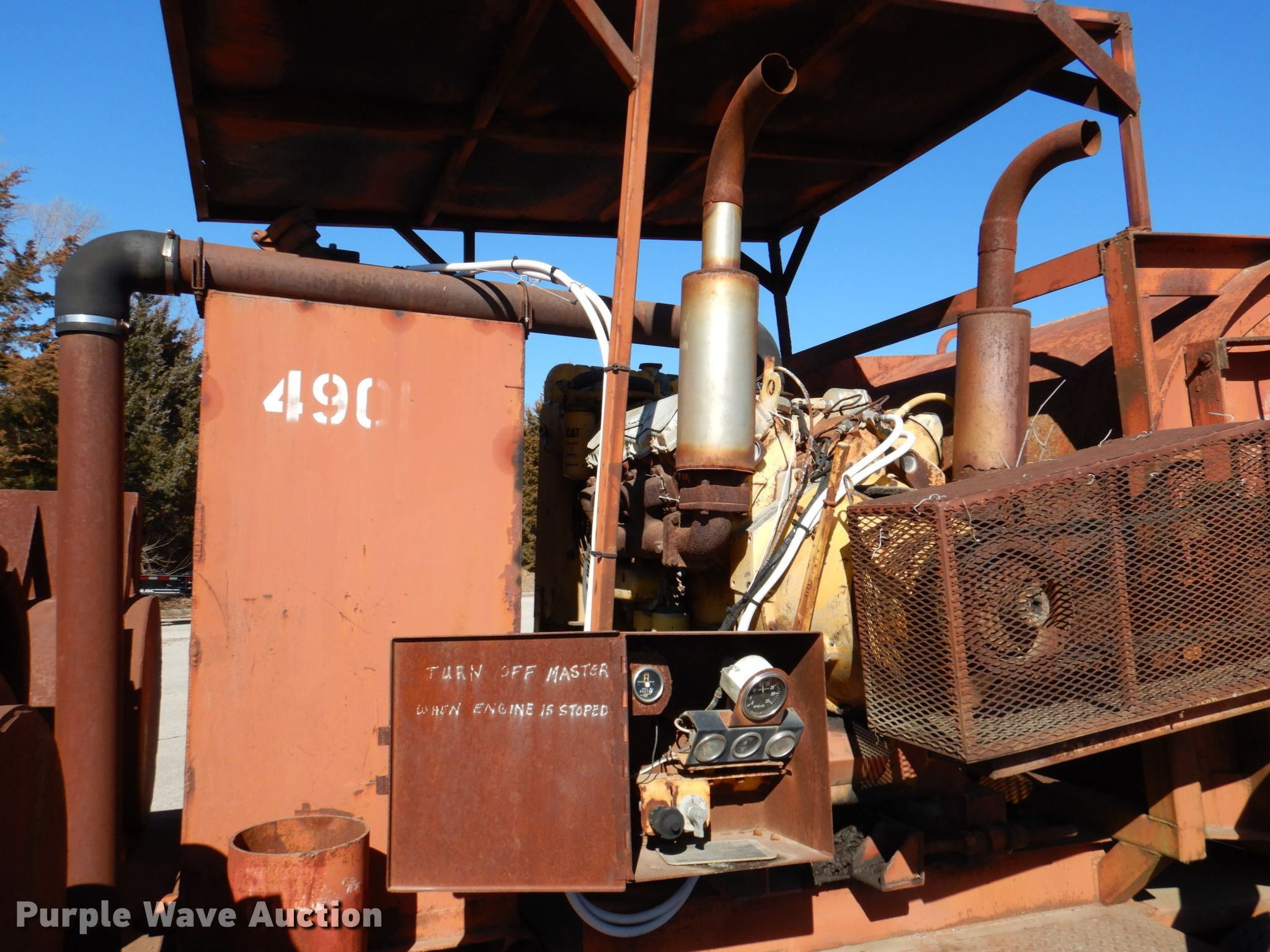 Purple Wave is selling a used Other Industrial or Business in Kansas. This item is a Air curtain destructor with the following: Hours: 676 on meter, Engine, Caterpillar 3208, Serial: 51Z77549, Cylinders: 8, Fuel type: Diesel, HP: 210