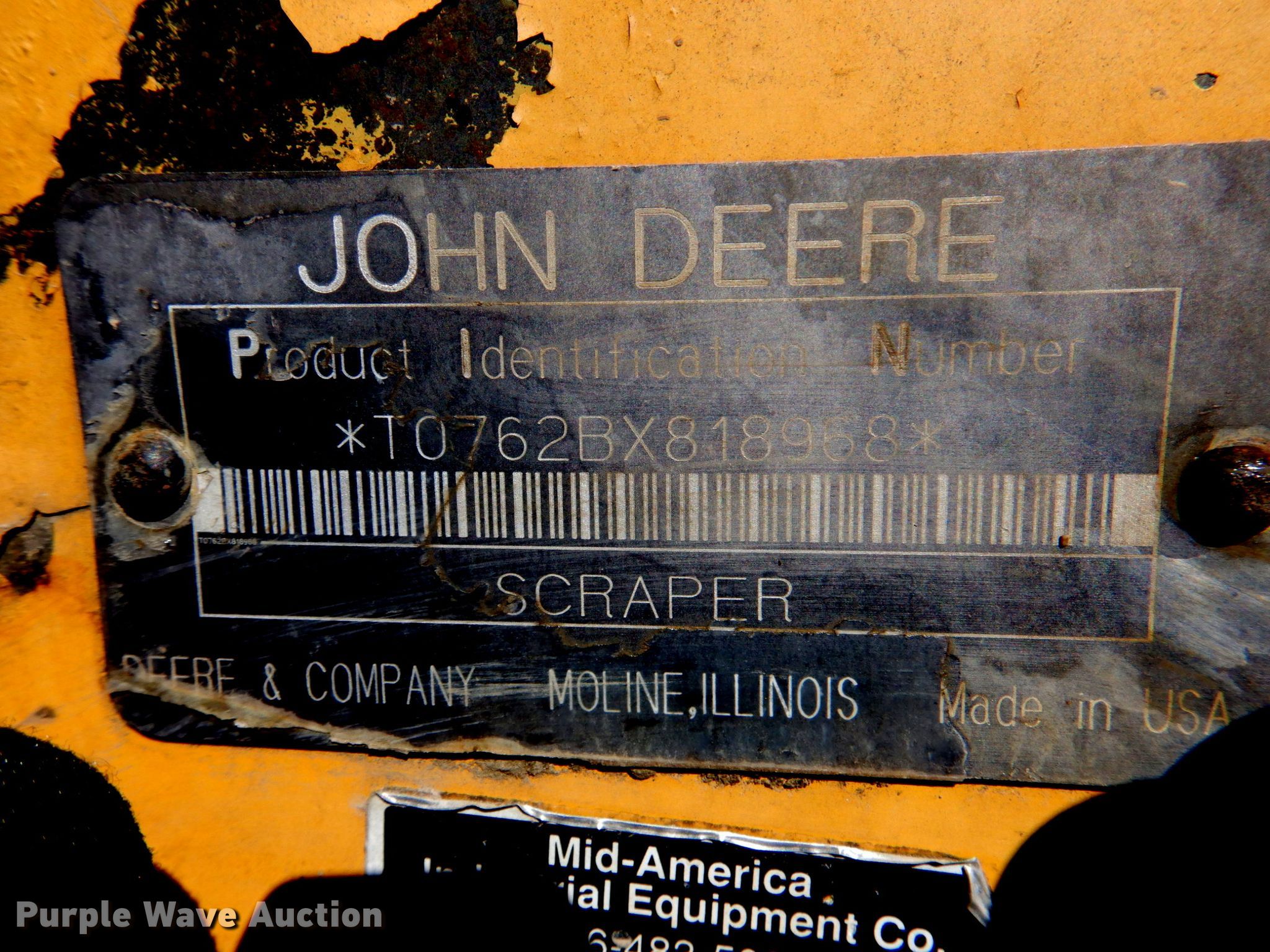 Purple Wave is selling a used Elevating Scraper in Kansas. This item is a 1996 John Deere 762B II elevating scraper with the following: Hours: 7,038 on meter, Serial: T0762BX818968